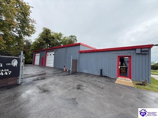 Realtor's notes: Great multi-use commercial property located in a highly convenient part of town. The finished area features a kitchenette, two half baths, and plenty of office space. The rear section includes two large 12-foot doors, 200-amp service, and high ceilings—ideal for storage, workshop, or light industrial use. The back area is fully fenced with an electric gate, and the parking lot has been recently refinished with multiple parking spaces.