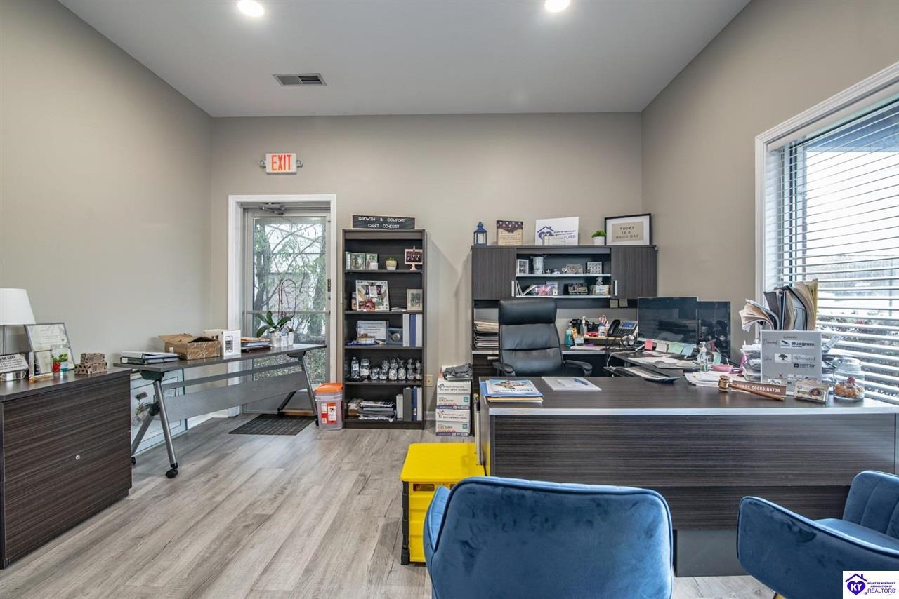 Realtor's notes: The HKAR Board of Directors has approved a one-time FSBO into the MLS for the purpose of selling board owned property located at 5375 N. Dixie Hwy. Elizabethtown, KY 42701 This commercial property will be listed for sale beginning October 29, 2025. The sellers will be accepting sealed offers only. • Sealed offers must be received by Association Executive no later than 5pm November 12, 2025. • All submitted offers will be reviewed by the BTF Committee. • The BTF Committee will meet and respond to all sealed offers no later than November 14, 2025. Interested parties are encouraged to submit their best & final offer by the deadline. No offers will be opened or reviewed prior to the offer deadline. Prime office opportunity on Dixie Highway in Elizabethtown! This 2,400 sq. ft. space offers three private offices plus a versatile fourth office/flex room, two bathrooms, and a spacious meeting or training room with a kitchenette. Features include dual water meters, dual electric meters, two furnaces for efficiency, and a large storage closet. Recently updated with new flooring, paint, & lights. With ample parking and excellent visibility, this property is ideal for professional services, education, or business operations seeking a high traffic location.