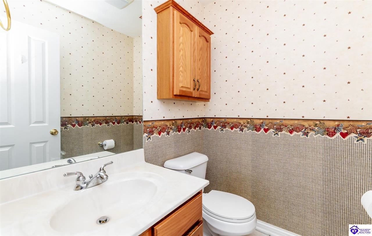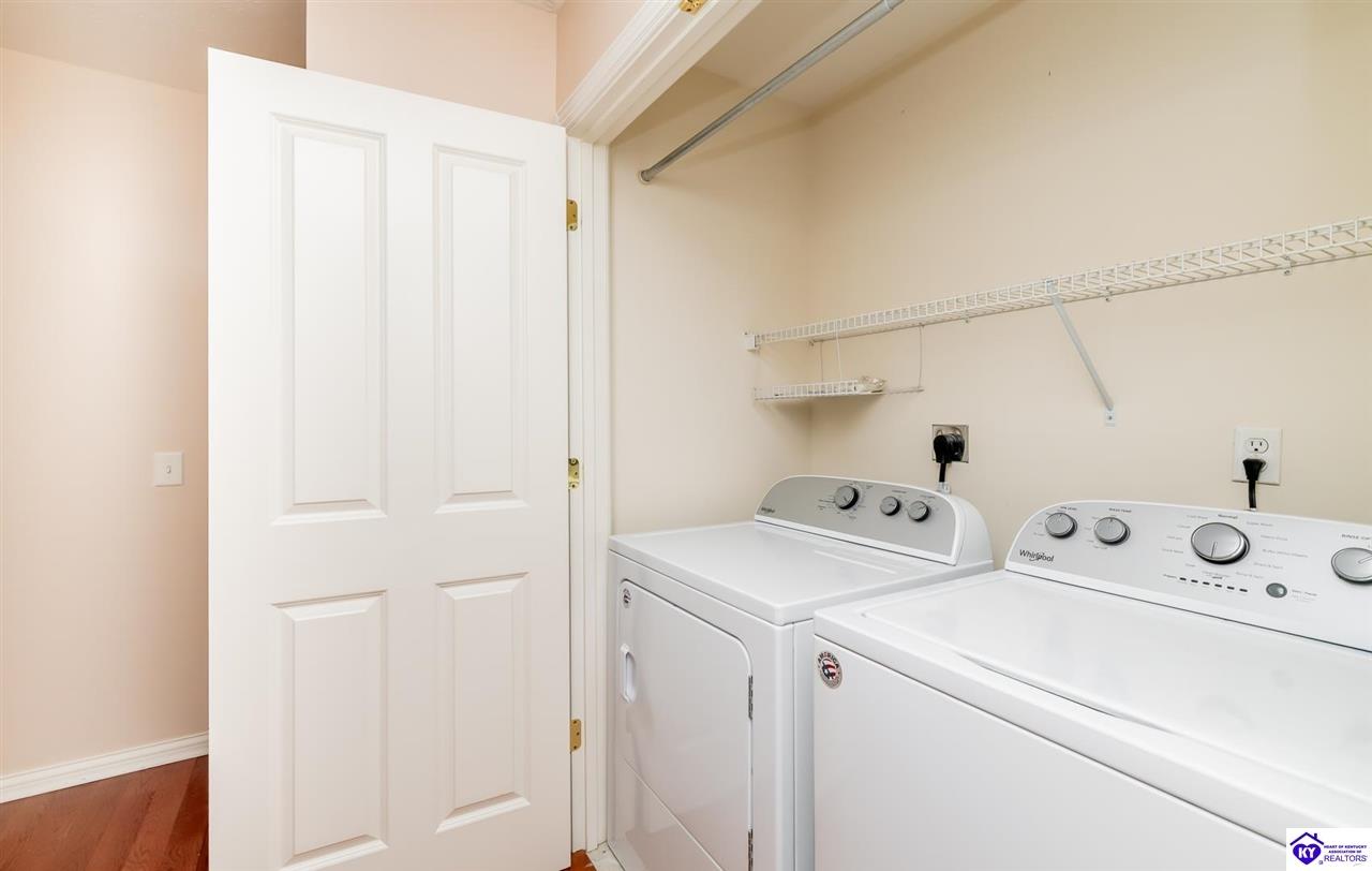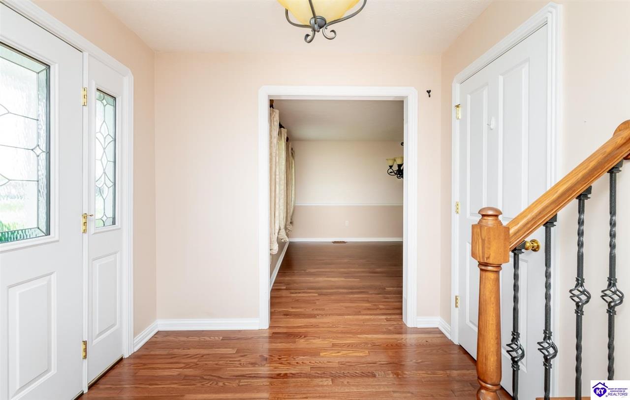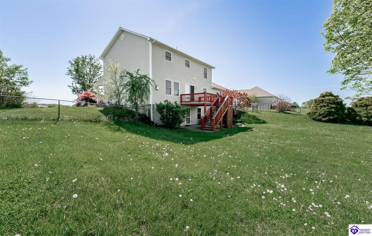 Realtor's notes: Tucked away in a peaceful, well-established neighborhood that even includes its own charming little lake, this beautifully maintained 3 bedroom, 3 bath home offers the perfect blend of rural tranquility and suburban convenience. Located just minutes from the amenities of Elizabethtown and with a quick and easy commute to Fort Knox, you'll enjoy the best of both worlds- privacy, space, and proximity to everything you need. Set on a spacious one-acre lot with a fully fenced backyard, this quality-built home boasts hardwood floors, a gas fireplace, and custom built-ins in the living room. The large kitchen is ideal for cooking and gathering, and it opens right onto a lovely deck where you can enjoy your morning coffee or entertain guests while overlooking the peaceful yard. The primary suite is a true retreat, featuring an oversized walk-in closet, double vanities, a luxurious soaker tub, and a walk-in shower. Downstairs, the partially finished walkout basement adds versatility with a generous family room, home theatre, gym, or whatever fits your lifestyle. And there's no shortage of storage with a large unfinished area to keep things organized. From the tranquil setting to the thoughtful features throughout, this home has everything you need to settle in and enjoy.