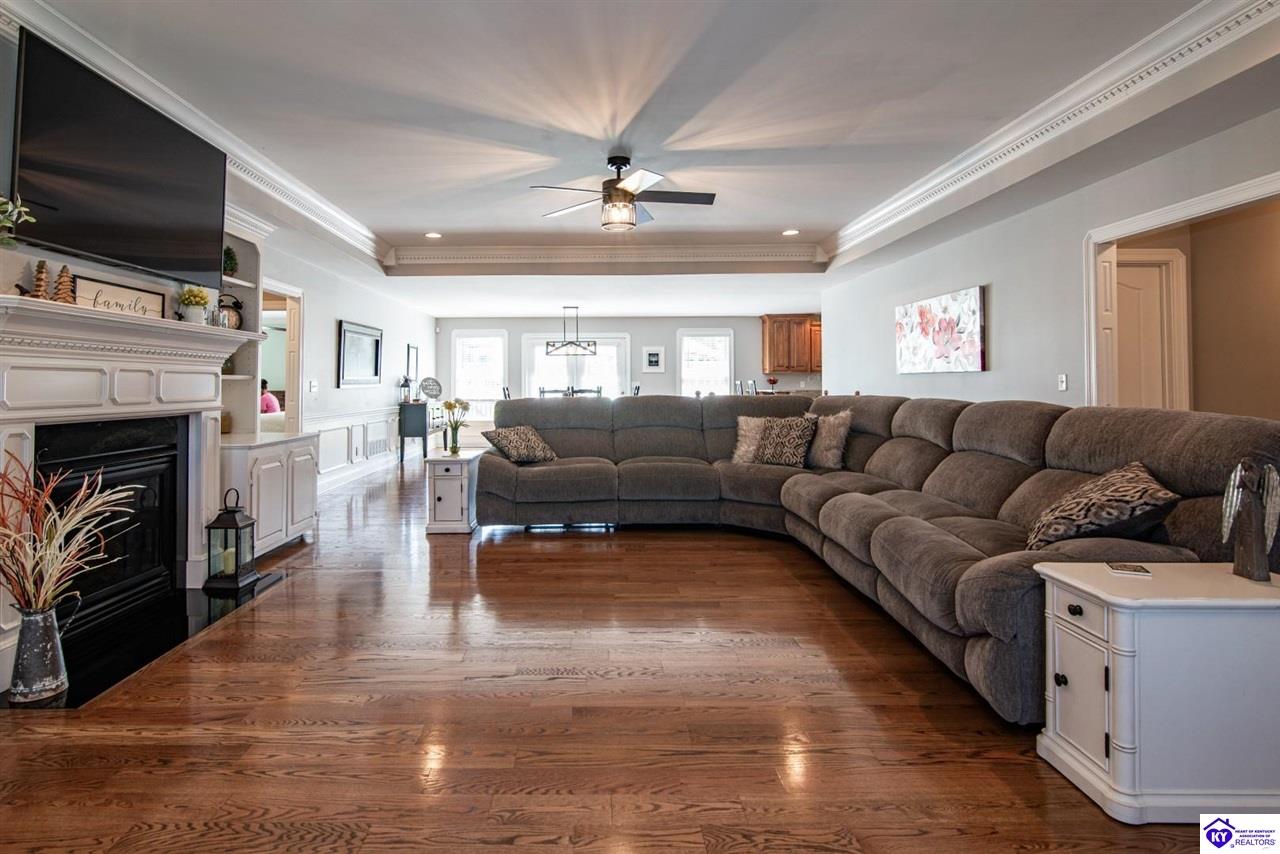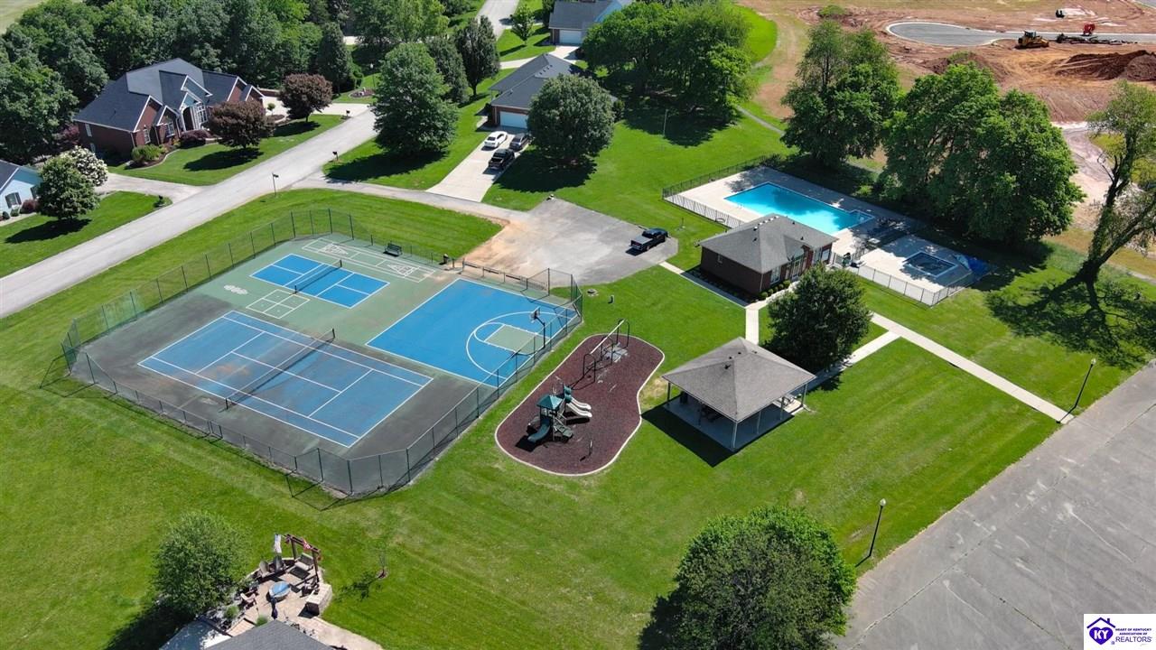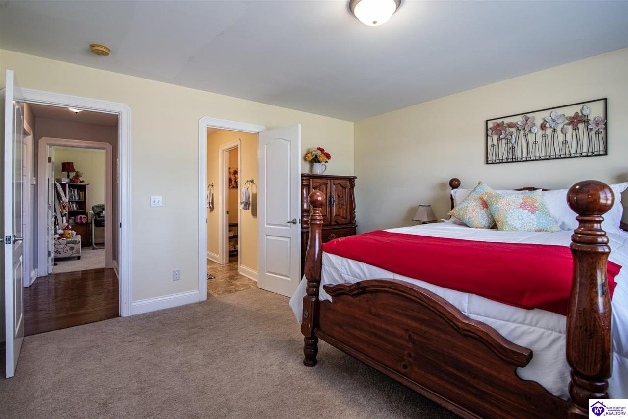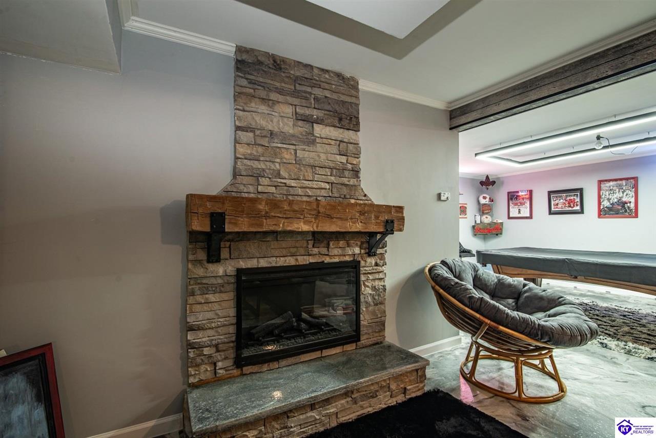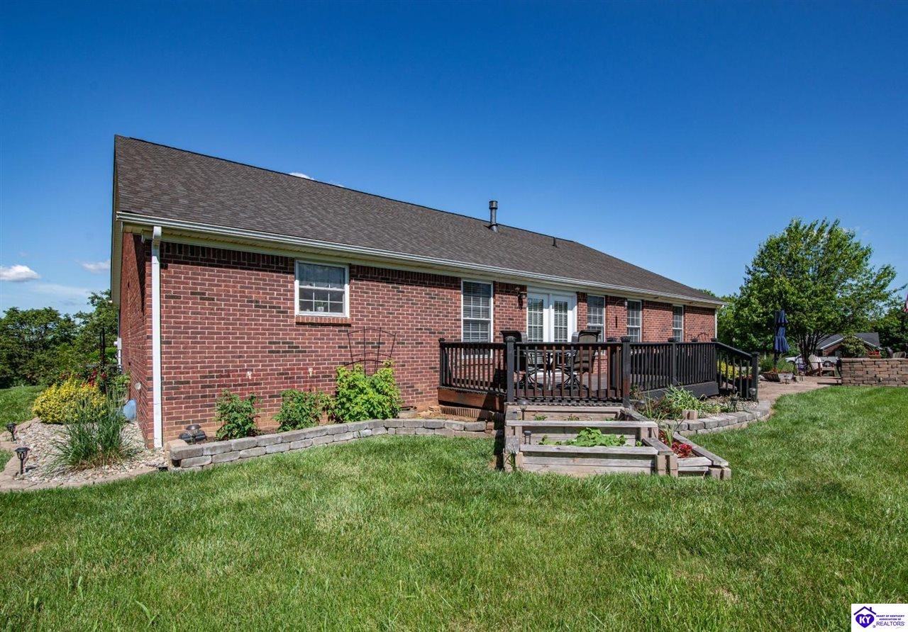 Realtor's notes: Nestled in the heart of historic Bardstown, this charming ranch home in Woodlawn Springs Subdivision offers the perfect blend of comfort, convenience and luxury. Boasting 3 bedrooms on the main level, 3.5 bathrooms, open floor plan, ample storage and lots of natural light. The primary bedroom is spacious and features a walk-in closet. The primary bathroom is a dream with a walk-in shower, jetted bathtub, dual vanity sink with addition counter space and tiled floors. The spacious living area features a cozy fireplace, perfect for those chilly Kentucky evenings. The kitchen is equipped with modern appliances and ample counter space, making meal preparation a breeze. Basement includes a family room, office space, fireplace, recreation room, epoxy flooring, bar with refrigerator, full modern bathroom and additional storage. Enjoy the outdoors with the beautiful landscaping, covered front porch, firepit, large back deck with Trex decking and solar lights. The outdoors is perfect for entertaining or just relaxing. Owners extended the concrete driveway to add additional parking. HOA amenities include access to the pool, covered pavilion with tables and tennis/basketball/pickleball courts. With its prime location, you're just a short drive away from local shops, restaurants and the historic charm of Bardstown. Don't miss this opportunity to make this house your home! You also have the unique opportunity to purchase the lot next door. Contact a realtor today for additional details.
