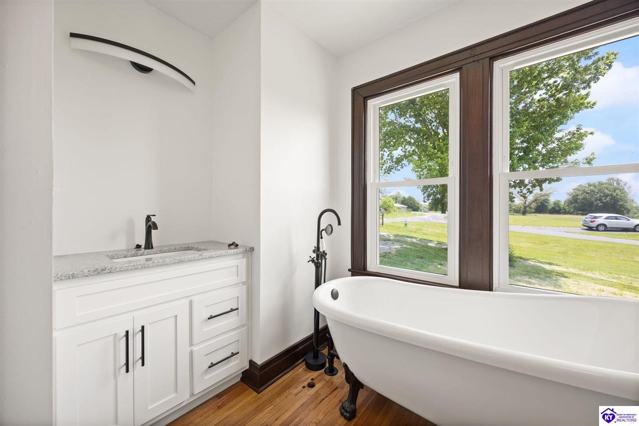 Realtor's notes: Step into the warmth and character of this beautifully remodeled 3-bedroom, 1-bath stone ranch home nestled in the heart of Summersville, Ky. This home seamlessly blends classic charm with modern updates, starting with the stunning refinished original hardwood floors throughout the main living spaces. The heart of the home is the stunning, all-new kitchen—featuring brand-new cabinets, countertops, and it flows to a spacious deck, perfect for morning coffee or evening gatherings with countryside views. Throughout the home, you'll also find new windows, lighting, and plumbing fixtures, adding comfort and style to every room.The spacious bathroom has been completely renovated and features a classic clawfoot tub, and a separate tiled shower. All three bedrooms are generously sized, offering plenty of natural light and flexibility for guests, office space, or family. Additional highlights include a brand-new gas heating and air system, a new gas water heater, new electric panel & sump pump. Out back, enjoy the peace and privacy of a good-sized yard overlooking wide-open country views. This home offers a rare combination of rural charm and turnkey comfort. Don't miss your chance to own this beautifully updated country gem! Listing Agent is Owner.