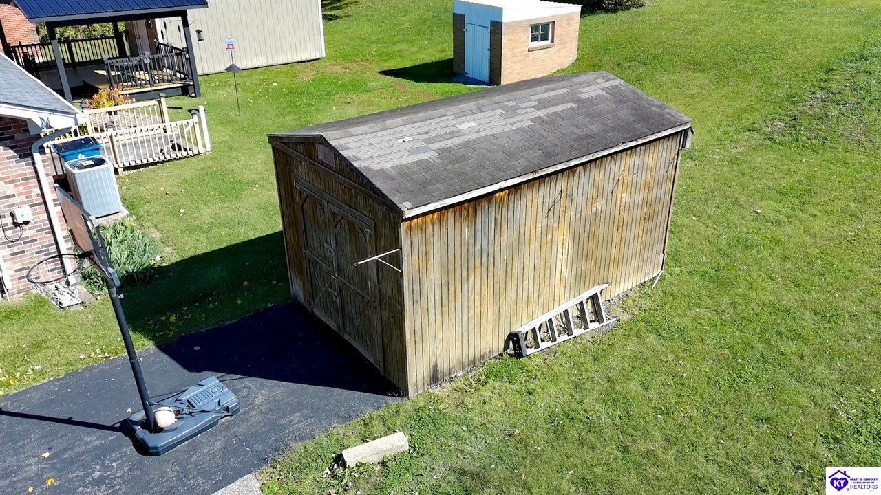 Exterior Covered Front Porch, Deck, Landscaping, Mature Trees, Storage Shed