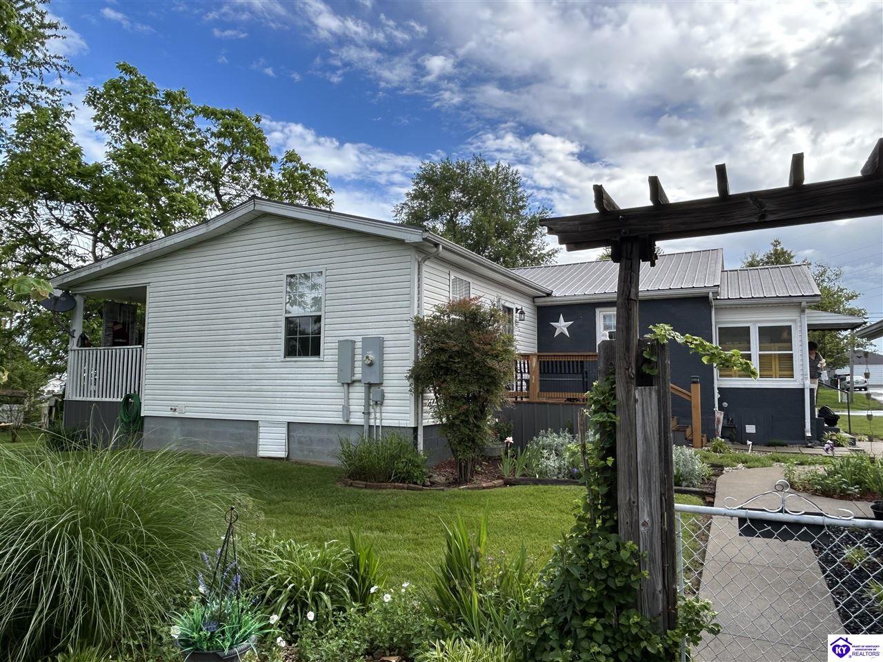 Realtor's notes: Welcome to this beautifully maintained 3-bedroom, 2-bathroom home nestled on a lush 1-acre lot in the heart of Hodgenville. Full of warmth and character, this property blends small-town charm, modern convenience, and a unique business potential. Inside, natural light fills the inviting living spaces, while the cottage-style kitchen features custom butcher block countertops, abundant cabinetry, and direct access to a sunporch that's perfect for year-round enjoyment. The bedrooms are spacious and flexible, with the primary suite offering a bonus room that could serve as a private office, dressing room, or reading nook. A standout feature is the separate living space previously used as a hair salon. Complete with plumbing, laundry, and a full bath, this area offers endless possibilities, whether continuing as a business (with proper city approval), creating a guest suite or designing the perfect home office. The property is enhanced by manicured gardens, mature trees, and a welcoming covered porch. Located in a peaceful area just outside city limits, you’ll have the benefit of lower taxes, proximity to schools, shops, parks, and the bonus of great, quiet business neighbors that make the setting even more appealing. Known for its rich history as the birthplace of Abraham Lincoln, Hodgenville provides the perfect backdrop for this one-of-a-kind property. Schedule your showing today and experience all the opportunities this property has to offer.