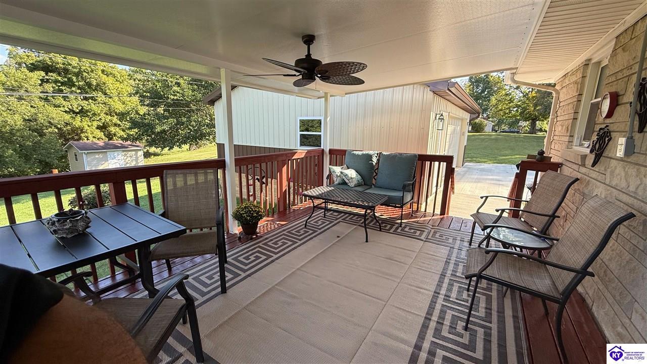 Realtor's notes: Interior photos coming soon! Call your Realtor, your lender, and your moving company because this one checks a lot of boxes! This immaculate 3-bedroom, 1.5-bath home isn't just updated and move-in ready- it's been seriously upgraded! The sellers have added a new water heater, water softener, a huge 26x26 garage with concrete floors and electric, plus a freshly poured concrete driveway and sidewalk that instantly boost curb appeal. Step inside to a kitchen that pops with stainless steel appliances, crisp white cabinets, granite countertops, and gray wood-look tile, a modern, clean look you'll love. Out back is where it really shines: a large deck now covered, making it perfect for your morning coffee, weekend BBQs, or just relaxing even when it's raining. Pair that with a handy storage shed and wide-open farmland views right out front, and you've got the best of both worlds: country living just minutes from Fort Knox and Elizabethtown. Homes with this much care and thoughtful updating don't stick around long. Call today and let's make this one yours!