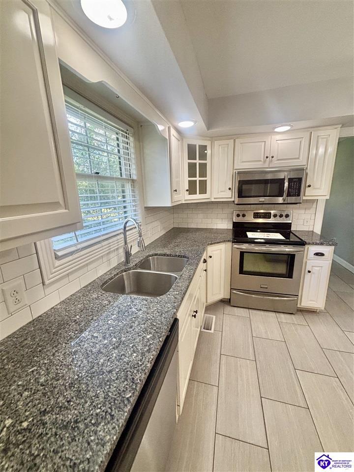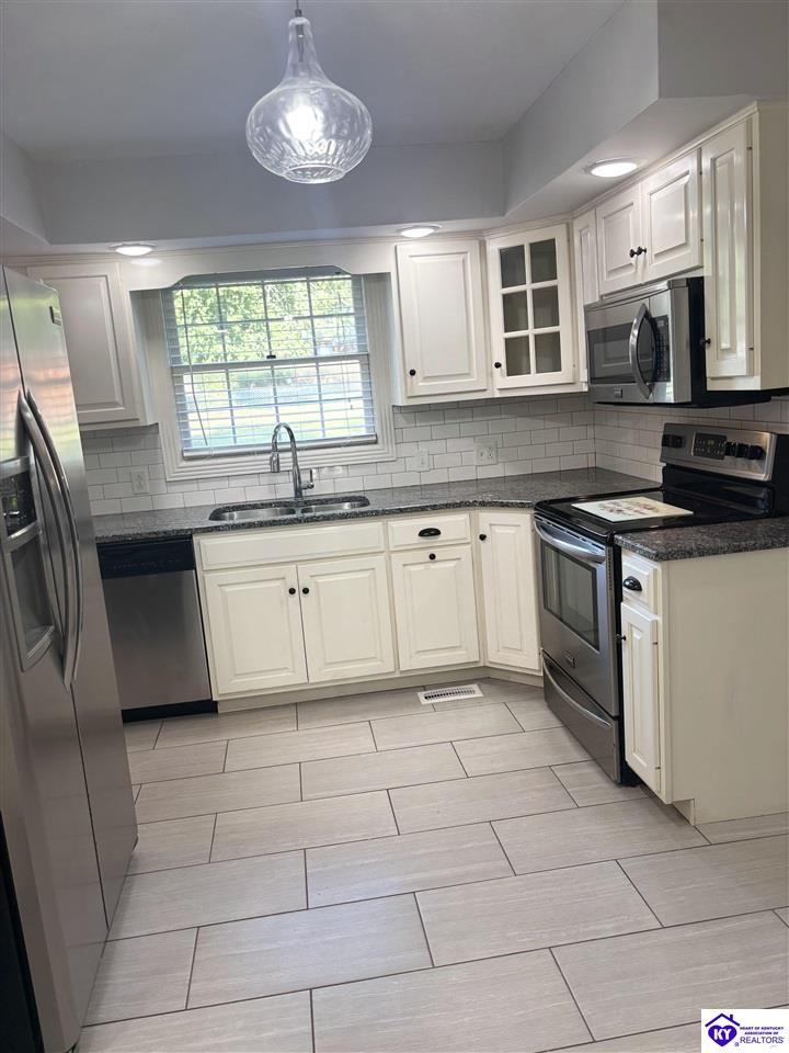 Realtor's notes: SPLENDID PROPERTY AWAITS NEW BUYER! This property and home boast exceptional beauty. The elegance is immediately apparent upon entering the property, which features a circle driveway in the front and a secondary driveway leading to the garage. Located in the desirable Forest Hills subdivision, the foyer showcases stunning hardwood floors and a beautiful staircase, complemented by new lighting fixtures. The home's layout offers a seamless flow, with a formal dining room featuring beautiful wainscoting. The formal living room boasts a large vaulted ceiling with exposed beams, hardwood floors, and impressive front doors. The kitchen exudes luxury, with granite countertops and stainless steel appliances. An additional dining area adjoins the kitchen, opening into a spacious and gorgeous den with a captivating fireplace featuring a stylish painted look. The primary bedroom is conveniently located on the main floor, with an expansive primary bathroom boasting exquisite tile work reminiscent of a magazine spread. The bathroom features a stunning tile shower with dual showerheads and a custom bench. The large, fenced backyard offers a spacious patio perfect for relaxation and entertainment. The two-car garage provides ample space, leading into a nicely sized laundry room with cabinetry. Upstairs, two beautifully appointed split bedrooms share a Jack and Jill bathroom with newly added features. Both bedrooms have walk-in closets that lead to additional space, perfect for bonus rooms, exercise areas, or study spaces. This property's exceptional charm will undoubtedly captivate you. Its prime location offers convenient access to the Campbellsville Country Club, shopping, boutiques, Campbellsville University, medical facilities, and Taylor County Hospital. Additionally, the property is approximately less than 10 miles from Green River Lake.