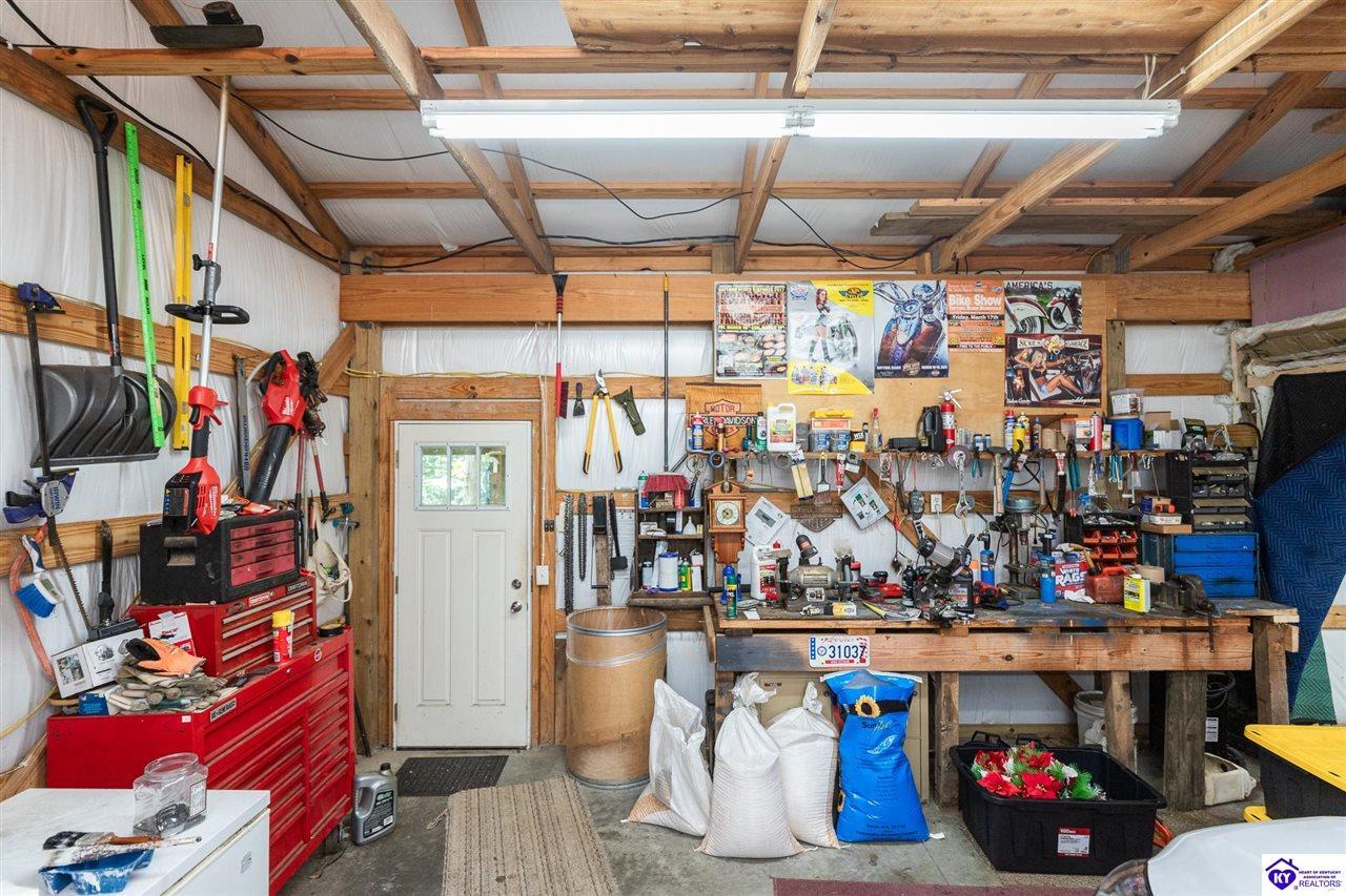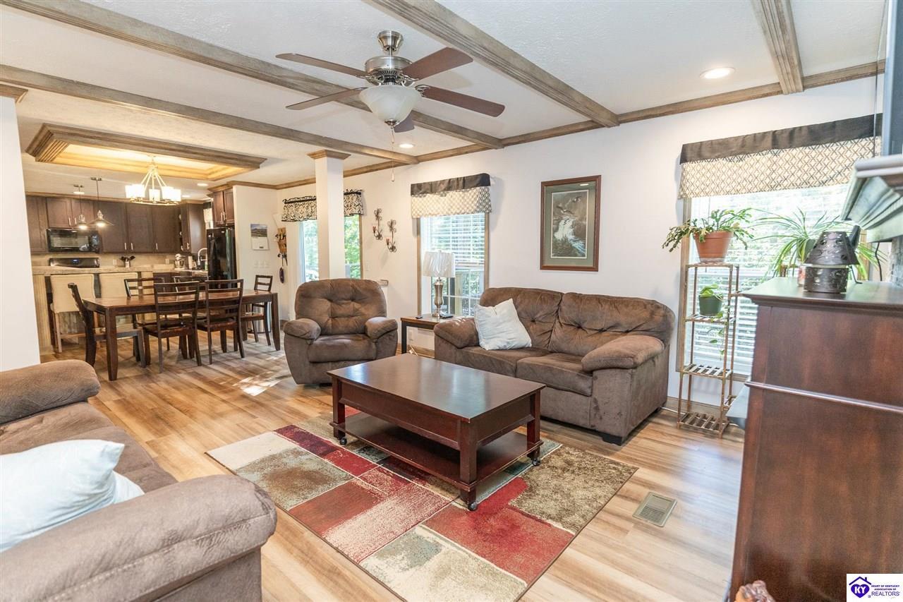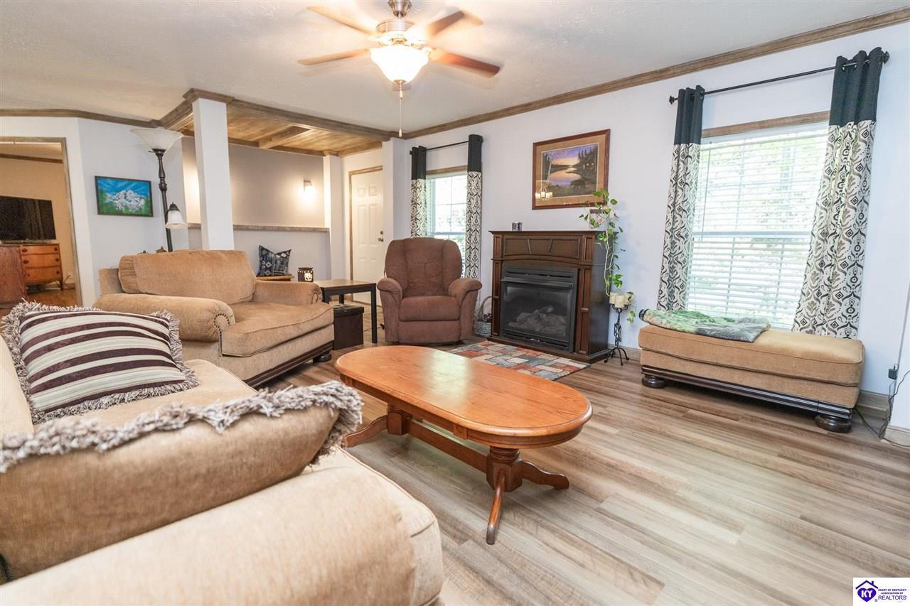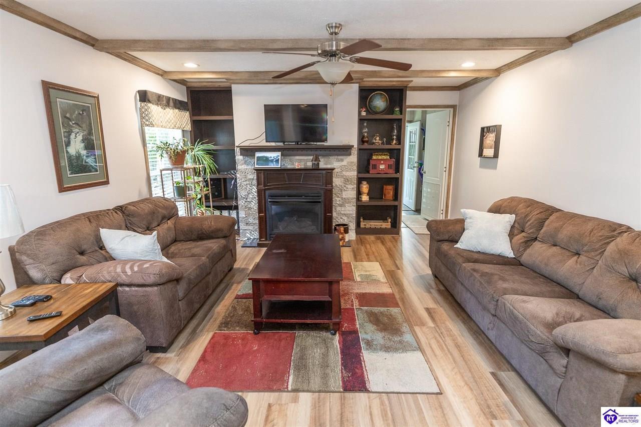 Realtor's notes: Come tour this 4-bedroom, 2 full bath home sitting on over 23 acres of a recreational paradise. This home was built in 2018 and has 2,280 square feet of living space. The main living area has an open concept and features waterproof LVP flooring and ceiling beam accents. The kitchen is very large with tons of counter and cabinet space, has an island and sits conveniently as the centerpiece of the home between two separate living rooms and the dining area. It truly is a functional entertaining space for any type of get together. Both living areas have fireplaces. One has a wood burning fireplace and the other a gas fireplace. The sliding glass doors behind the dining area exit out to the spacious back deck. The primary suite can easily accommodate a king size bed and additional furniture. The ensuite features double vanities, a soaking tub, and separate walk-in shower. Rounding out the primary suite is an enormous walk-in closet. The 3 guest bedrooms are nicely sized with carpet flooring, and the closets have closet lights. You have plenty of space for bedrooms, an office, or craft area. The gun safe in one of the bedrooms will stay with the home. The guest bath also has dual vanities as well as a tub/shower combo. Lastly, the laundry room is on the side of the home so you can enter from a long day exploring the beautiful property and have a place to change without tracking the great outdoors in with you. As a bonus, the washer and dryer will stay with the home. Outdoors, the property continues to shine. The 32x40 detached garage has concrete floors, electricity, and is heated. Beside the garage, you have a wood boiler system that can heat the entire home in the winter. This system helps keep the bills down as well as act as a backup if needed. Additionally, there is a 14x30 RV carport that has a 14’ height clearance and another storage building for all of your outdoor tools and toys. There is a small hunting cabin on the property for you to be able to go and have a peaceful stay. It has electricity inside it that can be powered with a generator if you so choose. The property is 23.28 acres and lays nicely for all types of recreation. The owner has kept the underbrush cut back. It has nice, open trail areas cut in to navigate around. Wildlife abounds on and around the property. The entire property is well maintained and ready for you to start enjoying it out of the gate. Don’t hesitate on this property. Schedule your tour today!