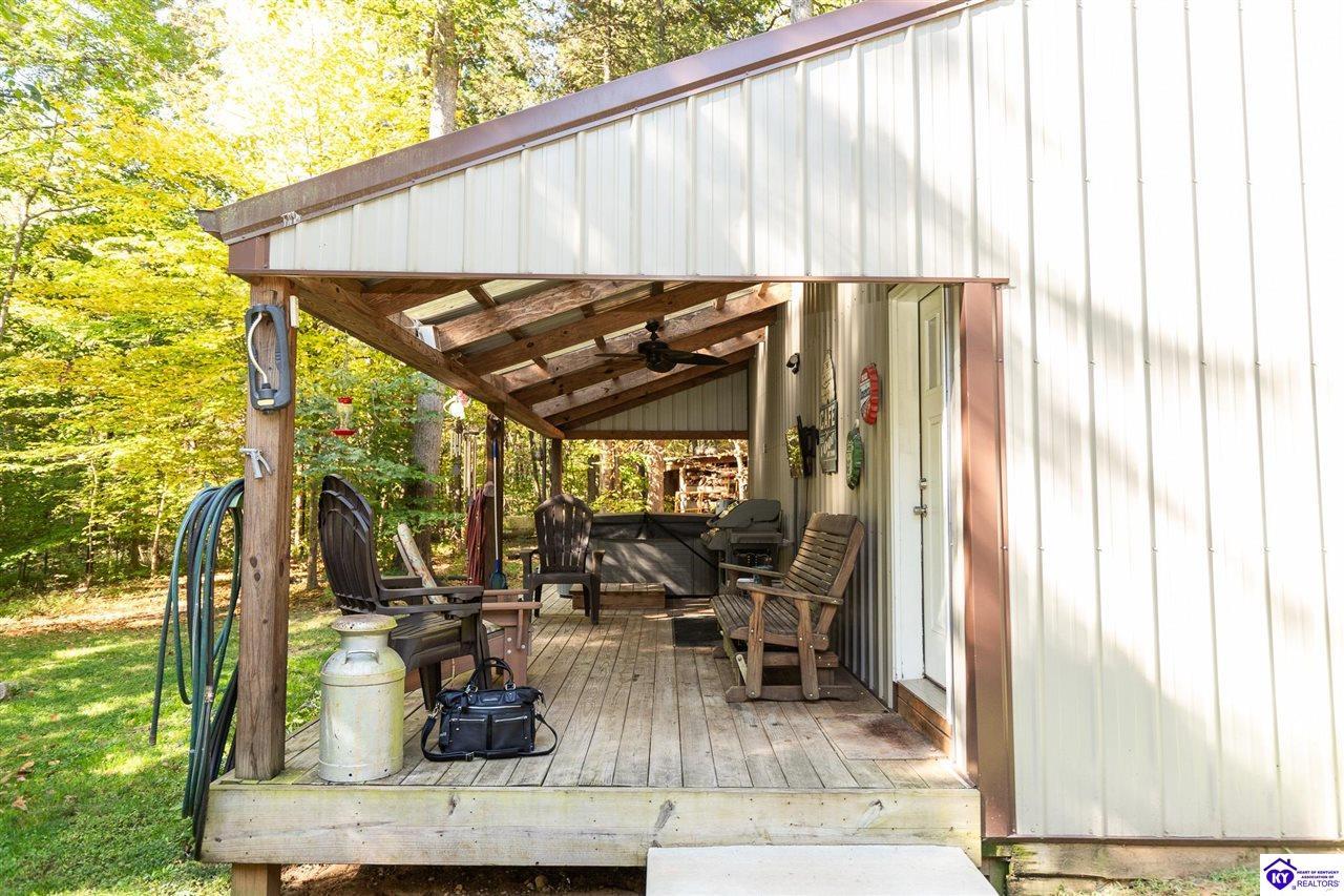 Exterior Out Building, Workshop, Deck, Mature Trees, Outdoor Lighting, Porch, Stamped Concrete Walks, Trees