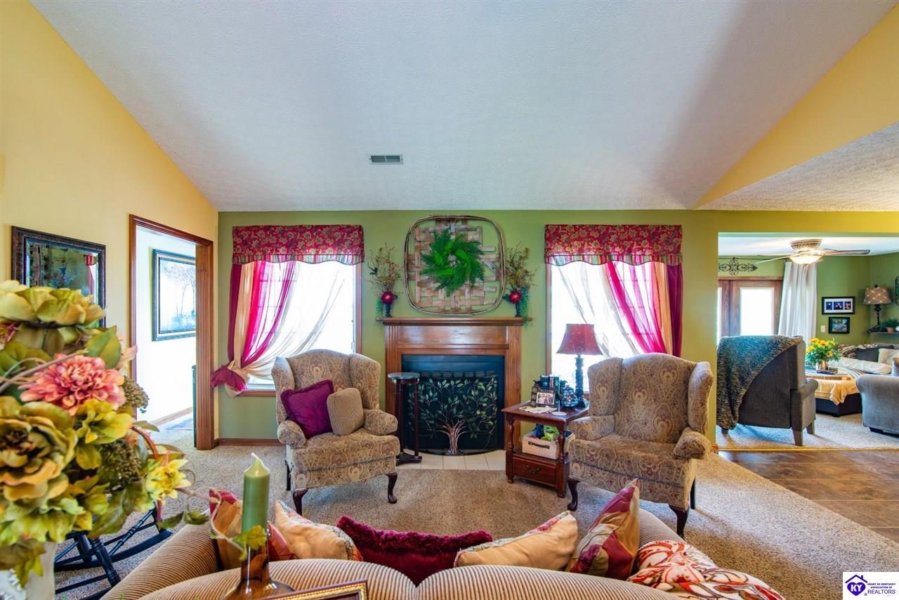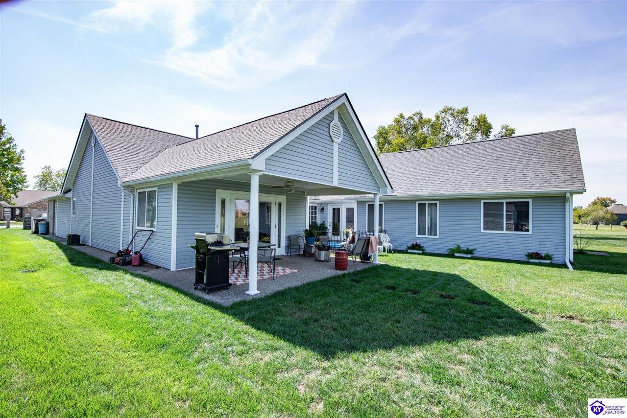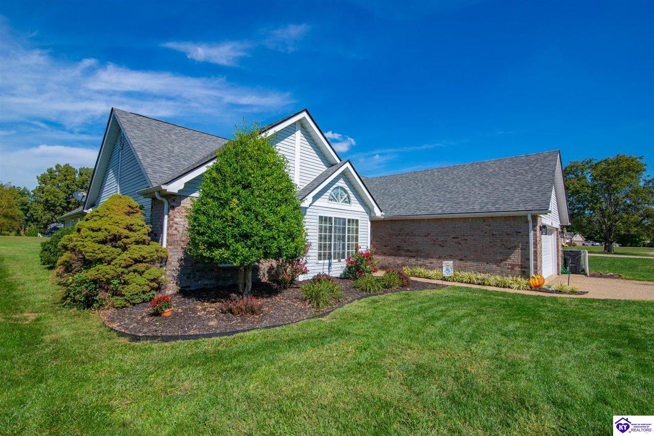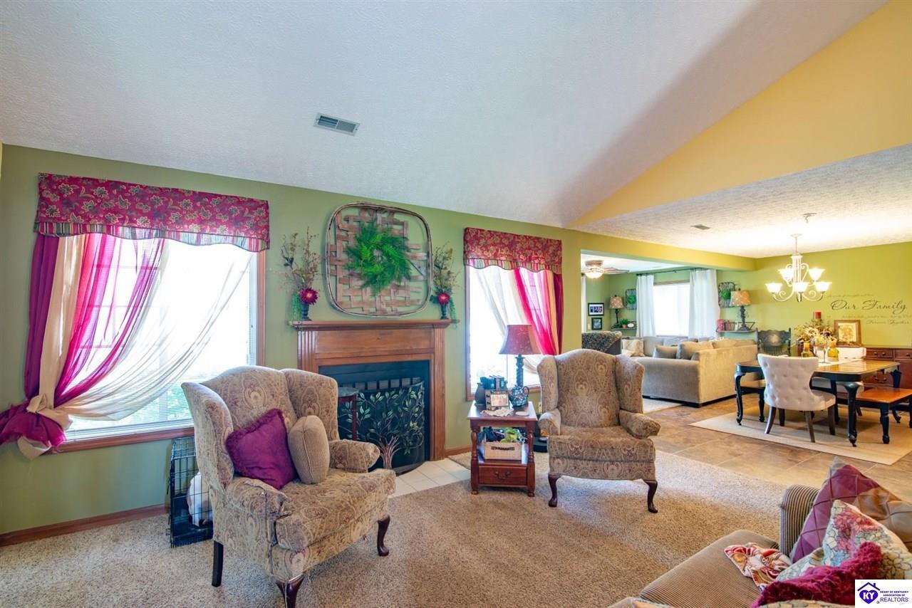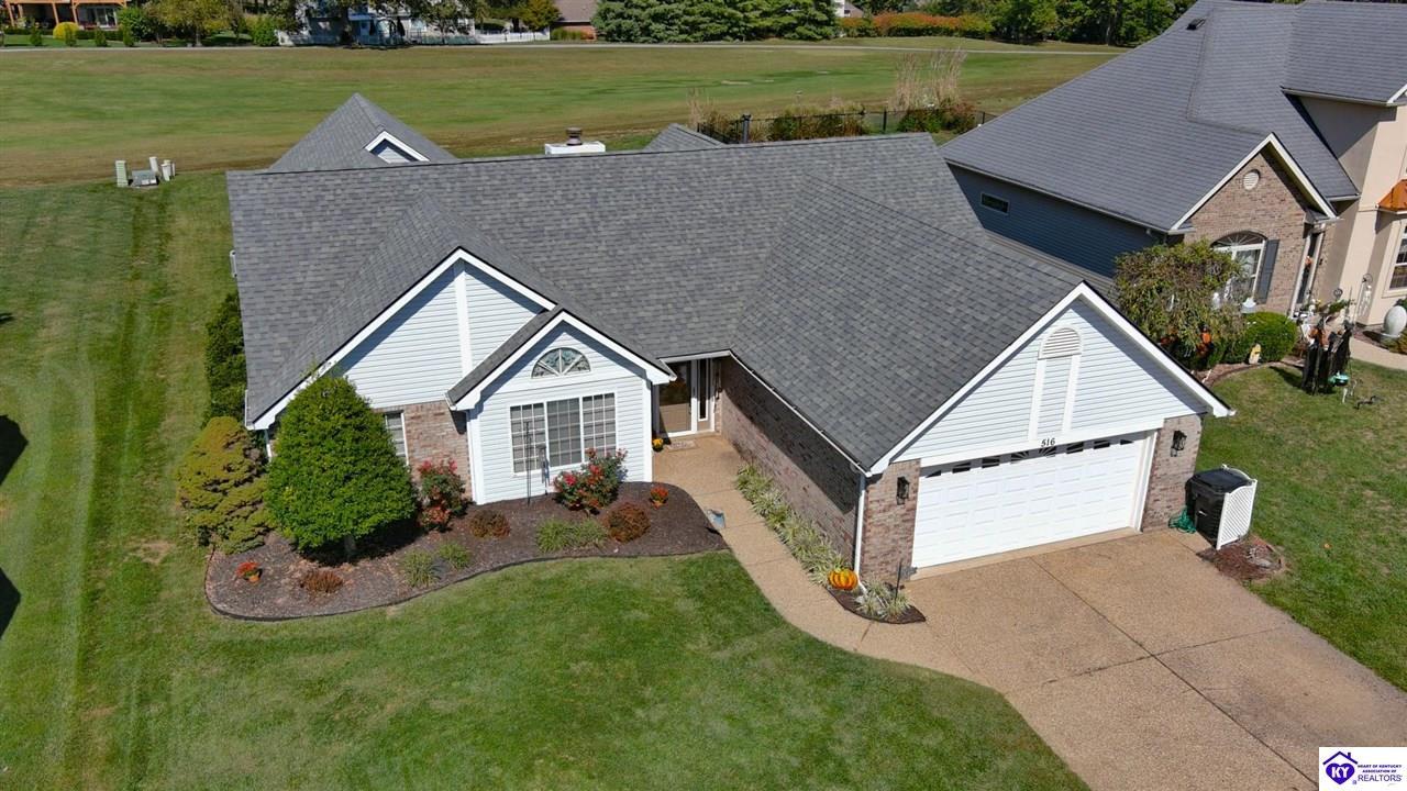 Realtor's notes: Beautiful Home Backing Up to the 11th Fairway of Heartland Golf Course! Enjoy golf-course living at its best in this stunning home located on the desirable north side of Elizabethtown. The welcoming foyer opens to a bright kitchen featuring beautiful cabinetry, a breakfast bar, and a spacious kitchen/dining area—perfect for family meals or entertaining. A comfortable family room leads out to a covered patio where you can relax and take in serene views of the fairway. The home also includes a living room with a cozy fireplace, creating a warm atmosphere for gatherings. The private master suite offers vaulted ceilings, a walk-in closet, and a full bath with a double vanity. There are three additional bedrooms and another full bath, providing ample space for family or guests. The backyard has underground pet fencing. The home’s combination of hardwood, tile, and carpet flooring adds both style and comfort throughout. Outside, you’ll appreciate a two-car attached garage plus a dedicated golf cart/mower garage, ideal for your active lifestyle. This property blends comfort, function, and location—offering peaceful golf-course views just minutes from everything Elizabethtown has to offer!