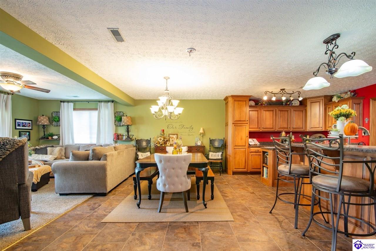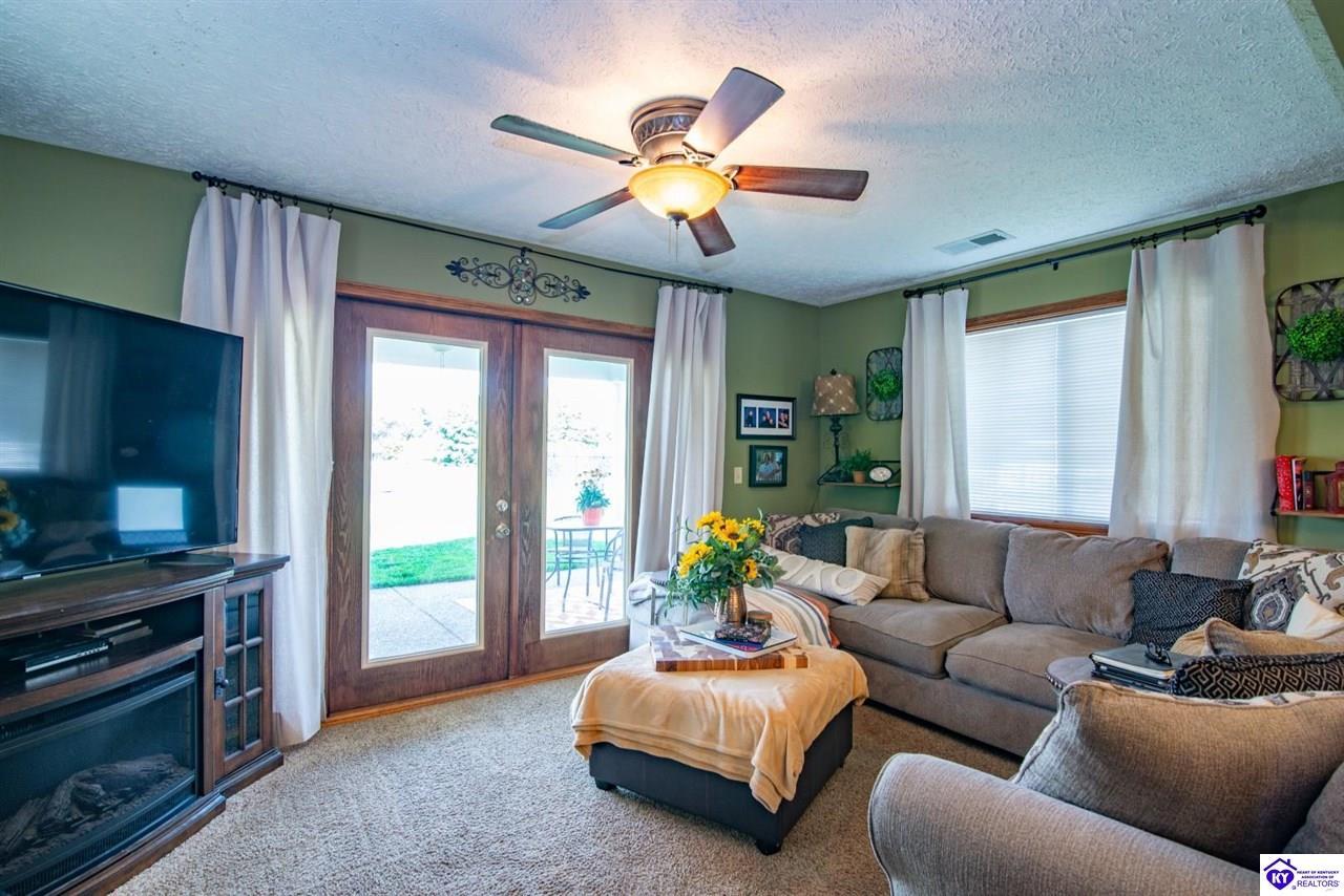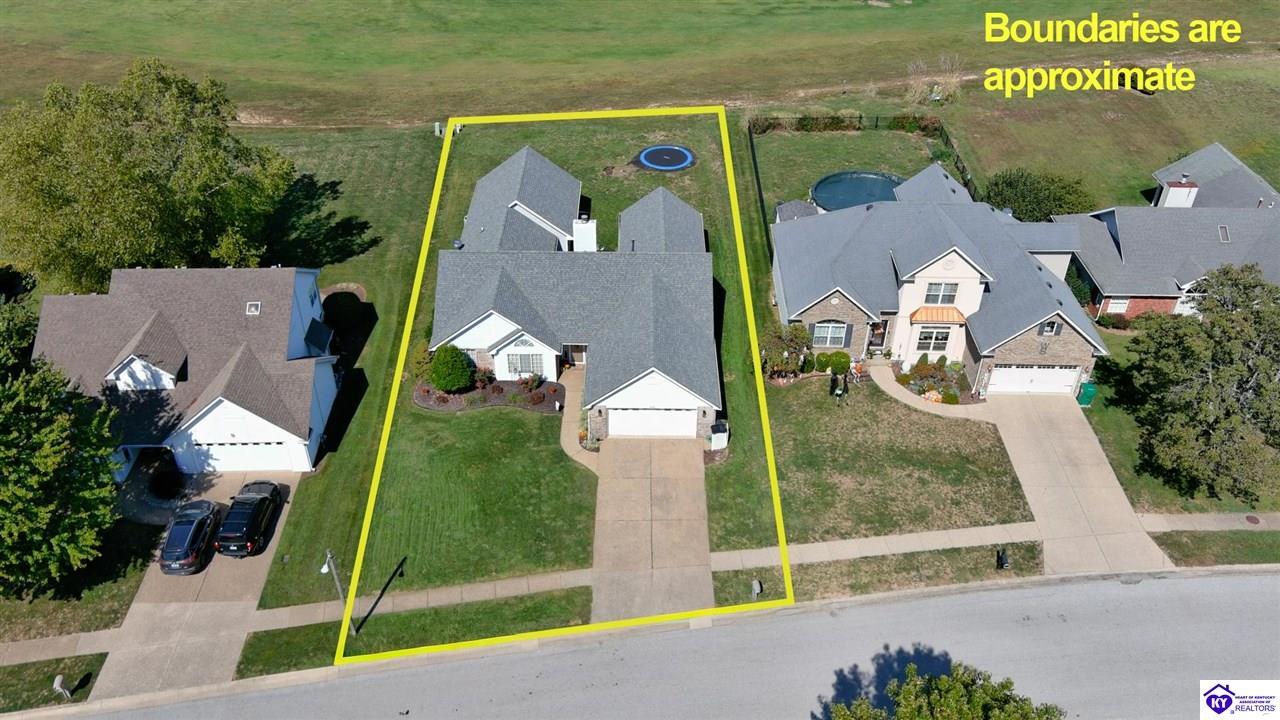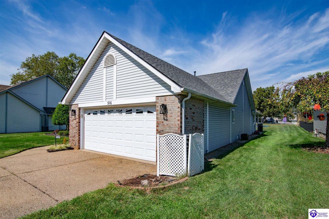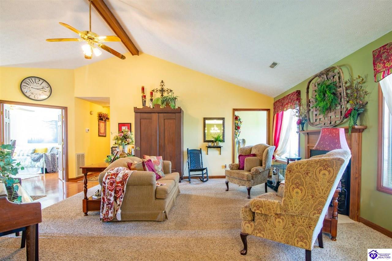 Realtor's notes: Beautiful Home Backing Up to the 11th Fairway of Heartland Golf Course! Enjoy golf-course living at its best in this stunning home located on the desirable north side of Elizabethtown. The welcoming foyer opens to a bright kitchen featuring beautiful cabinetry, a breakfast bar, and a spacious kitchen/dining area—perfect for family meals or entertaining. A comfortable family room leads out to a covered patio where you can relax and take in serene views of the fairway. The home also includes a living room with a cozy fireplace, creating a warm atmosphere for gatherings. The private master suite offers vaulted ceilings, a walk-in closet, and a full bath with a double vanity. There are three additional bedrooms and another full bath, providing ample space for family or guests. The backyard has underground pet fencing. The home’s combination of hardwood, tile, and carpet flooring adds both style and comfort throughout. Outside, you’ll appreciate a two-car attached garage plus a dedicated golf cart/mower garage, ideal for your active lifestyle. This property blends comfort, function, and location—offering peaceful golf-course views just minutes from everything Elizabethtown has to offer!
