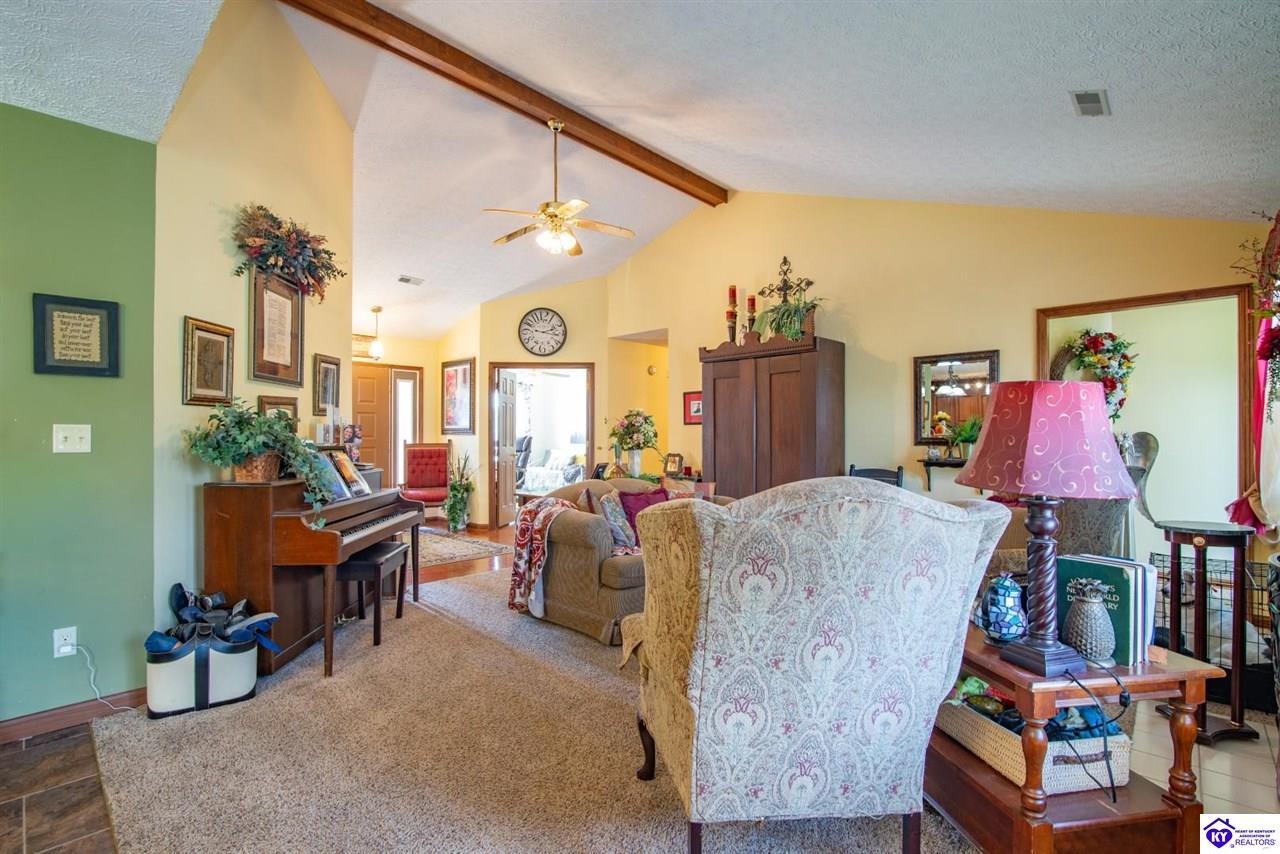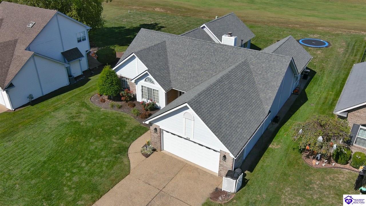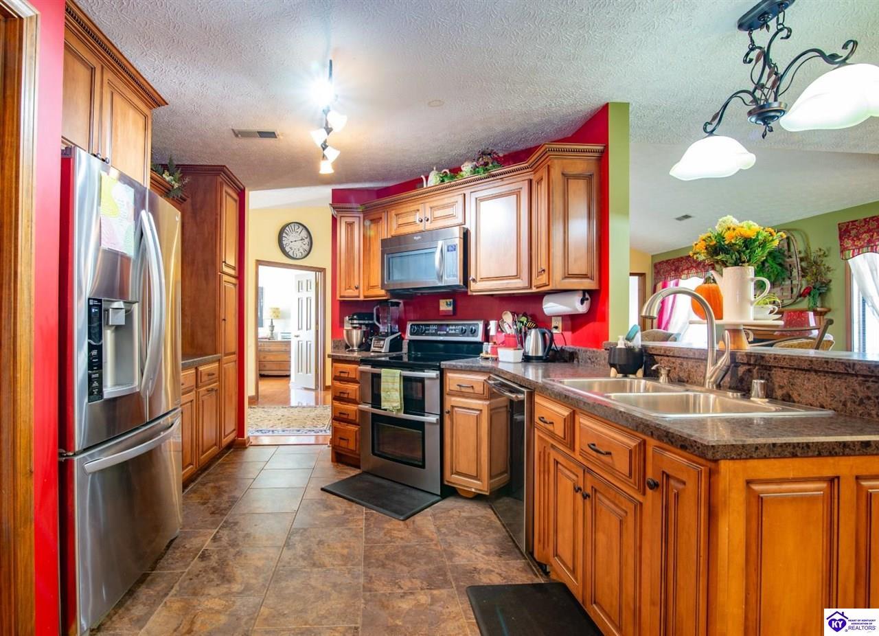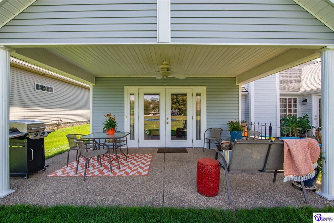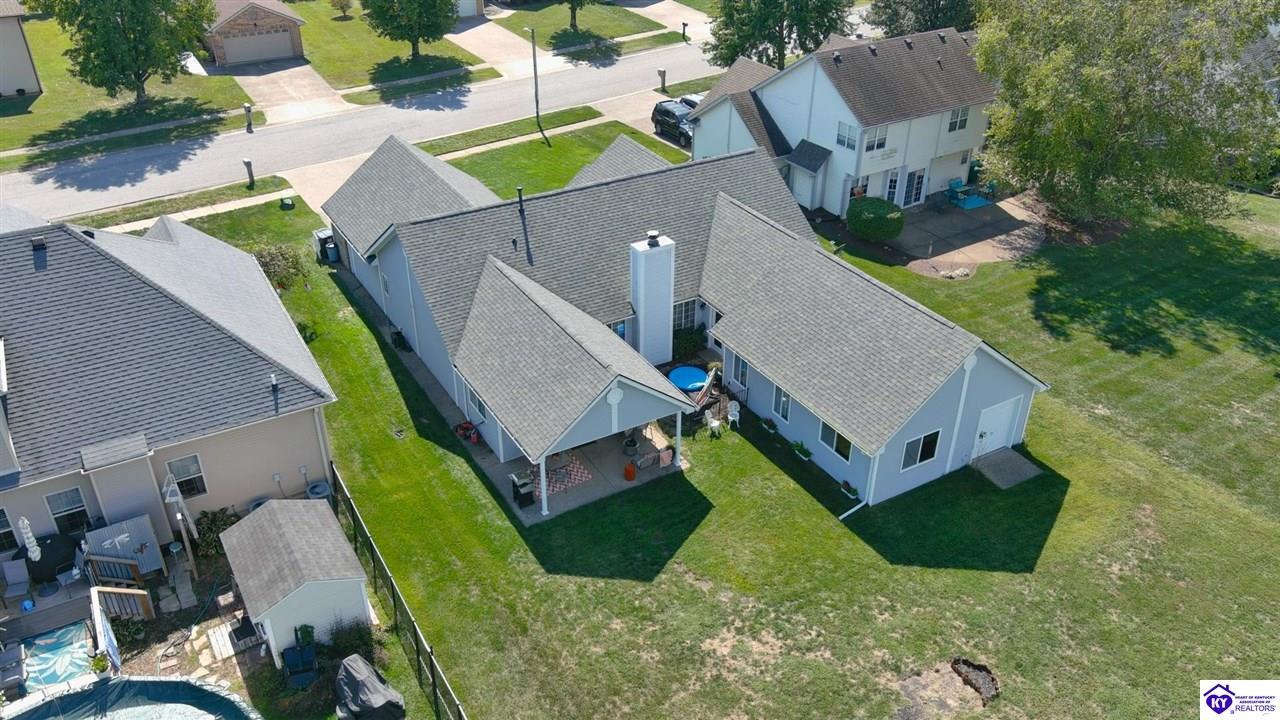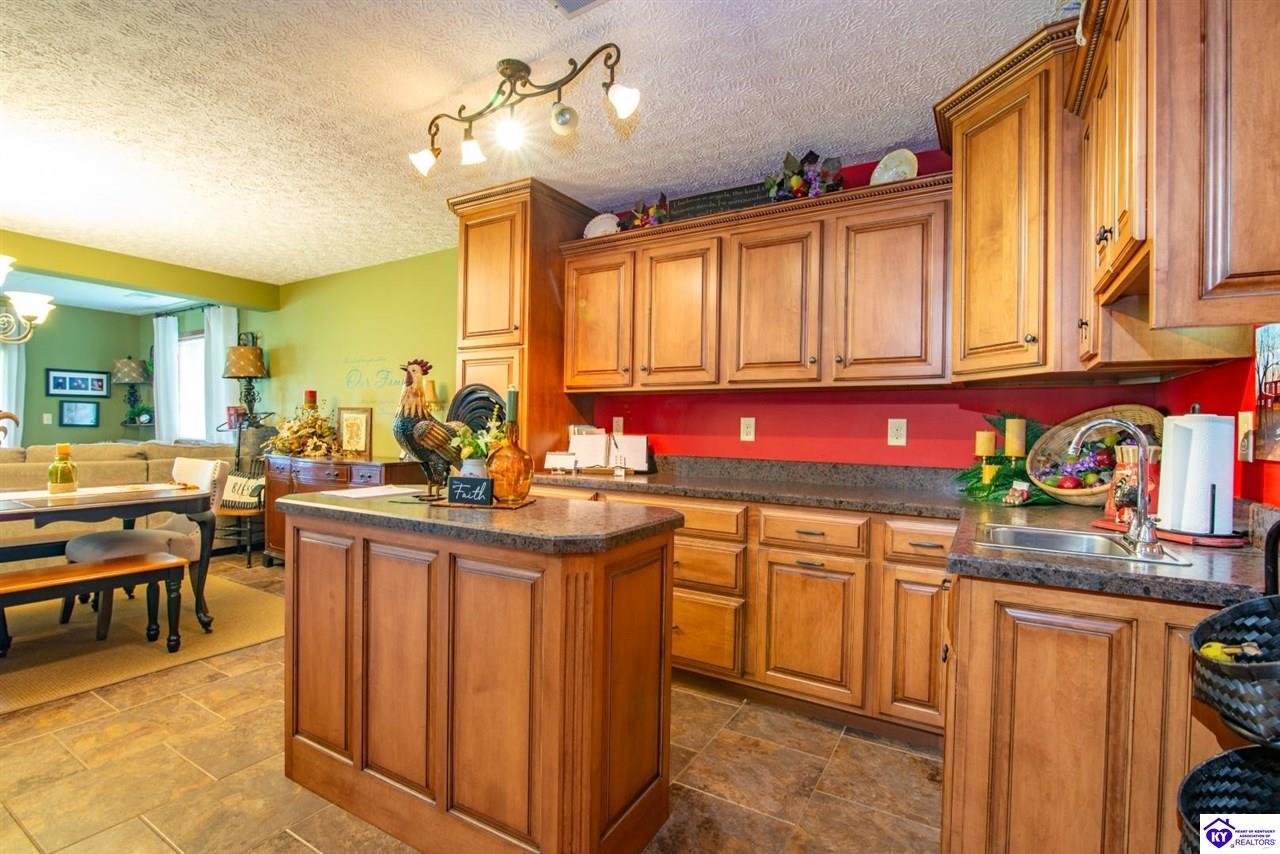 Realtor's notes: Beautiful Home Backing Up to the 11th Fairway of Heartland Golf Course! Enjoy golf-course living at its best in this stunning home located on the desirable north side of Elizabethtown. The welcoming foyer opens to a bright kitchen featuring beautiful cabinetry, a breakfast bar, and a spacious kitchen/dining area—perfect for family meals or entertaining. A comfortable family room leads out to a covered patio where you can relax and take in serene views of the fairway. The home also includes a living room with a cozy fireplace, creating a warm atmosphere for gatherings. The private master suite offers vaulted ceilings, a walk-in closet, and a full bath with a double vanity. There are three additional bedrooms and another full bath, providing ample space for family or guests. The backyard has underground pet fencing. The home’s combination of hardwood, tile, and carpet flooring adds both style and comfort throughout. Outside, you’ll appreciate a two-car attached garage plus a dedicated golf cart/mower garage, ideal for your active lifestyle. This property blends comfort, function, and location—offering peaceful golf-course views just minutes from everything Elizabethtown has to offer!