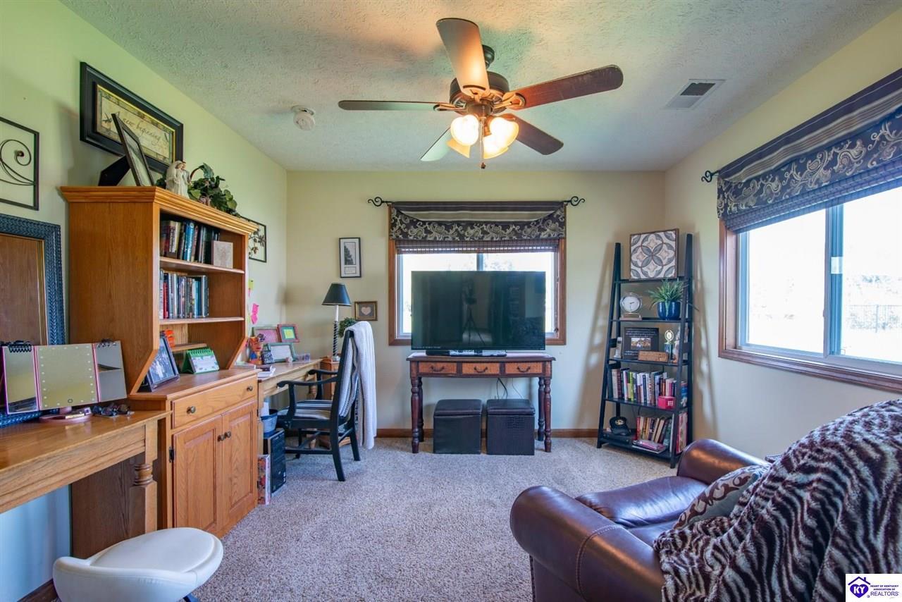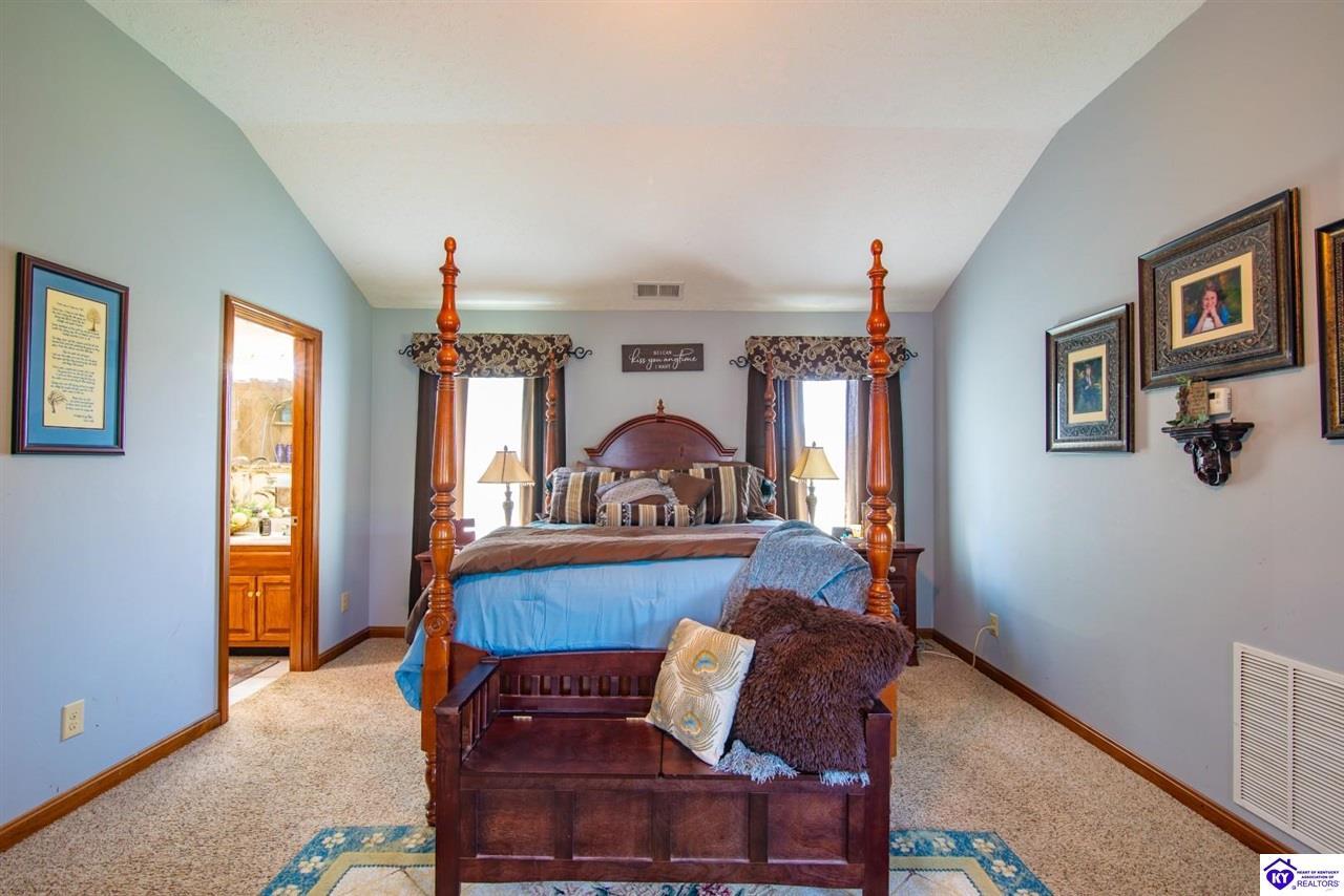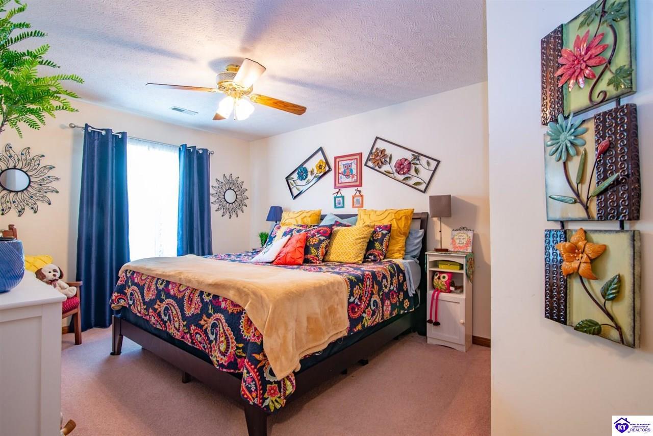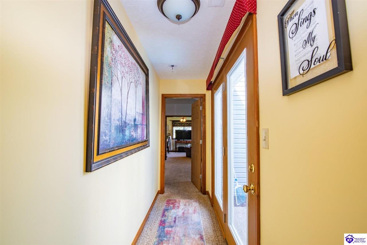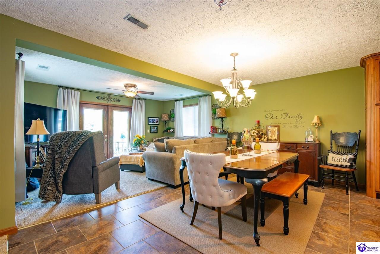 Realtor's notes: Beautiful Home Backing Up to the 11th Fairway of Heartland Golf Course! Enjoy golf-course living at its best in this stunning home located on the desirable north side of Elizabethtown. The welcoming foyer opens to a bright kitchen featuring beautiful cabinetry, a breakfast bar, and a spacious kitchen/dining area—perfect for family meals or entertaining. A comfortable family room leads out to a covered patio where you can relax and take in serene views of the fairway. The home also includes a living room with a cozy fireplace, creating a warm atmosphere for gatherings. The private master suite offers vaulted ceilings, a walk-in closet, and a full bath with a double vanity. There are three additional bedrooms and another full bath, providing ample space for family or guests. The backyard has underground pet fencing. The home’s combination of hardwood, tile, and carpet flooring adds both style and comfort throughout. Outside, you’ll appreciate a two-car attached garage plus a dedicated golf cart/mower garage, ideal for your active lifestyle. This property blends comfort, function, and location—offering peaceful golf-course views just minutes from everything Elizabethtown has to offer!