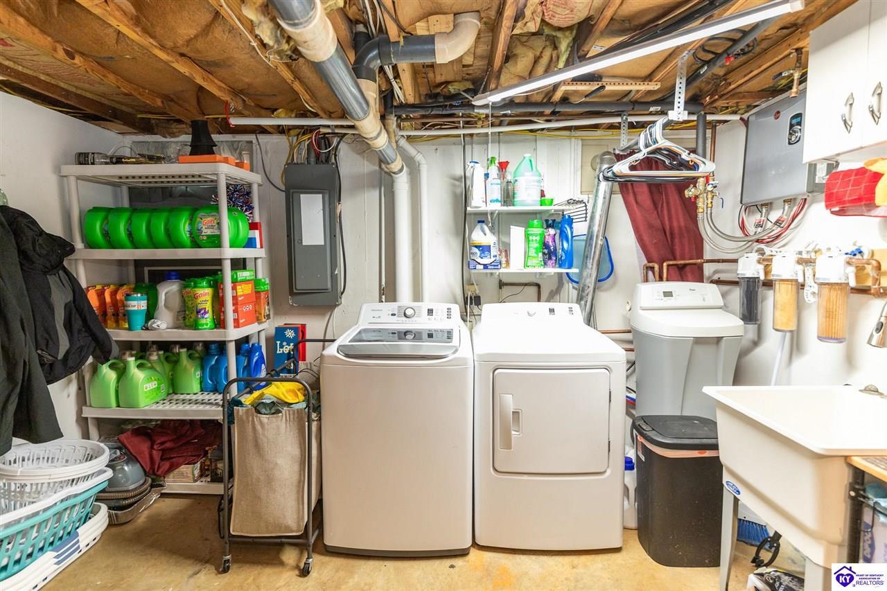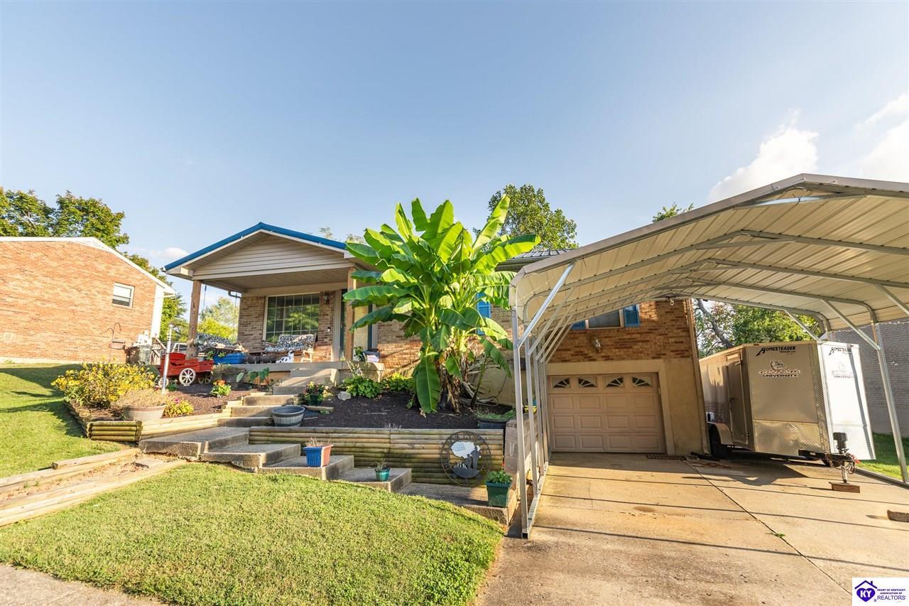 Realtor's notes: Come check out this 3 bedroom, 1.5 bath home with a basement and a one car garage in Elizabethtown! Notice the thoughtful landscaping as you enter inside through the covered front porch. The living/dining combo is perfect for entertaining friends or family. Down the hallway, find the full bathroom as well as the first two nicely sized bedrooms. The primary bedroom also includes a half bathroom. Downstairs, the basement includes a laundry area with a utility sink, water purification system, and a water softener. There is one finished bonus room, plenty of space for storage, as well as access to the one car garage. Outside, there is a large 20x20x12 carport that remains. In the fenced-in backyard, there is a deck that opens to the kitchen while the small koi pond provides a relaxing atmosphere. A shed provides extra storage as well! Don't miss out on this one, schedule your tour today!