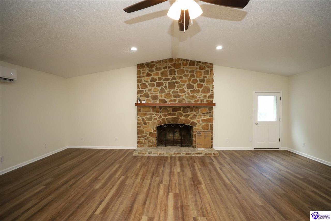 Realtor's notes: Welcome to your next chapter in this beautifully updated three-bedroom, two-bathroom home that perfectly balances comfort with modern convenience. Step into the impressive 28x28 family room where a stone fireplace creates the perfect gathering spot, complemented by luxury vinyl plank flooring and soaring vaulted ceilings that add an airy, spacious feel. The thoughtful updates throughout this home will catch your eye immediately. Hardwood floors flow seamlessly through the living room and all three bedrooms, creating warmth and continuity. The kitchen showcases elegant granite countertops paired with brand-new stainless-steel appliances and fresh luxury vinyl plank flooring. Recent improvements include a new roof overhead and a newly finished basement below, expanding your living and storage options. The brand new heat & air ensures year-round comfort, while the detached one-car garage provides convenient parking and additional storage space. This home represents exceptional value with its combination of recent updates and practical layout. From the granite surfaces to the hardwood floors, every detail has been carefully considered. Whether you're hosting friends in the spacious family room or enjoying quiet evenings by the fireplace, this property offers the perfect backdrop for creating lasting memories. Don't let this opportunity slip away, schedule your viewing today!
