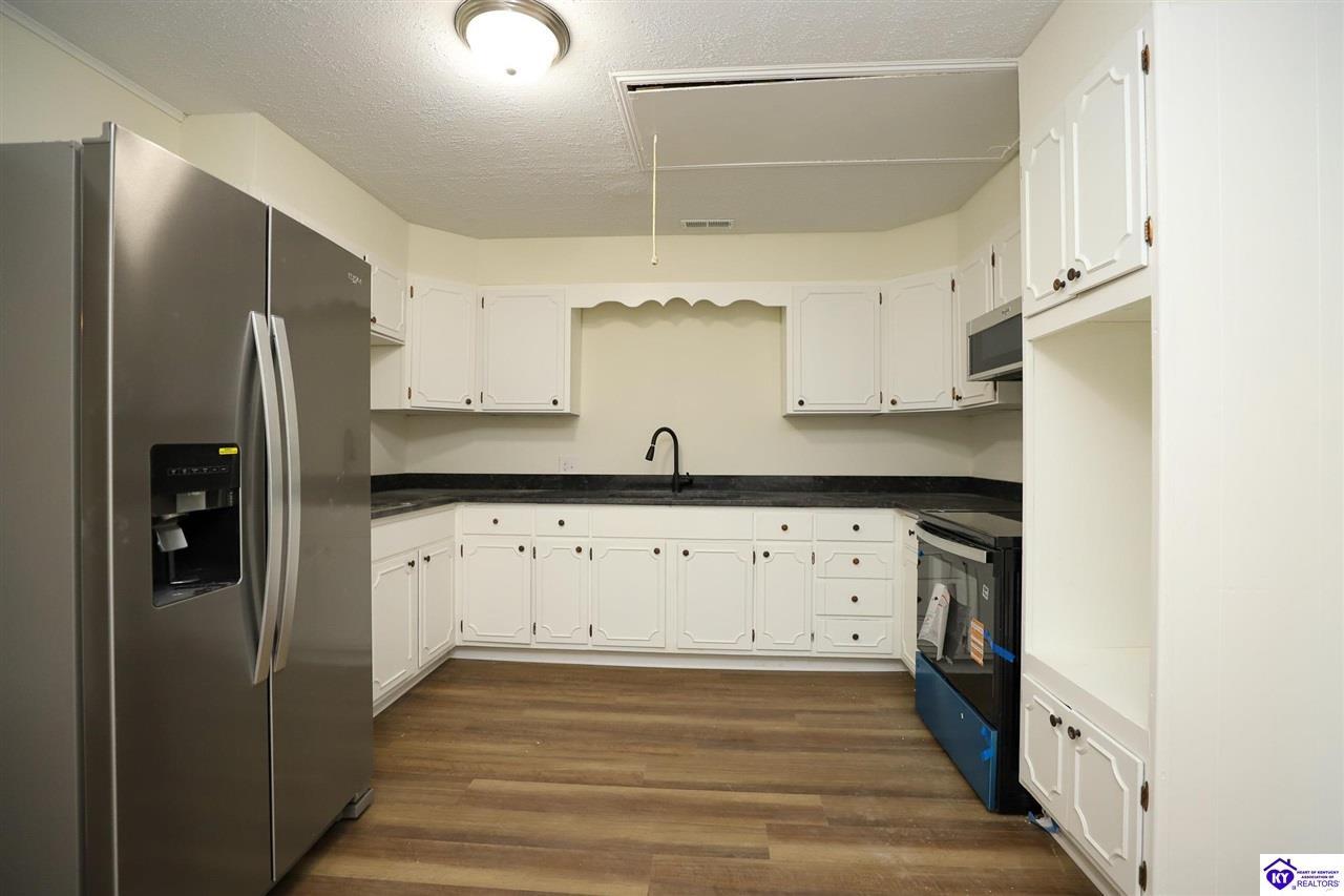 Kitchen Granite Counter Tops, Microwave, Refrigerator, Smooth Top Range