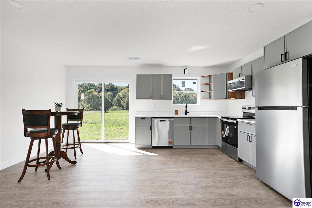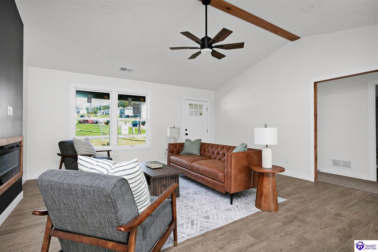 Realtor's notes: Welcome to 900 Edgebrook Drive – a stunning new construction brick ranch in the heart of Vine Grove! This beautifully crafted home offers the perfect blend of style, comfort, and efficiency with a desirable open-concept layout and a split-bedroom floor plan for added privacy. Step inside to soaring vaulted ceilings and a cozy electric fireplace in the spacious living room – the perfect place to relax or entertain. The heart of the home is the gorgeous kitchen and dining combo, featuring modern finishes, ample cabinetry, and a layout designed for everyday living. With 3 generously sized bedrooms and 2 full bathrooms, there's room for everyone to feel at home. The primary suite offers a peaceful retreat, while the additional bedrooms are perfect for family, guests, or a home office. This home is as smart as it is beautiful, with energy-efficient spray foam insulation to help keep utility costs low year-round. Located just minutes from Fort Knox and Elizabethtown, you'll love the convenience of nearby shopping, dining, and easy commuting – all while enjoying the peace and quiet of a friendly neighborhood setting. Don't miss your chance to own this incredible new home – schedule your private showing today!