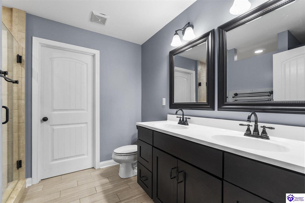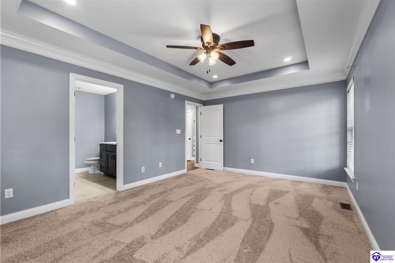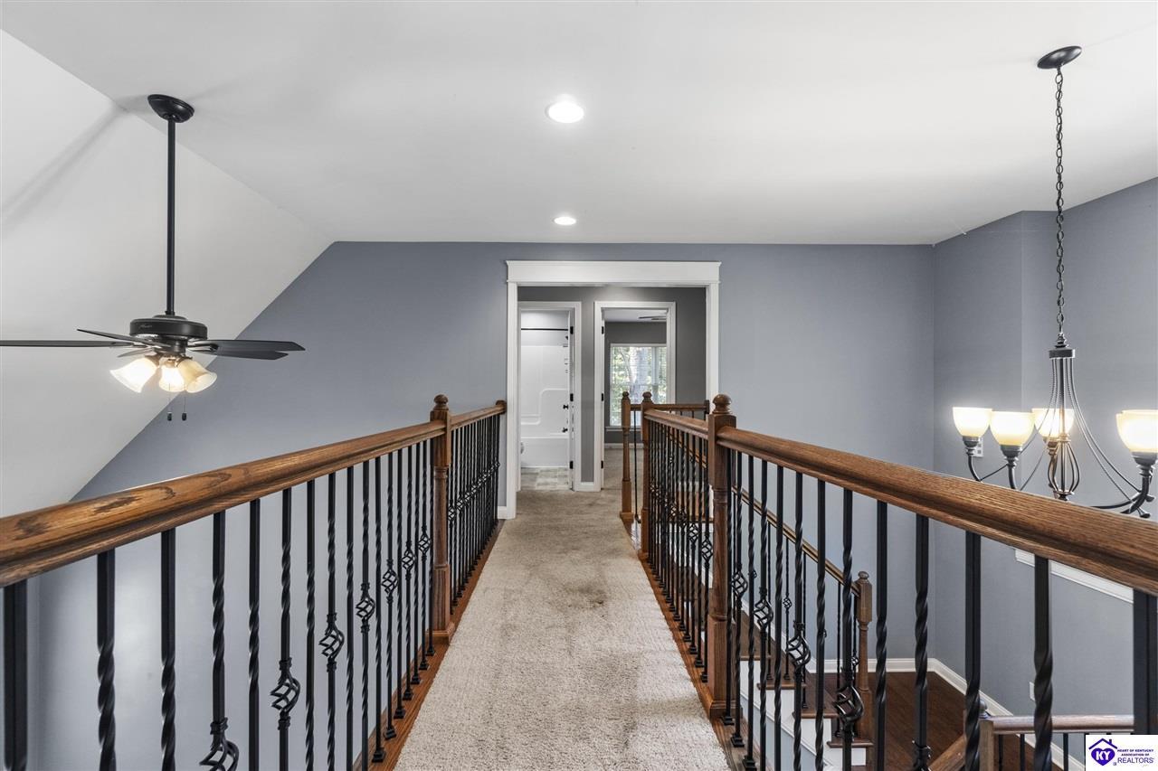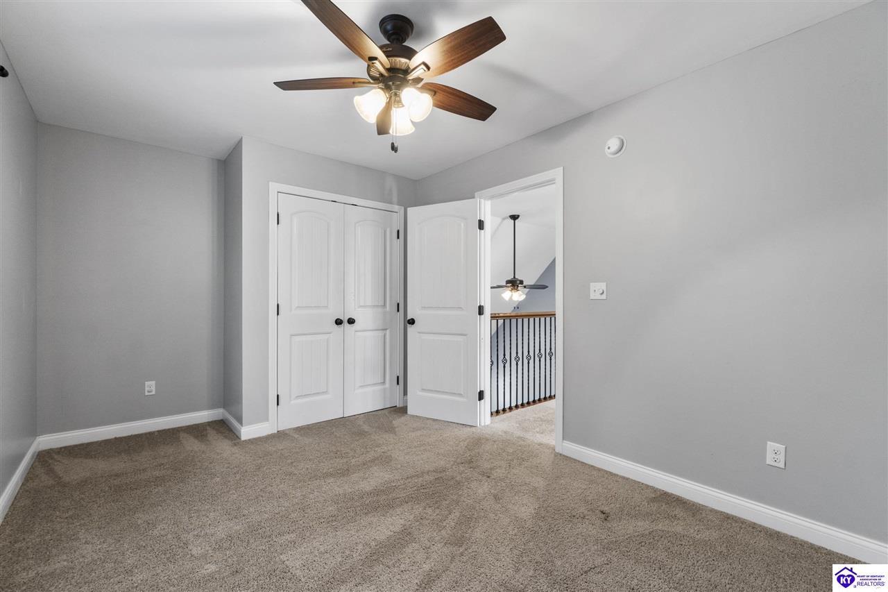 Realtor's notes: Doe Valley Treasure! This stunning home truly has it all—luxury finishes, a thoughtful layout, and a private cul-de-sac setting. The great room welcomes you with a soaring vaulted ceiling, luxury hardwood laminate flooring, and expansive windows overlooking a spacious private yard. The open-concept design flows into the kitchen and dining area, featuring beautiful cabinetry, a breakfast bar, stainless steel appliances, pantry, and a cozy dining nook. A versatile front room can serve as a formal dining space or a fabulous home office. The first-floor primary suite is a retreat of its own, offering a tray ceiling, large walk-in closet, and spa-inspired ensuite with walk-in shower. A convenient laundry/mudroom connects to the attached 2-car garage for everyday ease Upstairs, the second floor overlooks the main living area and includes three generously sized bedrooms and another full bath. The finished basement expands your potential living space with options to finish a family/theater room, bonus room, and storage. A freshly added full bath makes this space ready for completing to your desire. Walks out to a glorious backyard with views of the golf course. Nestled at the end of its own cul-de-sac, this home offers privacy, style, and comfort. Even better, it's located within the gated Doe Valley community, where you'll enjoy access to a golf course, pool, country club, basketball and tennis courts, playground, restaurant and a gorgeous lake. This home blends elegance, convenience, and resort-style amenities ... an Absolute MUST-SEE!