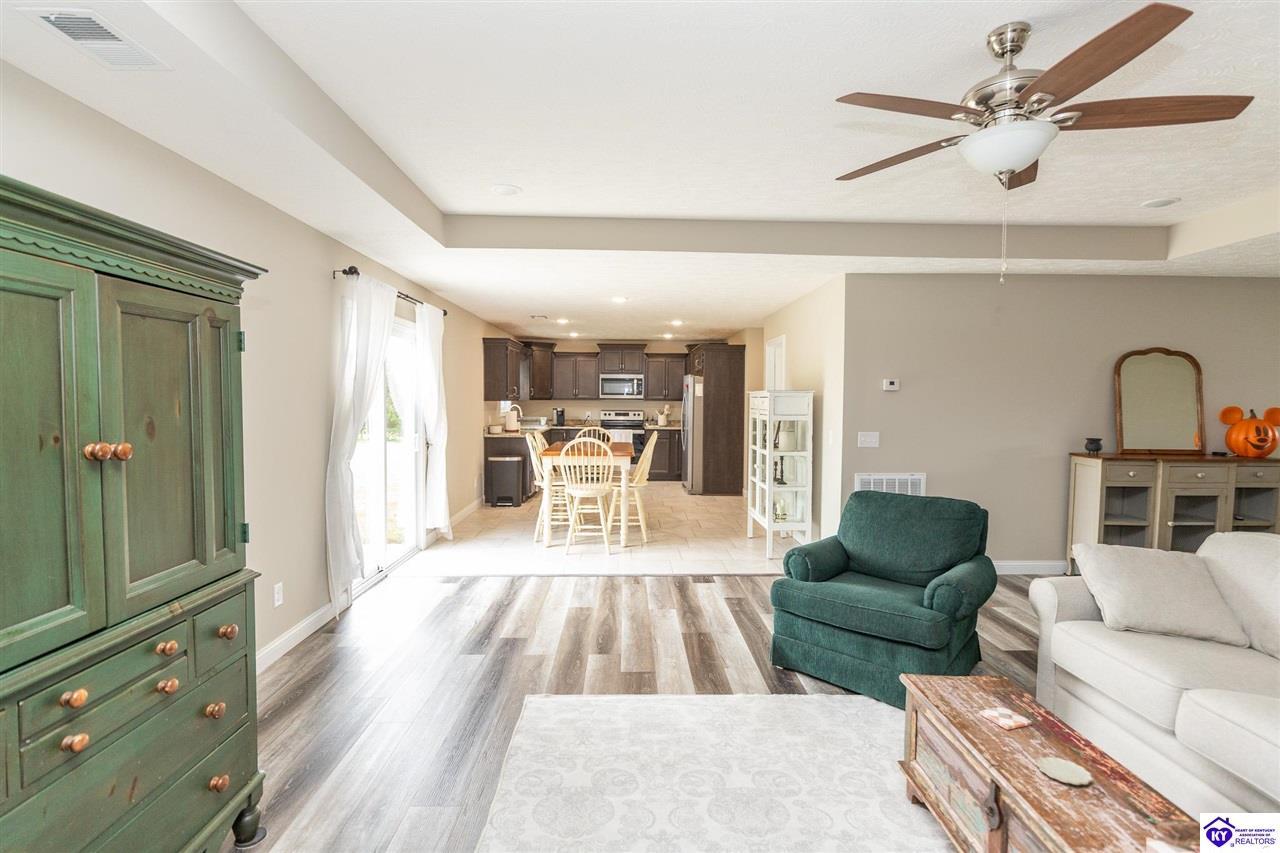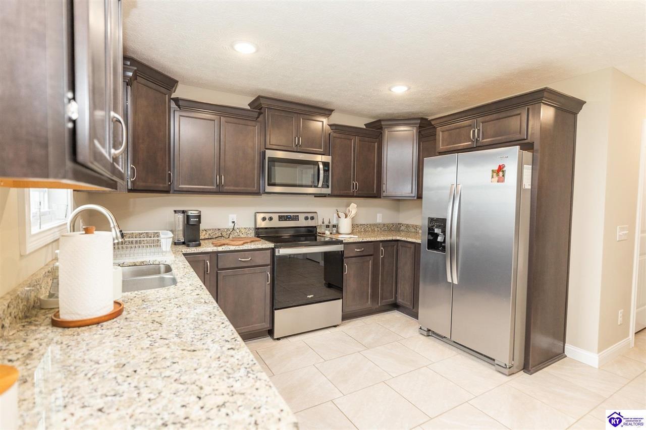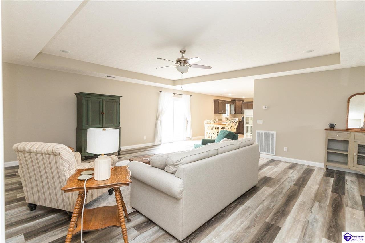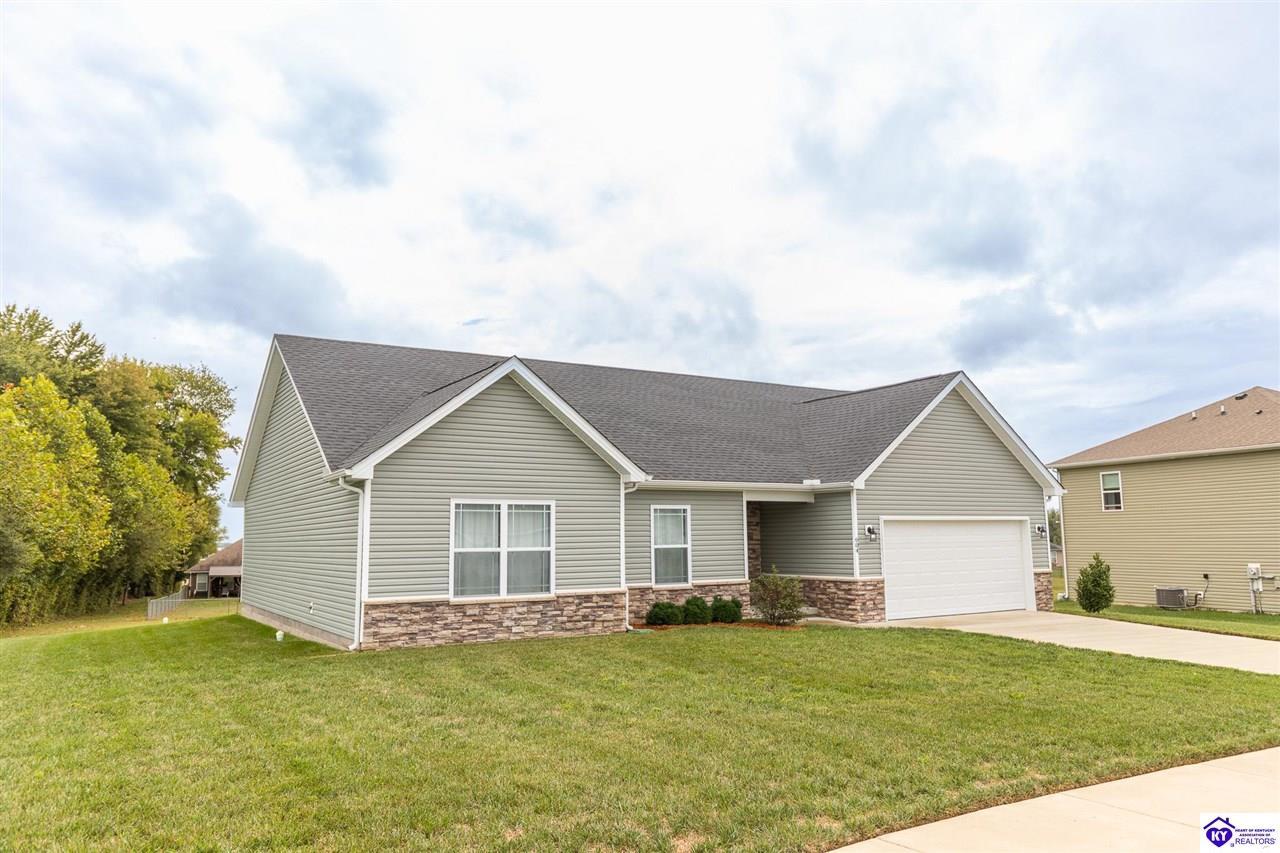 Realtor's notes: Come tour this very well maintained home in the Ashton Park subdivision. This home was built by one of our great local builders. It has 3 bedrooms and 2 full baths. The open concept living plan allows for maximum entertaining space between the living room, dining area, and kitchen. The sliding glass doors open up to the beautiful back yard for even more entertaining space on the patio. Back inside, the kitchen and baths have tile flooring while the main living area has LVP flooring. The living room has a tray ceiling with ceiling fan for an added luxury feel. The primary suite easily fits a king size bed. It also has LVP flooring, a walk in closet, and private bathroom with tile floor. The guest bedrooms are also nicely sized, and both have like new carpeting. The guest bath has tile flooring and a tub / shower combo. The neighborhood is wonderful and conveniently located near all the factories in Elizabethtown, the Blue Oval plant, a short commute to Ft. Knox, and has easy access to the interstate. The yard has also been very well maintained. Don't miss out on your opportunity to have this wonderful home. Schedule your private tour today.