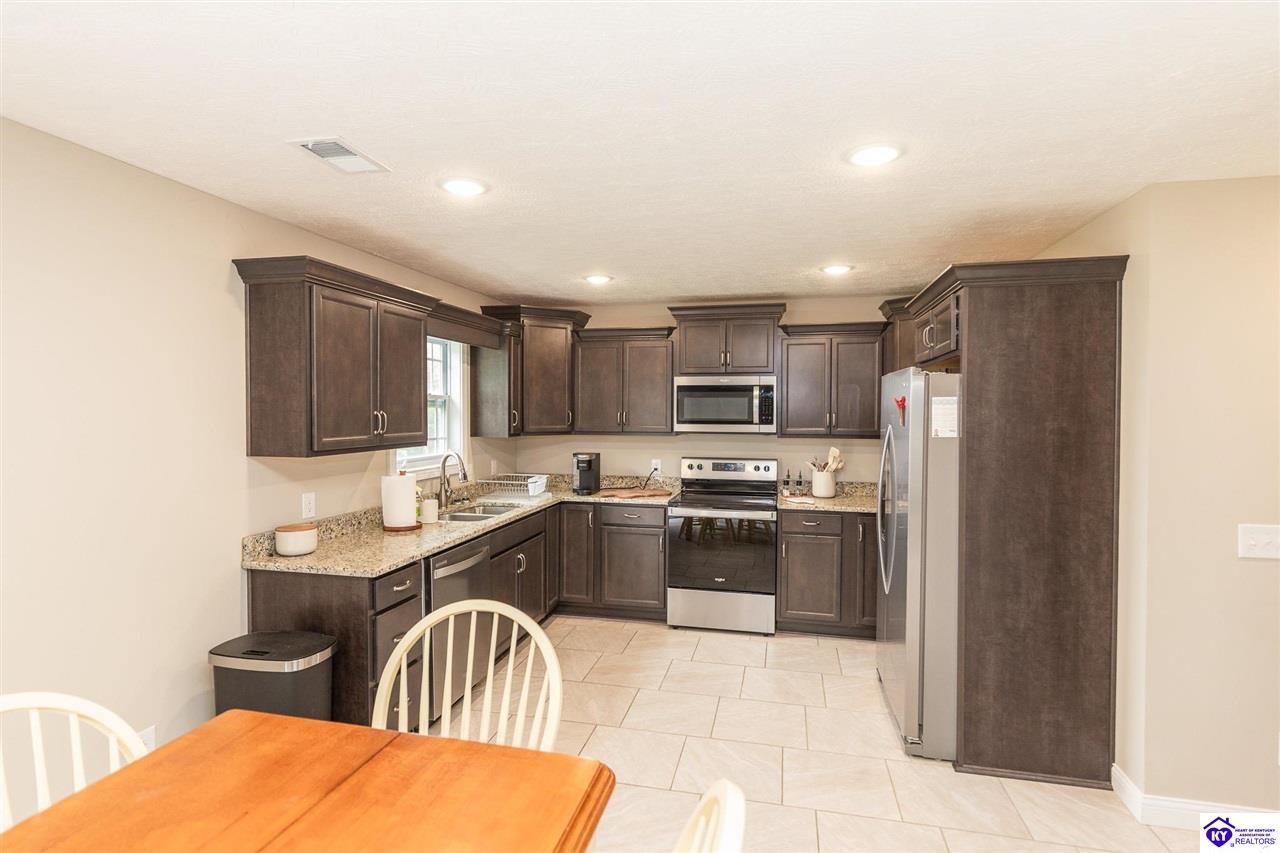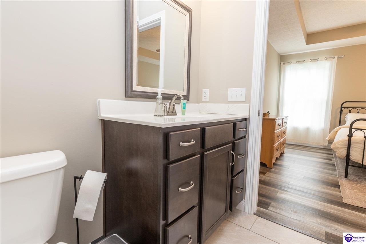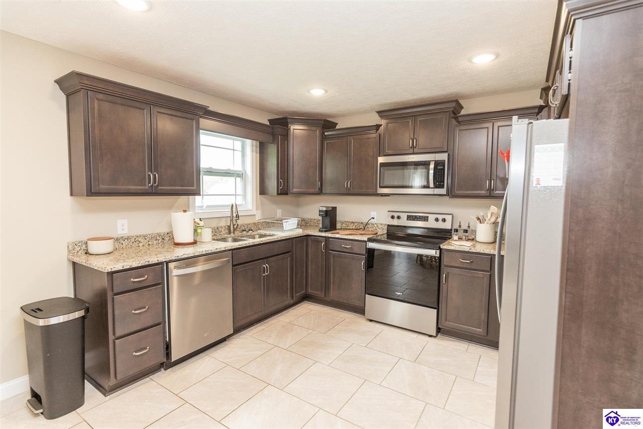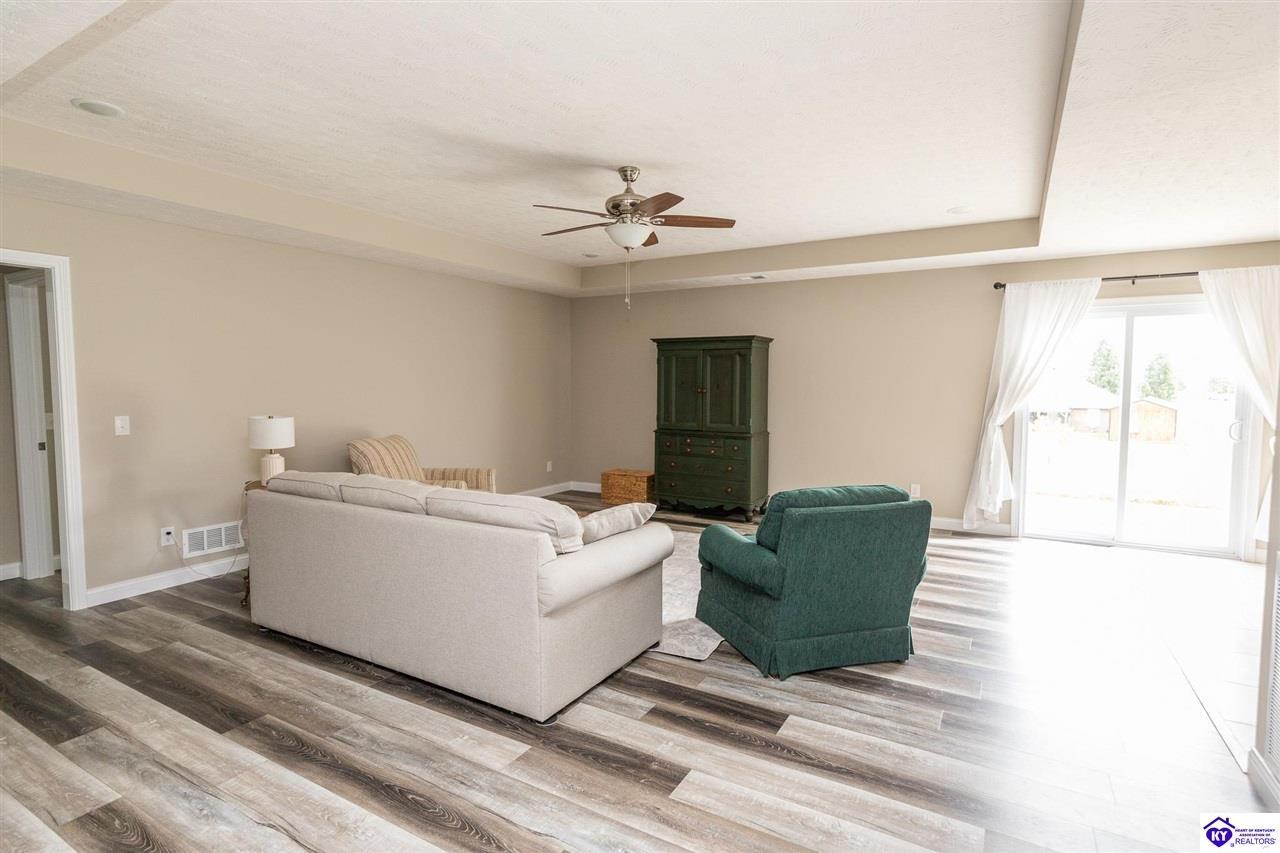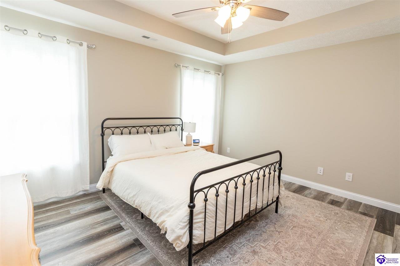Realtor's notes: Come tour this very well maintained home in the Ashton Park subdivision. This home was built by one of our great local builders. It has 3 bedrooms and 2 full baths. The open concept living plan allows for maximum entertaining space between the living room, dining area, and kitchen. The sliding glass doors open up to the beautiful back yard for even more entertaining space on the patio. Back inside, the kitchen and baths have tile flooring while the main living area has LVP flooring. The living room has a tray ceiling with ceiling fan for an added luxury feel. The primary suite easily fits a king size bed. It also has LVP flooring, a walk in closet, and private bathroom with tile floor. The guest bedrooms are also nicely sized, and both have like new carpeting. The guest bath has tile flooring and a tub / shower combo. The neighborhood is wonderful and conveniently located near all the factories in Elizabethtown, the Blue Oval plant, a short commute to Ft. Knox, and has easy access to the interstate. The yard has also been very well maintained. Don't miss out on your opportunity to have this wonderful home. Schedule your private tour today.