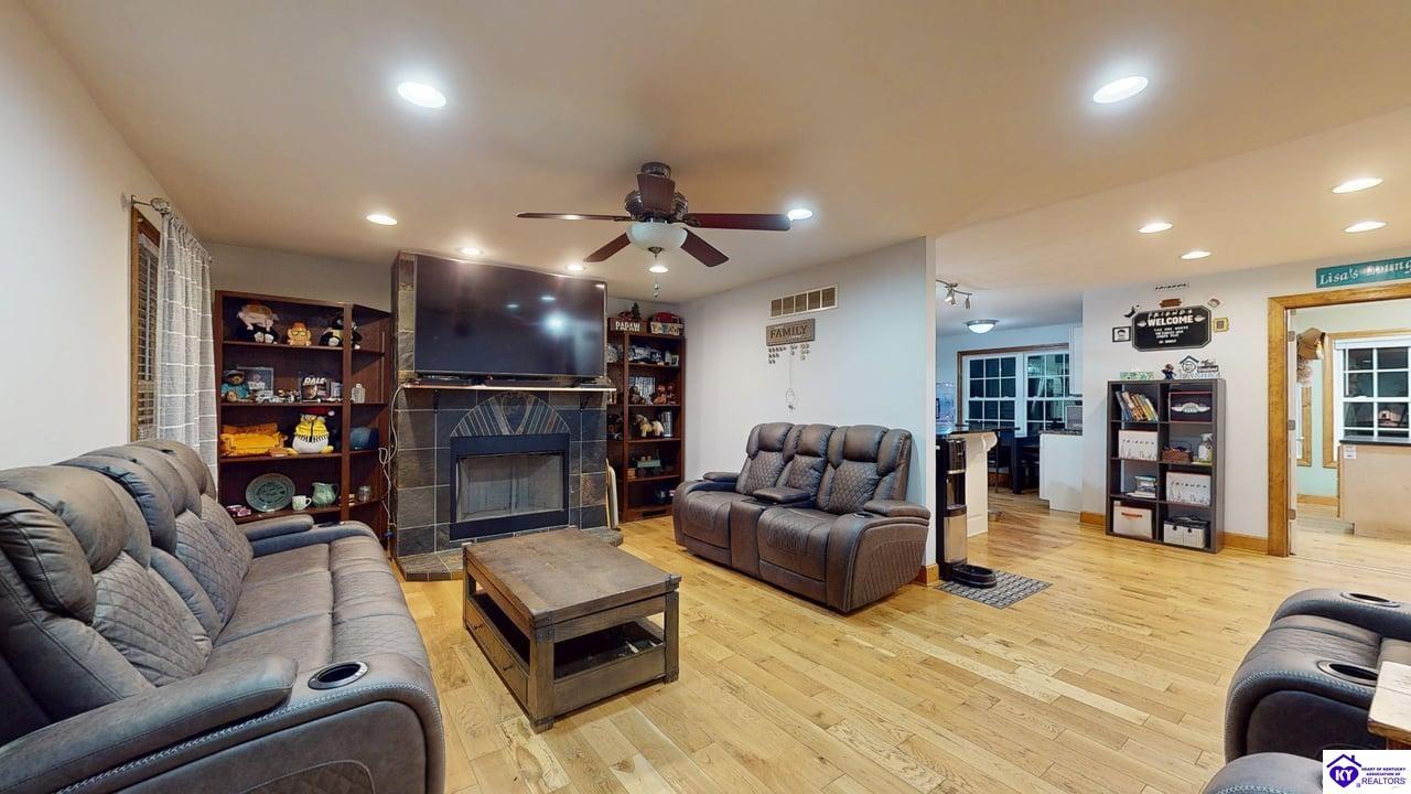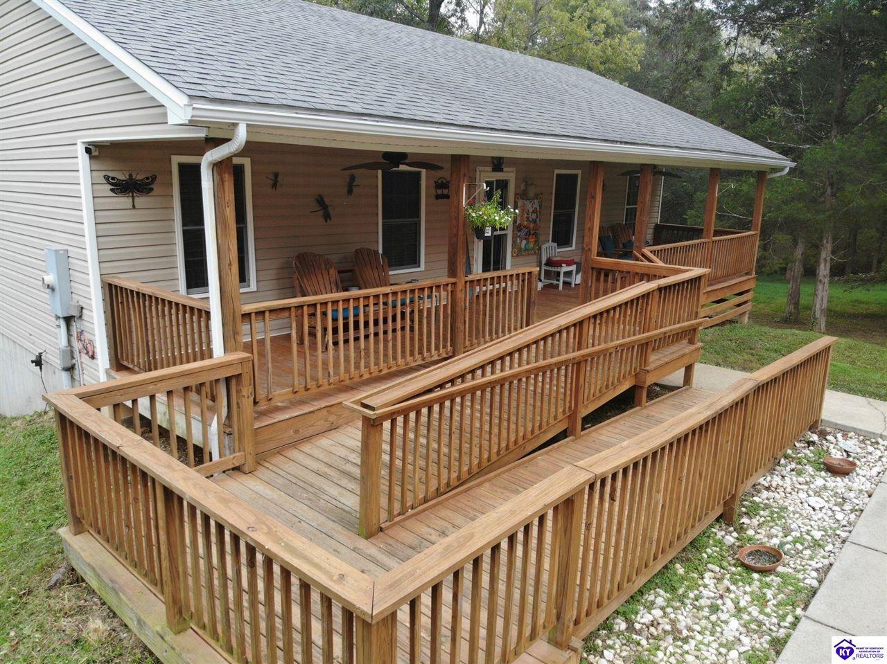 Realtor's notes: Experience country living at its finest with this stunning home in the heart of Cecilia. Step inside to an inviting living room highlighted by hardwood floors and a cozy gas fireplace. The kitchen features white maple cabinets, granite countertops, and large windows overlooking a private, tree-filled backyard complete with a tranquil pond. The spacious primary suite on the main level includes a beautifully appointed bath with a walk-in shower and double vanity. The fully finished walk-out basement offers even more living space, including a third bedroom, family room, and an additional room that could easily serve as a fourth bedroom or home office. A detached building provides extra flexibility with a garage and a studio apartment perfect for guests, hobbies, or rental income. Don't miss the opportunity to call this exceptional property home. Schedule your private showing today!
