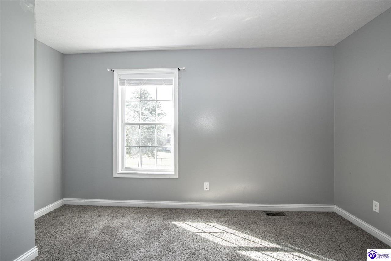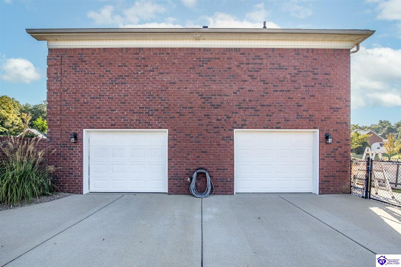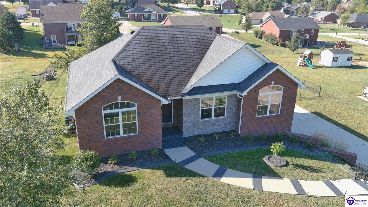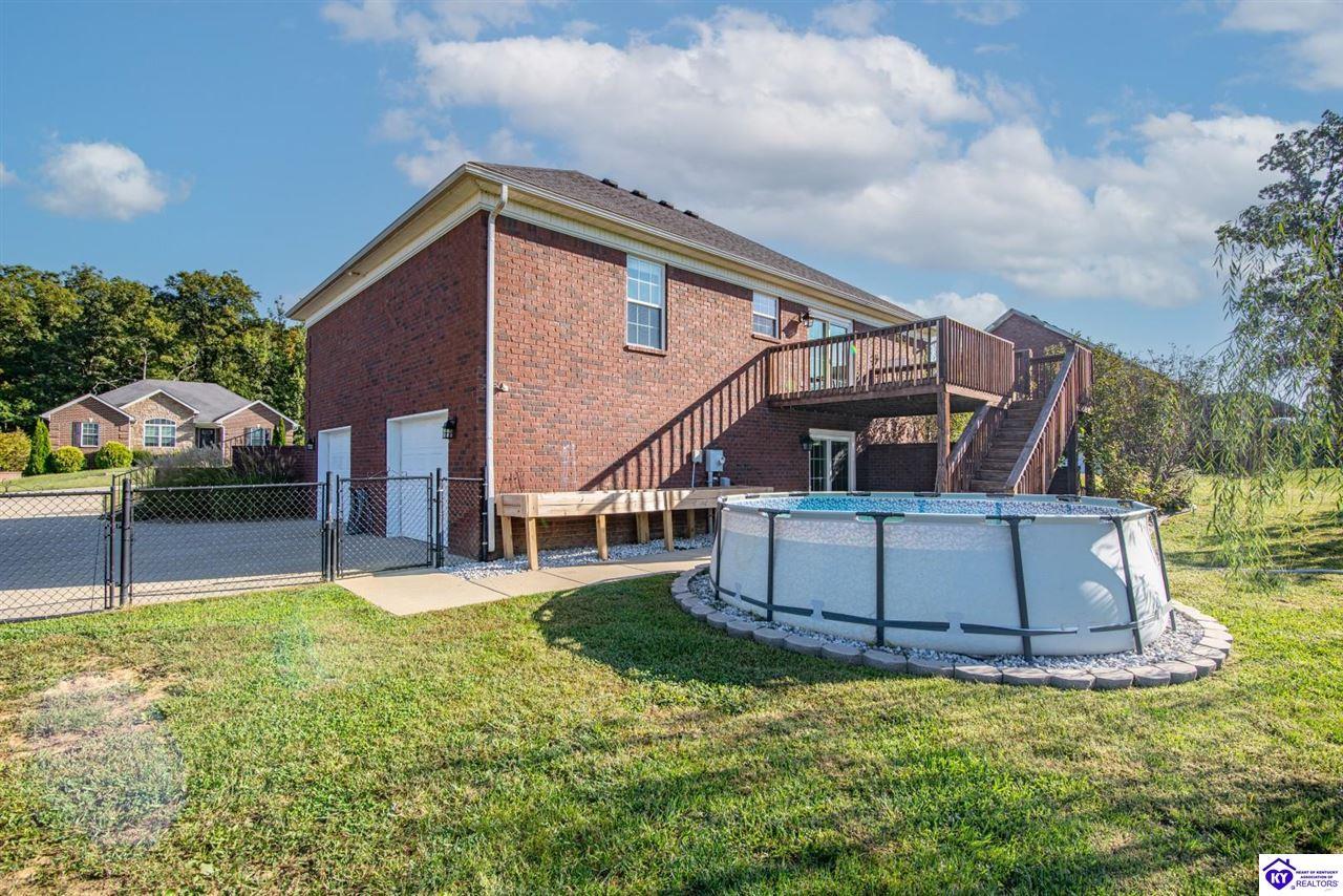 Realtor's notes: Nestled in the peaceful community of Cormans Crossing in Coxs Creek, this stunning three-bedroom, three-bathroom home welcomes you with impressive curb appeal that'll make your neighbors do a double-take. The concrete curbing and plush landscaping create a picture-perfect entrance, while the sprinkler system keeps everything green without you lifting a finger. Step inside to discover an abundance of natural light flowing through the open floor plan. Engineered hardwood flooring guides you through the main living areas, creating a seamless flow that's perfect for both everyday living and entertaining guests. The heart of the home features crisp white cabinetry that brightens the space, while cozy carpet in the bedrooms provides comfort underfoot. The primary bedroom is a true retreat with vaulted ceilings, a luxurious double sink vanity, and a jetted tub for those well-deserved relaxing moments. A separate shower and walk-in closet with built-in organizers complete the space with elegance. The finished walkout basement expands your living space with a comfortable family room and potential fourth bedroom with ensuite bathroom. Step outside, the fenced backyard is an entertainer's dream featuring a large deck, beautiful landscaping, and an above-ground pool that promises endless summer fun. This split bedroom floor plan perfectly balances comfort, style, and functionality in one of Kentucky's most charming communities.