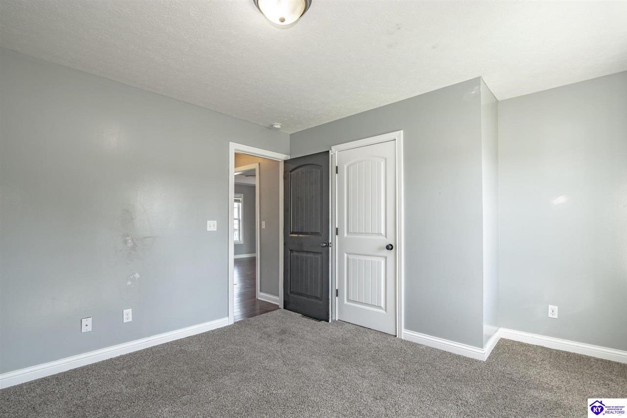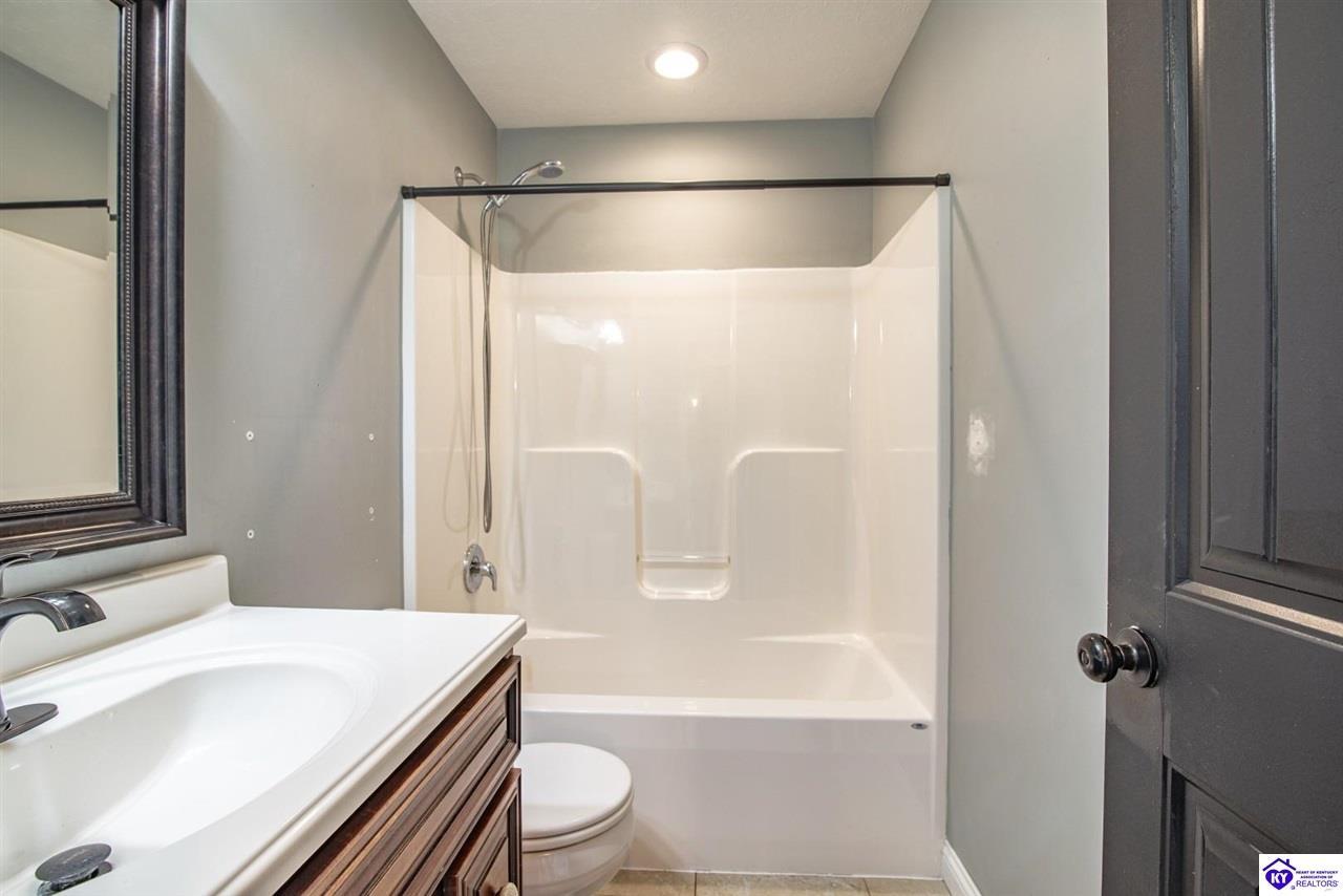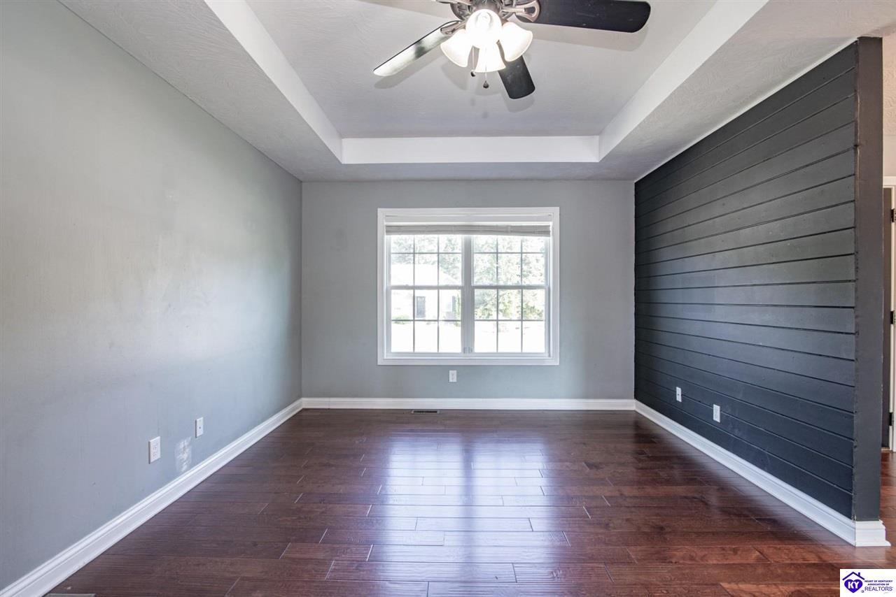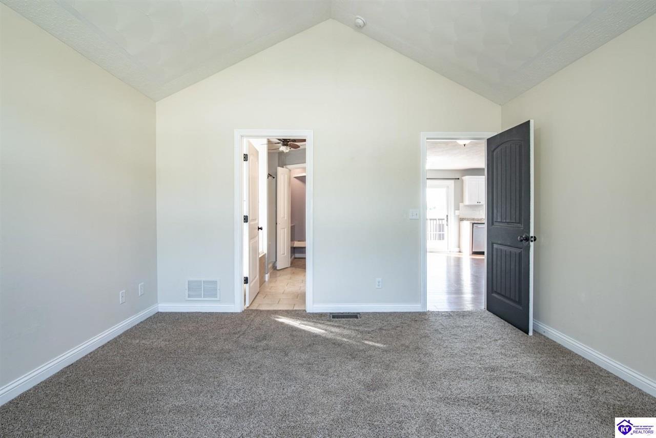 Realtor's notes: Nestled in the peaceful community of Cormans Crossing in Coxs Creek, this stunning three-bedroom, three-bathroom home welcomes you with impressive curb appeal that'll make your neighbors do a double-take. The concrete curbing and plush landscaping create a picture-perfect entrance, while the sprinkler system keeps everything green without you lifting a finger. Step inside to discover an abundance of natural light flowing through the open floor plan. Engineered hardwood flooring guides you through the main living areas, creating a seamless flow that's perfect for both everyday living and entertaining guests. The heart of the home features crisp white cabinetry that brightens the space, while cozy carpet in the bedrooms provides comfort underfoot. The primary bedroom is a true retreat with vaulted ceilings, a luxurious double sink vanity, and a jetted tub for those well-deserved relaxing moments. A separate shower and walk-in closet with built-in organizers complete the space with elegance. The finished walkout basement expands your living space with a comfortable family room and potential fourth bedroom with ensuite bathroom. Step outside, the fenced backyard is an entertainer's dream featuring a large deck, beautiful landscaping, and an above-ground pool that promises endless summer fun. This split bedroom floor plan perfectly balances comfort, style, and functionality in one of Kentucky's most charming communities.