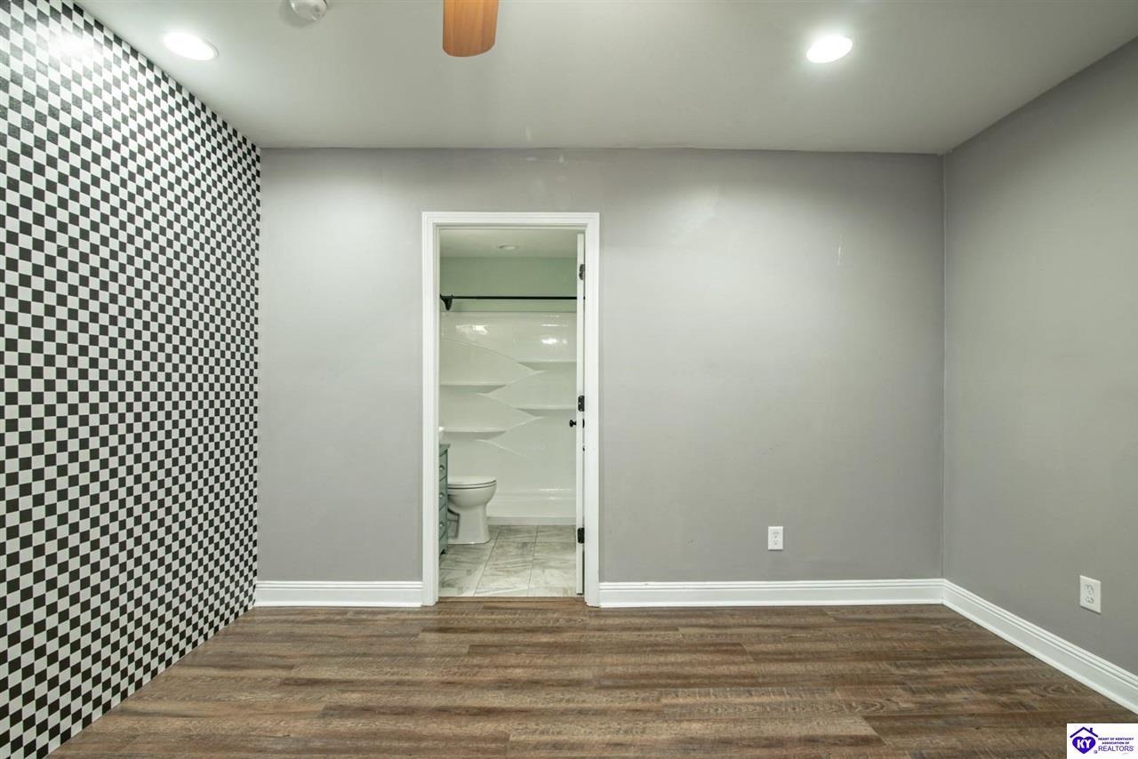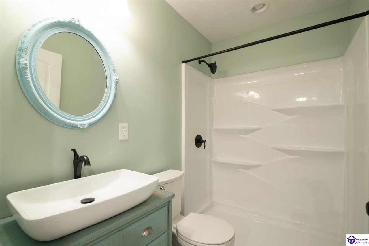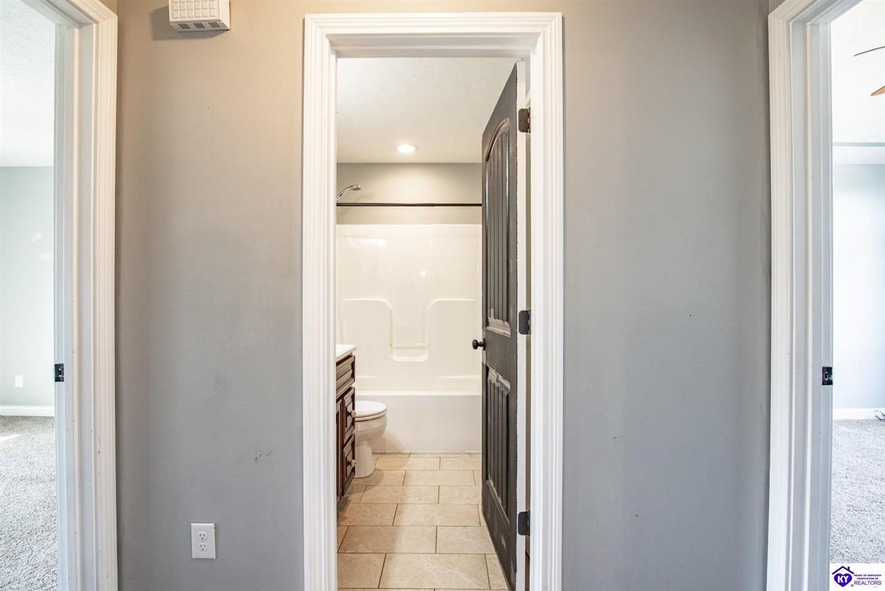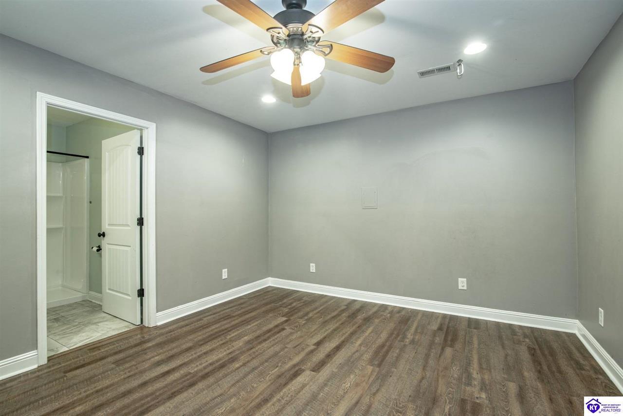 Realtor's notes: Nestled in the peaceful community of Cormans Crossing in Coxs Creek, this stunning three-bedroom, three-bathroom home welcomes you with impressive curb appeal that'll make your neighbors do a double-take. The concrete curbing and plush landscaping create a picture-perfect entrance, while the sprinkler system keeps everything green without you lifting a finger. Step inside to discover an abundance of natural light flowing through the open floor plan. Engineered hardwood flooring guides you through the main living areas, creating a seamless flow that's perfect for both everyday living and entertaining guests. The heart of the home features crisp white cabinetry that brightens the space, while cozy carpet in the bedrooms provides comfort underfoot. The primary bedroom is a true retreat with vaulted ceilings, a luxurious double sink vanity, and a jetted tub for those well-deserved relaxing moments. A separate shower and walk-in closet with built-in organizers complete the space with elegance. The finished walkout basement expands your living space with a comfortable family room and potential fourth bedroom with ensuite bathroom. Step outside, the fenced backyard is an entertainer's dream featuring a large deck, beautiful landscaping, and an above-ground pool that promises endless summer fun. This split bedroom floor plan perfectly balances comfort, style, and functionality in one of Kentucky's most charming communities.
