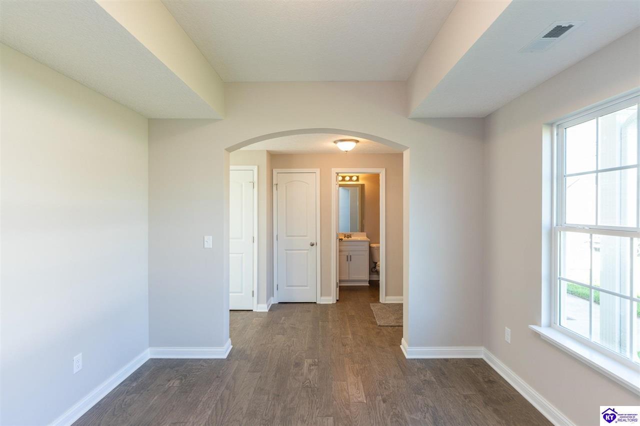 Realtor's notes: Come tour this new construction 3 bedroom, two and a half home located in Vine Grove. As you enter, there is a bonus room to the left that could be used as a formal dining room, office space, or whatever works best for you. A half bathroom is conveniently placed across the hall for guests. The living room is spacious and the open concept plan is perfect for entertaining friends and family. Stainless steel appliances and granite countertops are showcased in the kitchen. Located just off of the kitchen is the laundry area which has access to the two car garage that offers space for storage as well as two vehicles. Upstairs, there are two bedrooms with nicely sized closets as well as the first full bathroom. The large primary bedroom and bathroom features a walk-in closet and double vanity. Outside in the back yard, a small patio area is great for enjoying the peaceful surroundings. Don't miss out on this one, schedule your tour today!