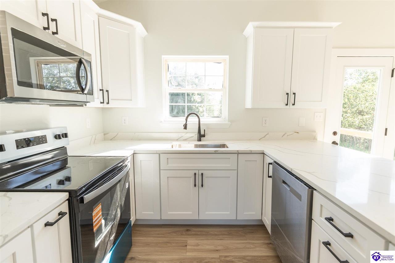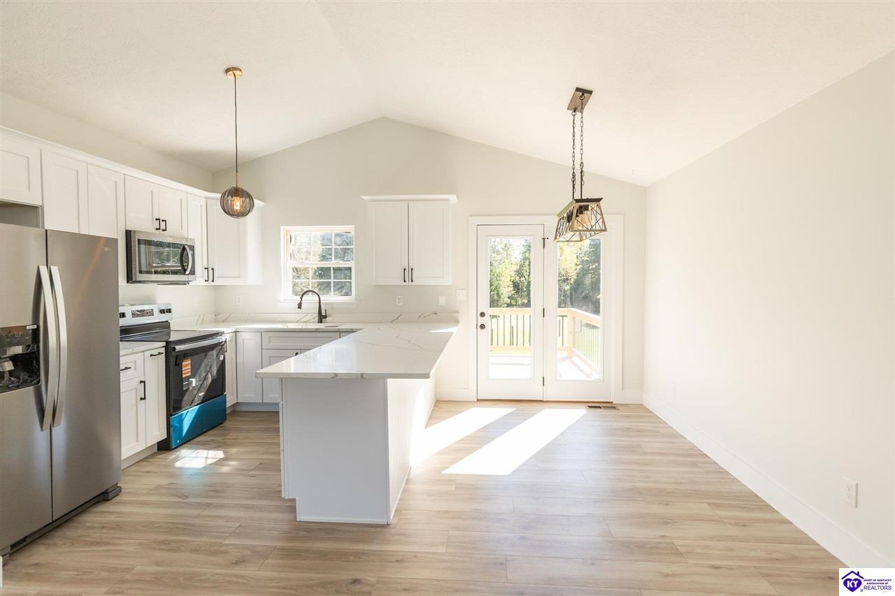 Realtor's notes: Come tour this newly remodeled 3 bedroom, 2 bathroom home on a very peaceful dead end road. This home features all new waterproof flooring in all the main living areas and bedrooms. The light fixtures are also new throughout. The kitchen has all new stainless steel appliances, new cabinets, quartz counter tops, and a pantry. It is open to both the living and dining areas. Down the hall is the large primary suite complete with access to the bathroom and a walk in closet. The second bedroom on the main floor is also nicely sized and has a ceiling fan. Downstairs also has all new waterproof flooring throughout. The 3rd bedroom is downstairs for added privacy. The basement includes a second living area with walk out access to the back yard. There is another full bathroom and the laundry room is in the basement as well. Outside, there is a full acre of land and a beautiful back yard. The deck and vinyl siding are brand new and the roof is just a few years old. You won't find too many completely remodeled homes in this price range with an acre of land and this much privacy very often. Schedule your showing today before it is gone.