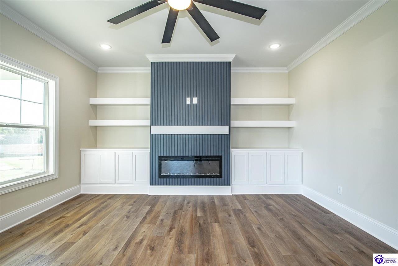 Realtor's notes: This beautiful new construction home will be showcased in the local Homebuilder Association's Parade of Homes. The main floor includes a primary suite with a tiled shower and a spacious walk-in closet that connects to the laundry room, a second bedroom or office, a large open foyer, crown molding, an expansive kitchen with a walk-in pantry, Walter's Cabinetry, quartz countertops, a full appliance package, and a living area with custom built-ins around the fireplace, plus another full bathroom. Upstairs features a loft/rec room and three additional bedrooms, each with walk-in closets. A covered front porch and a large covered patio complete this custom-designed home with high-end finishes.
