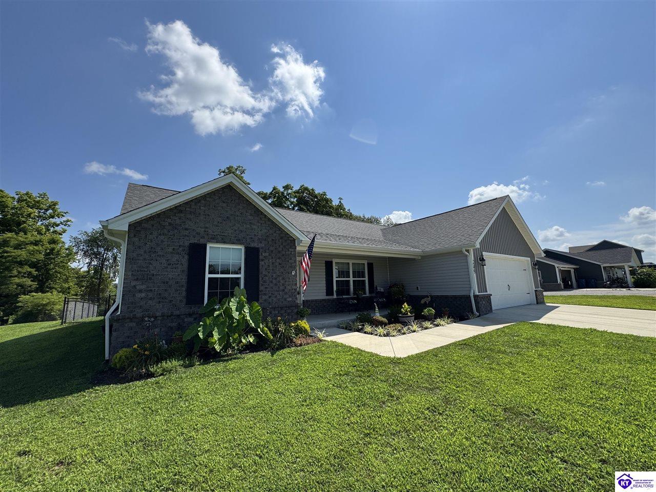 Directions: From Brandenburg Bypass TL onto HWY 710. Go to stop sign and go straight. TL onto help dr about .2 miles from stop and home will be on hth left. Sign posted.