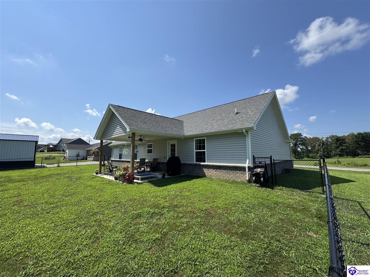 Realtor's notes: This like-new home, built in 2023, perfectly blends modern design, comfort, and space — all nestled on a rare 1.2-acre lot in the desirable Salem Meadows Subdivision. Featuring 3 bedrooms and 2 full baths, this home offers nearly 1,500 sq ft of open-concept living space designed for both style and functionality. The spacious living area flows seamlessly into the modern kitchen and dining space — ideal for entertaining or enjoying family time. Step outside to enjoy a covered front porch, back patio, and a fenced-in backyard — providing plenty of room to relax, play, or host summer gatherings. The attached 2-car garage adds convenience and additional storage. Every detail of this home has been thoughtfully designed and tastefully updated, making it a blank canvas ready for its new owners. Experience the comfort of new construction without the wait — this one truly has it all!