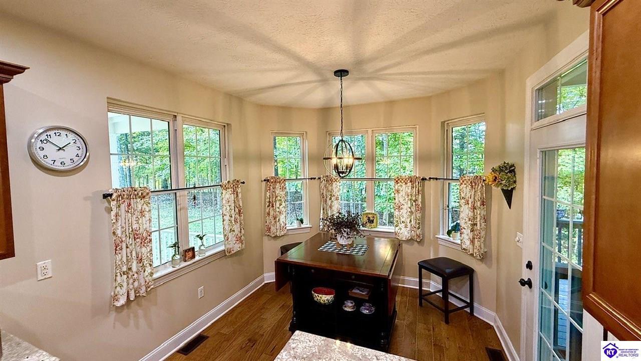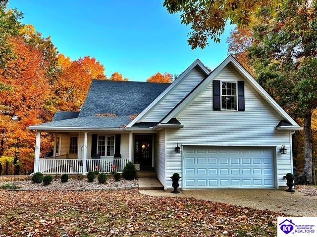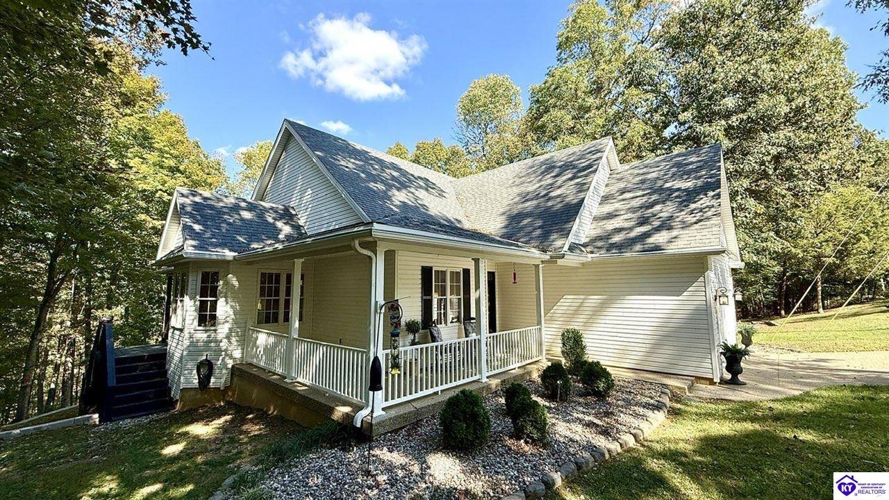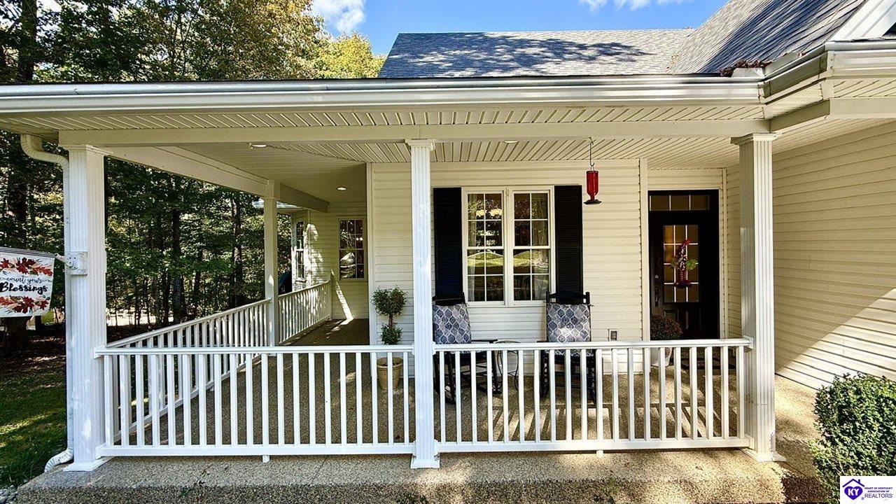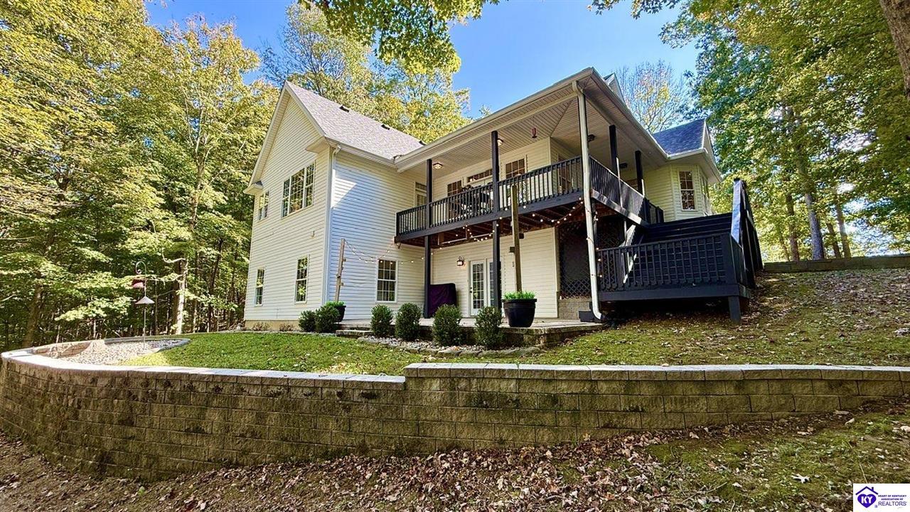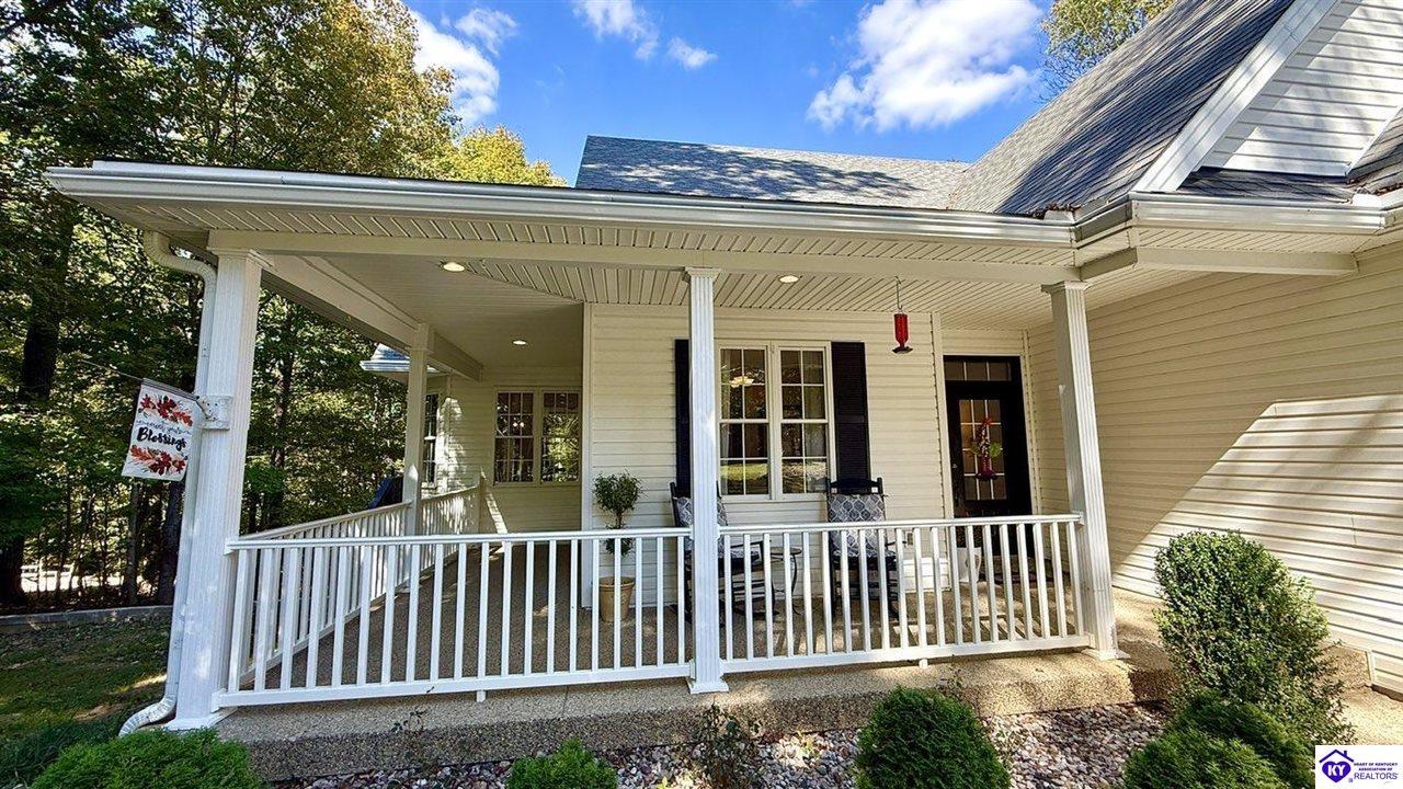 Realtor's notes: Welcome to 355 Sunnyview Rd, a beautifully cared-for 1.5-story home with 4 bedrooms, 3 baths, and a finished walkout basement, offering over 3,700 finished sq ft on a private .74-acre double lot in the heart of Doe Valley. You'll love the seasonal lake views, wraparound deck, and peaceful wooded setting that make this home feel like a year-round retreat. Step inside to find new engineered hardwood floors, a granite kitchen with maple cabinetry and stainless-steel appliances, and a vaulted great room that opens to the deck perfect for relaxing or entertaining. The spacious primary suite also has deck access and a luxury bath with marble vanities, soaking tub, and tiled shower. Downstairs, the finished walkout basement features a cozy stone wood-burning fireplace, a full bath, and a patio that's ideal for gatherings with family and friends. Fresh paint and thoughtful updates throughout mean this home is truly move-in ready. Enjoy all the Doe Valley amenities: golf course, marina, pool, tennis courts, playground, and 24-hour gated security resort-style living just minutes from Brandenburg. Settle in and make this your home just in time for the holidays!