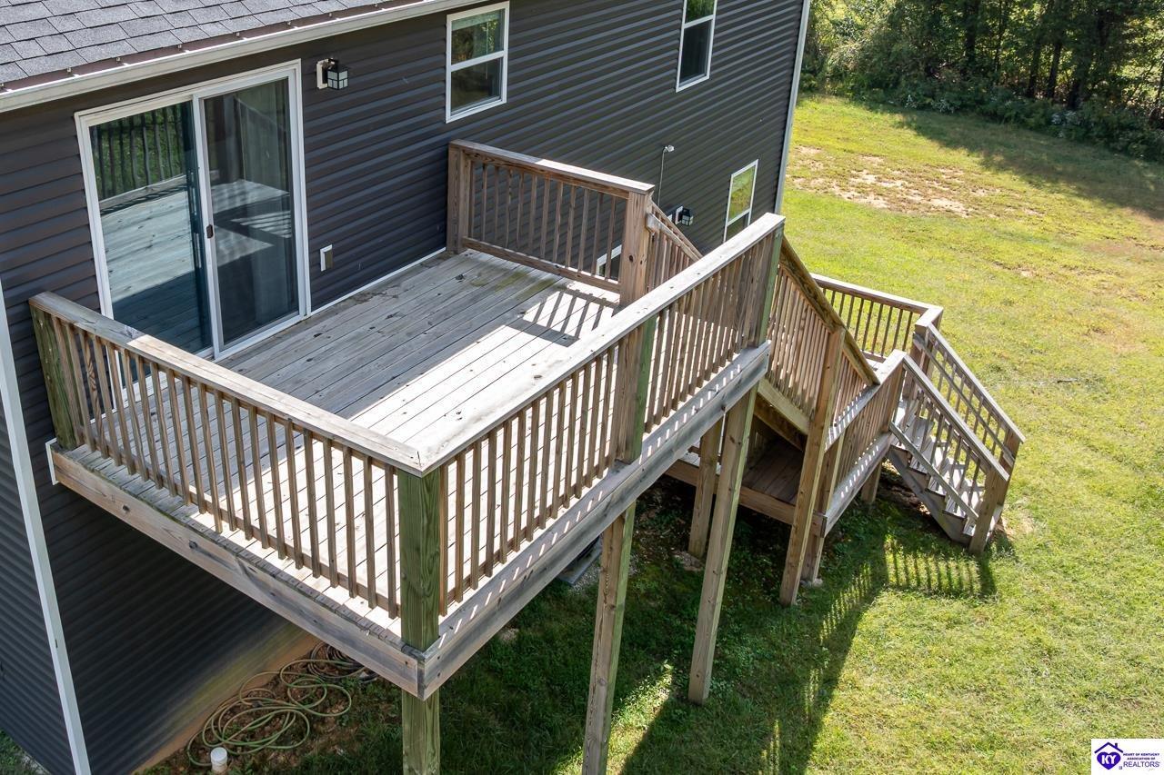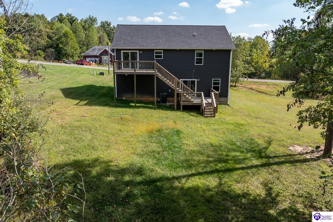 Realtor's notes: This well-kept home offers comfort, space, and a beautiful setting on a generous .78-acre lot. Featuring 3 bedrooms, 2.5 baths, and a 2-car attached garage, this property provides the perfect blend of functionality and charm. The main level welcomes you with an open-concept living area that flows seamlessly into the dining space and kitchen, ideal for everyday living and entertaining. Down the hallway, you’ll find a spacious primary bedroom with a full bath and two closets. The lower level includes two additional bedrooms and another full bath, offering flexibility for guests, family, or a home office. Enjoy the outdoors with a large, private yard surrounded by mature trees and two decks perfect for relaxing or hosting gatherings. This Rineyville gem is move-in ready and waiting for its next owner!