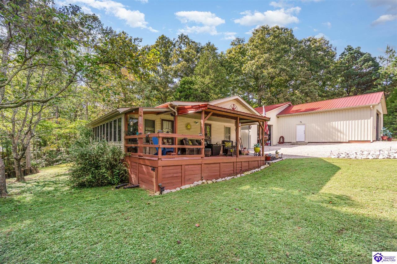 Realtor's notes: Discover lakeside living at 33 Elmwood Dr in Clarkson, KY. This fully furnished 2 bed, 1 bath home sits on 1.7 shaded acres and is designed for lake enjoyment, privacy, and flexibility. Inside, the cozy layout is anchored by a large sunroom, perfect for year-round enjoyment and versatile enough to serve as extra living or guest space. Outdoors, you'll love the dock in a no-wake zone with COE approved transfer, giving you calm-water access for swimming, fishing, and kayaking. A short golf cart ride leads directly to the boat ramp, making lake access simple and convenient. Adding more value, the property includes a large detached pole barn with a fully customizable loft and overhead storage, ideal for hobbies, boat/equipment storage, or future guest space. With mature shade trees, turn-key furnishings, and could potentially be used for Airbnb, this home is ready for its next chapter. At 33 Elmwood Dr, you'll enjoy a rare blend of acreage, convenience, and lake lifestyle. This home is being offered turn-key with most furniture included, making it ready to enjoy from day one. Please note that personal memorabilia and certain items in the garage do not convey with the property. Some items may be available for separate purchase or negotiation. Please check with your agent for details. Dock transfer with COE approval