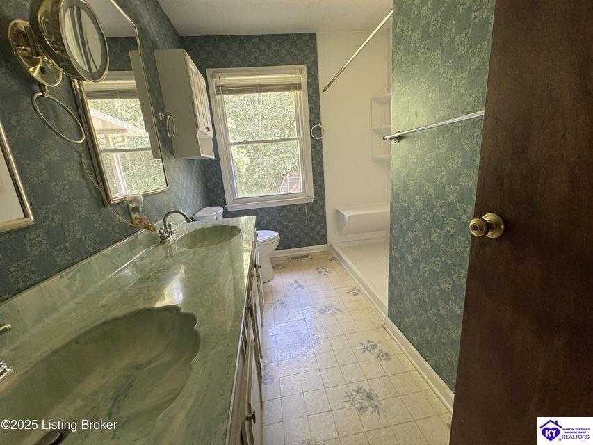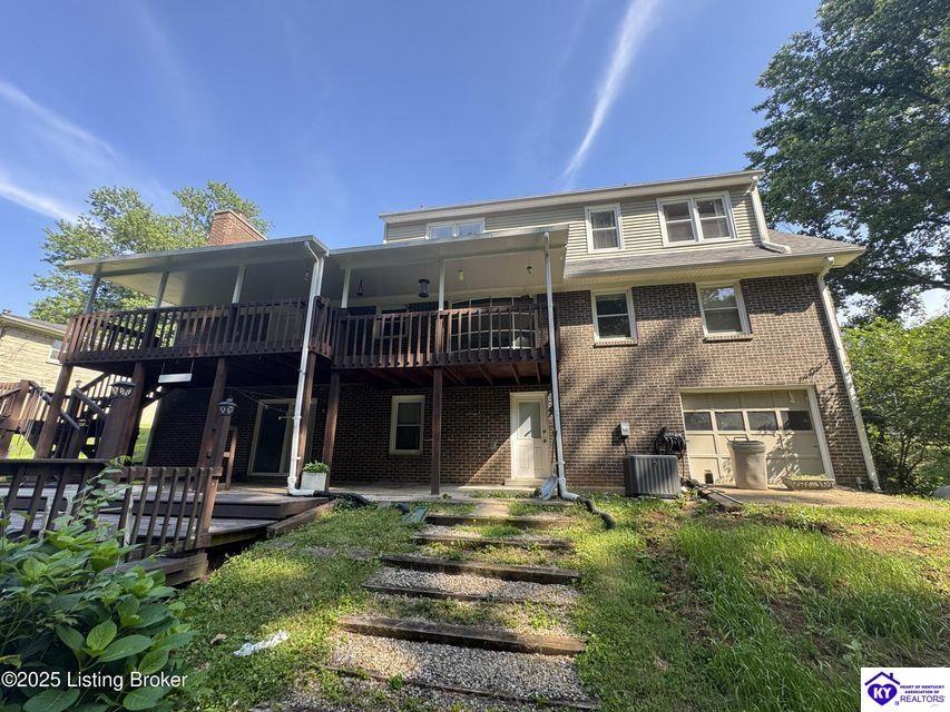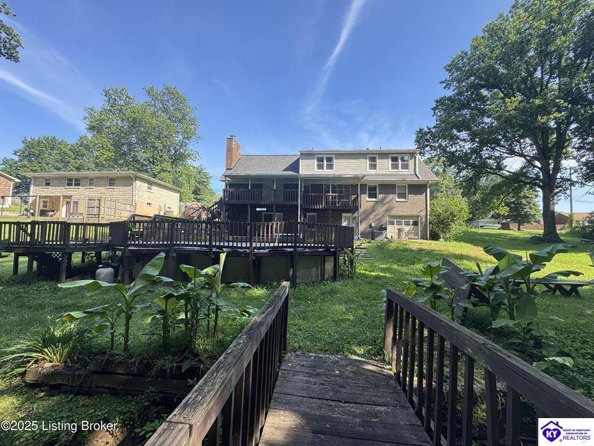 Realtor's notes: Sellers are motivated! Make your appointment today. Welcome to this spacious 2-story home on a picturesque 1-acre lot in Bullitt County. With over 2,500 sq. ft. of living space, this 4-bedroom, 2.5-bath home offers comfort, charm, and incredible potential. The main level boasts a formal living room, a dining room with a bay window overlooking the park-like backyard, and a kitchen that opens to a large family room with a cozy wood-burning stove. French doors lead to the back deck, perfect for outdoor entertaining. Two main-level bedrooms provide flexibility for guests, a home office, or multi-generational living. Upstairs, you'll find two additional bedrooms, a full bath, and a spacious loft overlooking the family room--ideal as a playroom, den, or flex space. The finished walkout basement adds even more living area with a generous bonus room, second wood-burning fireplace, half bath, and access to an additional garage bay--perfect for storage, a workshop, or hobbies. Outside, enjoy mature trees, a peaceful creek with a charming bridge, and an outbuilding with endless possibilities. A brand-new septic tank offers peace of mind. With a little TLC, this property could be your personal oasis. Conveniently located near shopping, dining, and I-265, this unique home combines space, privacy, and value. Don't miss your chance to own this slice of paradise!