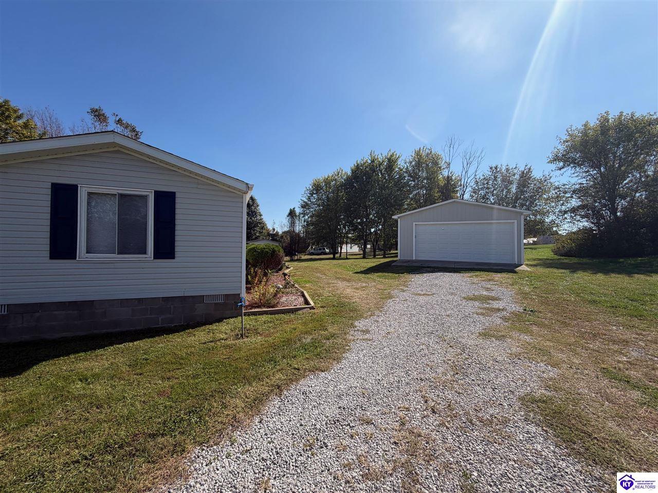 Realtor's notes: Don't miss this beautifully updated 3-bedroom, 2-bath mobile home situated on a spacious 2.13-acre lot. This move-in ready home features fresh interior paint and brand-new flooring throughout, giving it a clean, modern feel. Enjoy the convenience of a 2-car detached garage—perfect for parking, storage, or a workshop. The open layout offers comfortable living and dining areas, a functional kitchen, and a primary suite with an en-suite bath. Plenty of outdoor space for gardening, recreation, or simply enjoying peaceful country living. Whether you're looking for your first home or downsizing with room to breathe, this property has it all!