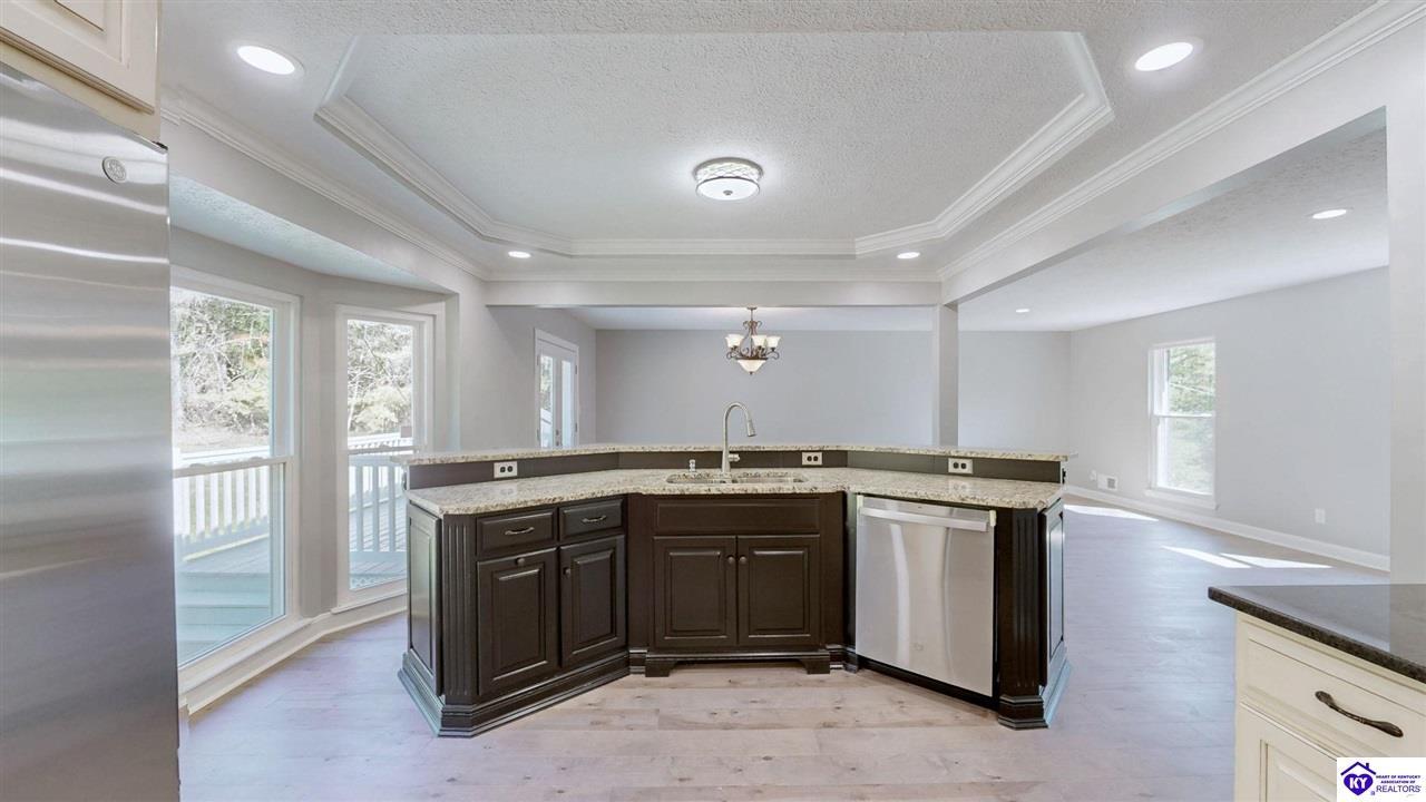 Realtor's notes: Welcome to your new sanctuary! Nestled in the heart of the peaceful and vibrant Countryside of Lebanon Junction, this delightful 4-bedroom, 3-bathroom home offers the perfect blend of modern comfort and classic charm. Only 29 minutes from Louisville, this home has had a complete renovation and sits on 10 acres! From the moment you step through the front door, you'll be greeted by an abundance of natural light and an open floor plan that invites warmth and togetherness. The heart of this home is the expansive living room, The seamless flow into the dining area makes entertaining family and friends a breeze. Cook up a storm in the beautifully updated kitchen, featuring stainless steel appliances, granite countertops, and an oversized island that not only provides ample prep space but also serves as a perfect gathering spot. The stylish cabinetry and tile backsplash add a touch of elegance that any culinary enthusiast will appreciate. Escape to your luxurious Primary suite, a true retreat boasting a walk-in closet and an en-suite bathroom with dual sinks and a dual shower. It's the perfect spot to unwind after a long day. Need a home office or extra playroom? The versatile basement layout includes an additional area that can be tailored to your lifestyle. Whether it's a library, a home gym, or a guest room, the possibilities are endless! Step outside to your private backyard paradise, where an expansive deck awaits. Ideal for summer barbecues or evening stargazing, the beautifully landscaped yard provides plenty of space for gardening, play, or simply relaxing in the sun. Don't miss out on the opportunity to call this stunning house your home. With its perfect blend of style, comfort, and community, it's not just a property; it's a lifestyle. Schedule your private showing today and step into your dream home!
