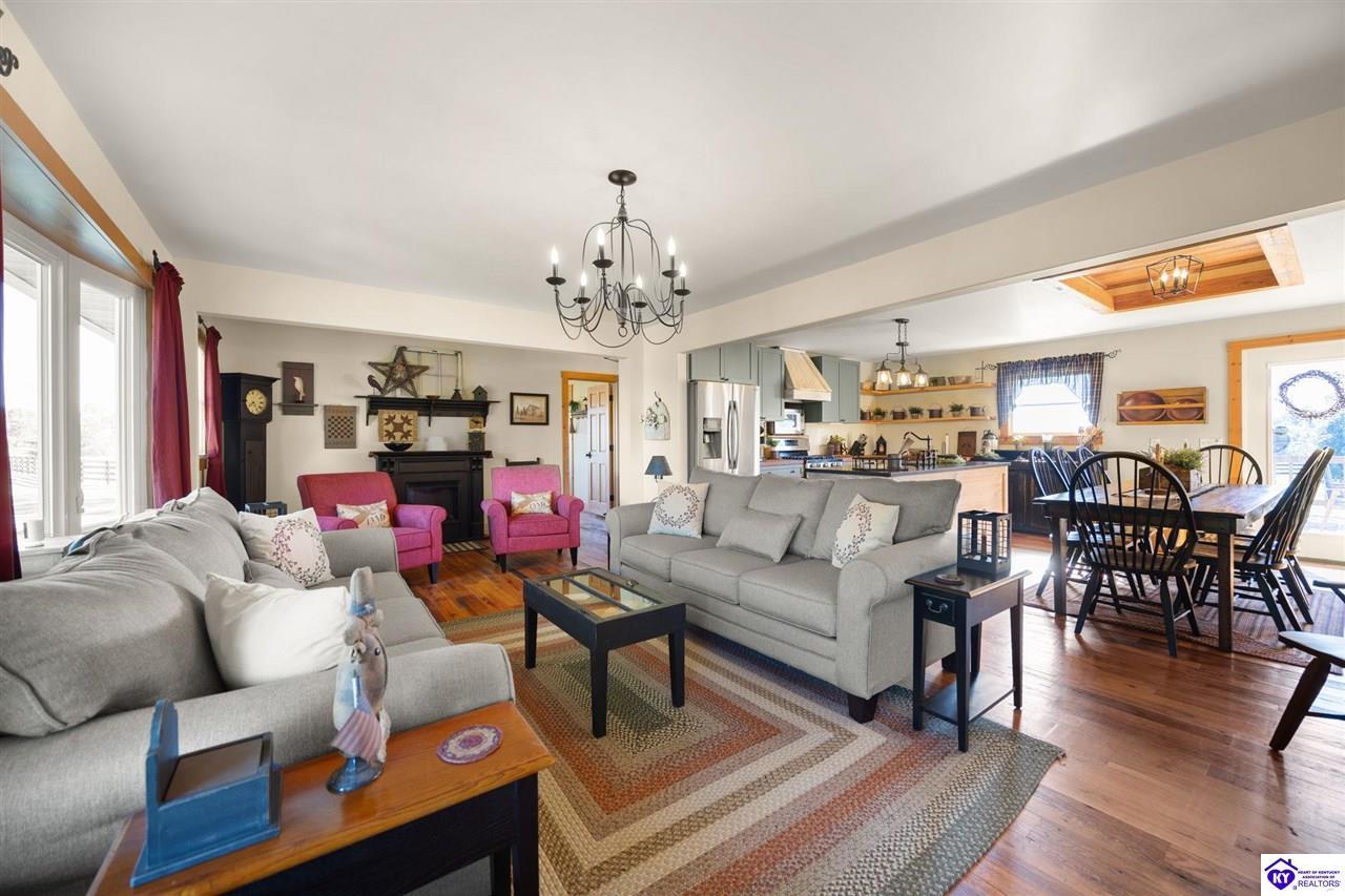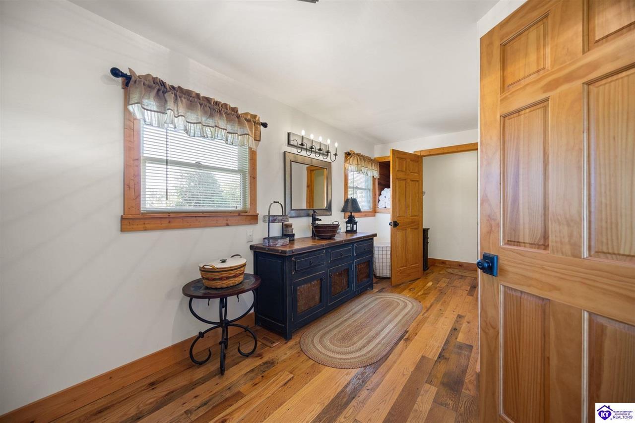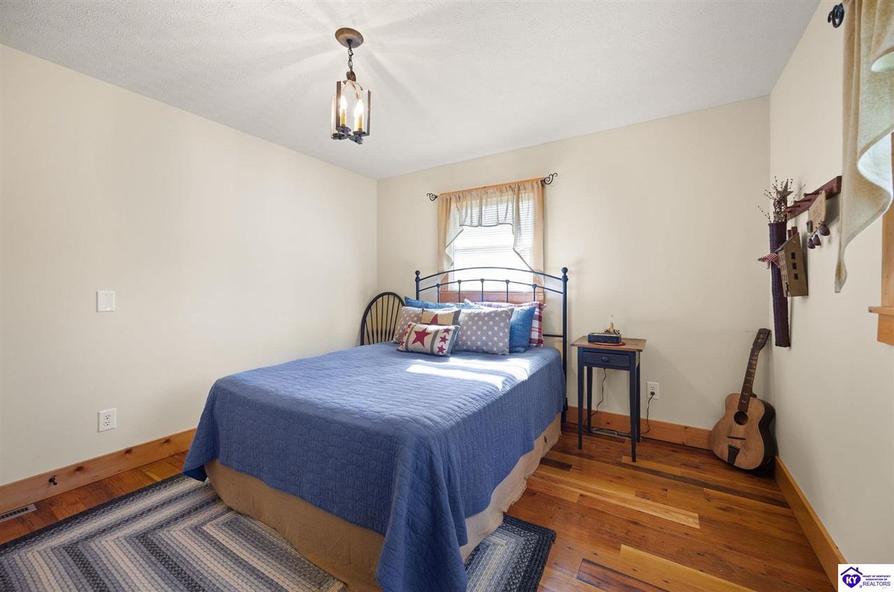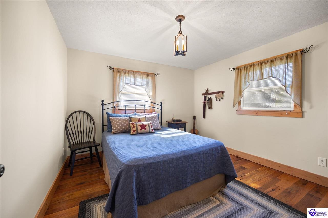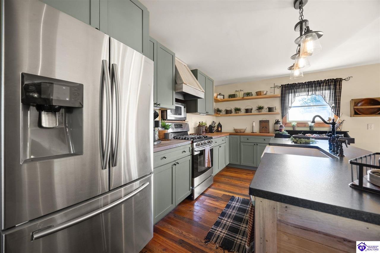 Realtor's notes: Imagine waking up to the peaceful sounds of nature, surrounded by picturesque landscapes. This stunning country home offers the perfect blend of rustic charm and modern comfort, providing that primitive, at-home feel you've been dreaming of. Step inside and be greeted by warm, wide-plank wood floors and an inviting atmosphere. The spacious kitchen, featuring lovely sage green cabinetry and rich wooden countertops, is a true chef's delight, perfect for gathering with loved ones. This serene sanctuary is designed for space and privacy: • Upstairs: Discover a peaceful haven with 3 generous bedrooms and 2 full bathrooms, including a primary suite that is a true escape. • Downstairs: Enjoy the flexibility of 2 additional bedrooms and another full bathroom, along with a convenient laundry room. With 5 total bedrooms and 3 full baths, there's room for everyone to spread out. The expansive, well-maintained yard and large detached garage and barn space complete this incredible offering. It's more than a house—it's your chance to embrace the simple, serene life!