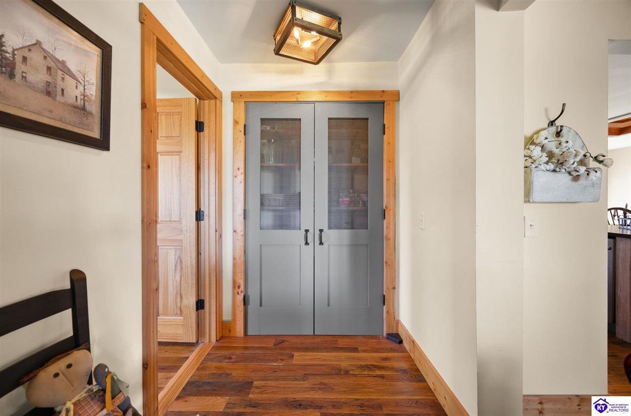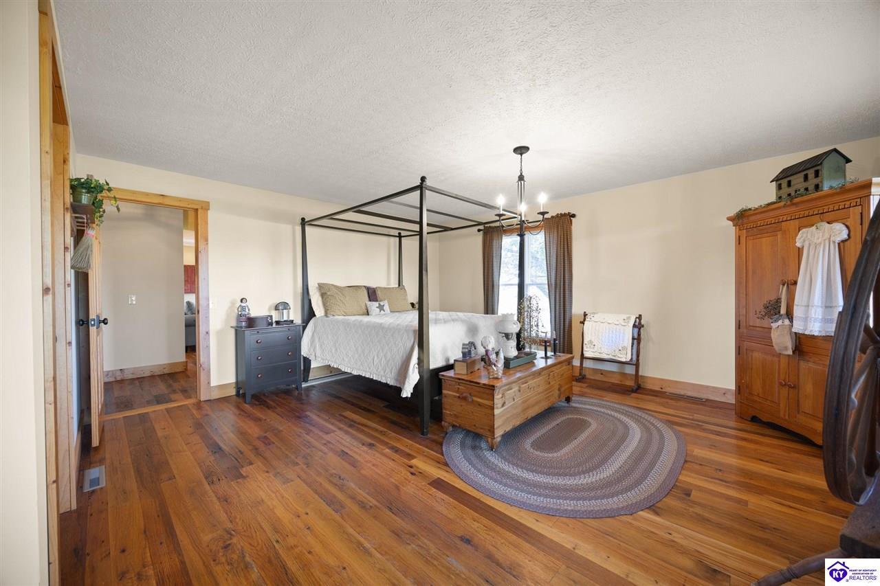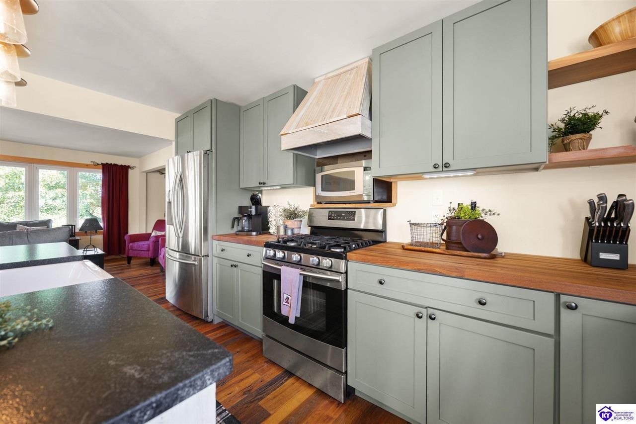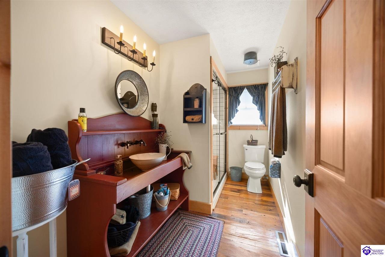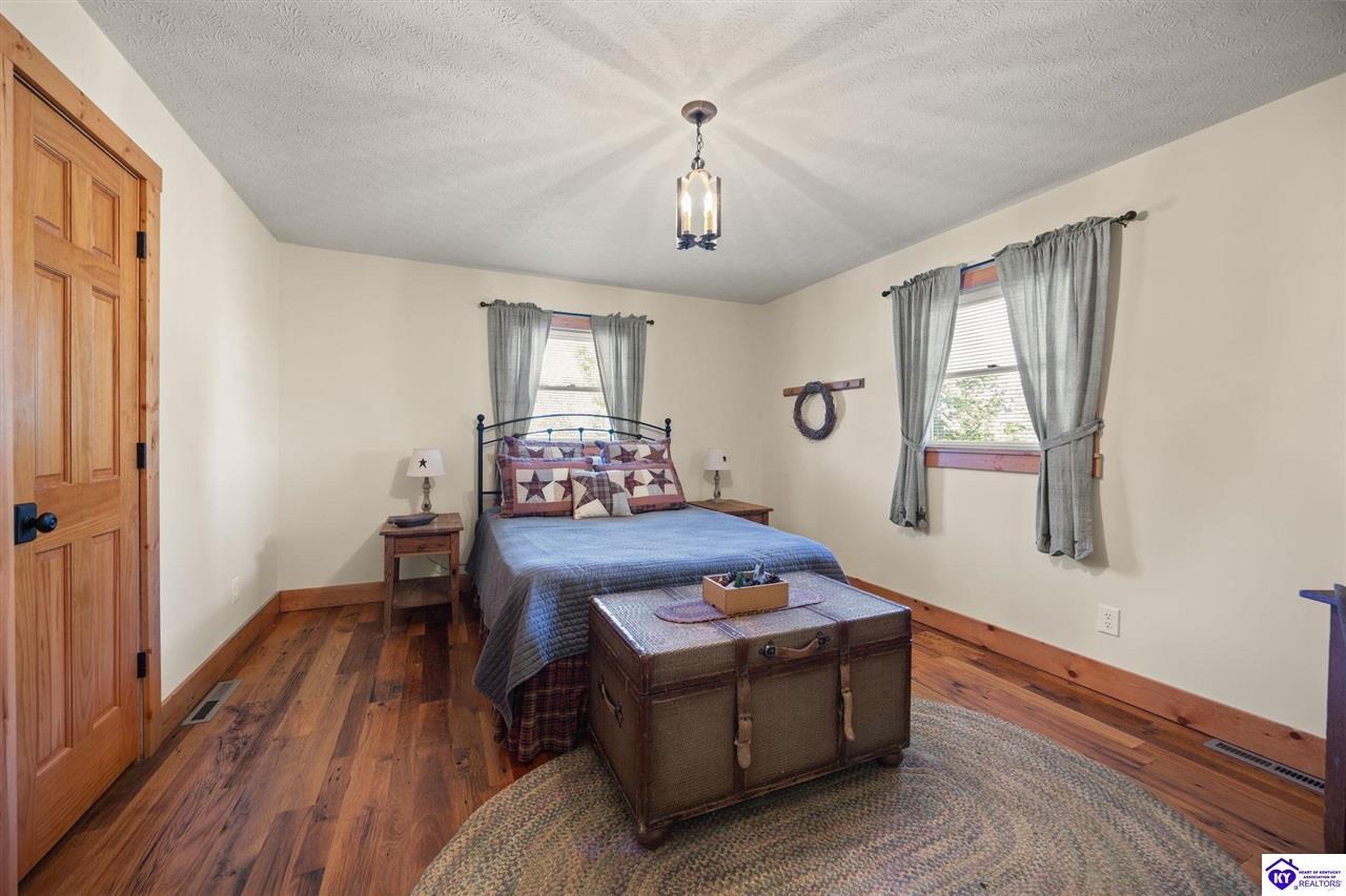 Realtor's notes: Imagine waking up to the peaceful sounds of nature, surrounded by picturesque landscapes. This stunning country home offers the perfect blend of rustic charm and modern comfort, providing that primitive, at-home feel you've been dreaming of. Step inside and be greeted by warm, wide-plank wood floors and an inviting atmosphere. The spacious kitchen, featuring lovely sage green cabinetry and rich wooden countertops, is a true chef's delight, perfect for gathering with loved ones. This serene sanctuary is designed for space and privacy: • Upstairs: Discover a peaceful haven with 3 generous bedrooms and 2 full bathrooms, including a primary suite that is a true escape. • Downstairs: Enjoy the flexibility of 2 additional bedrooms and another full bathroom, along with a convenient laundry room. With 5 total bedrooms and 3 full baths, there's room for everyone to spread out. The expansive, well-maintained yard and large detached garage and barn space complete this incredible offering. It's more than a house—it's your chance to embrace the simple, serene life!