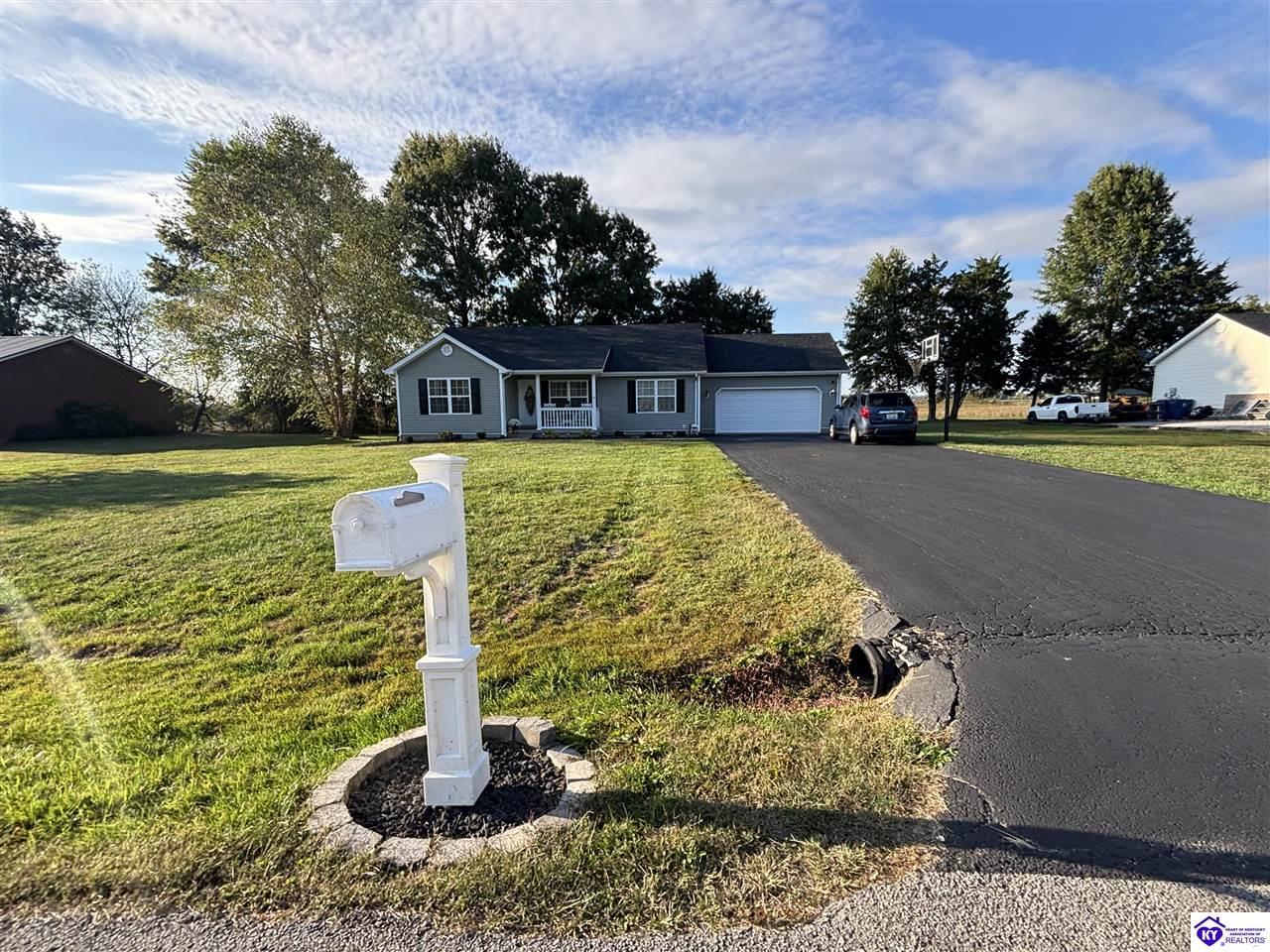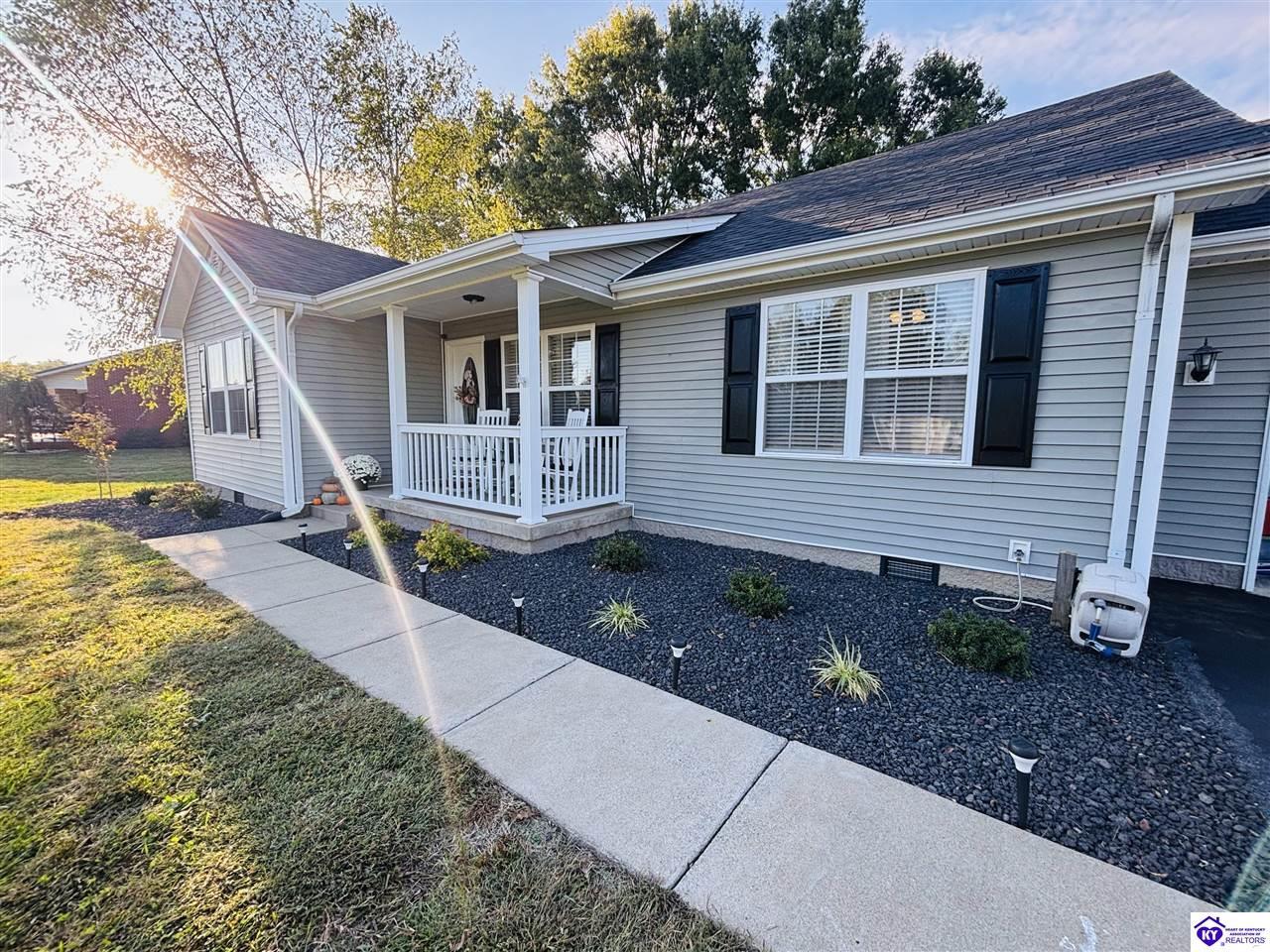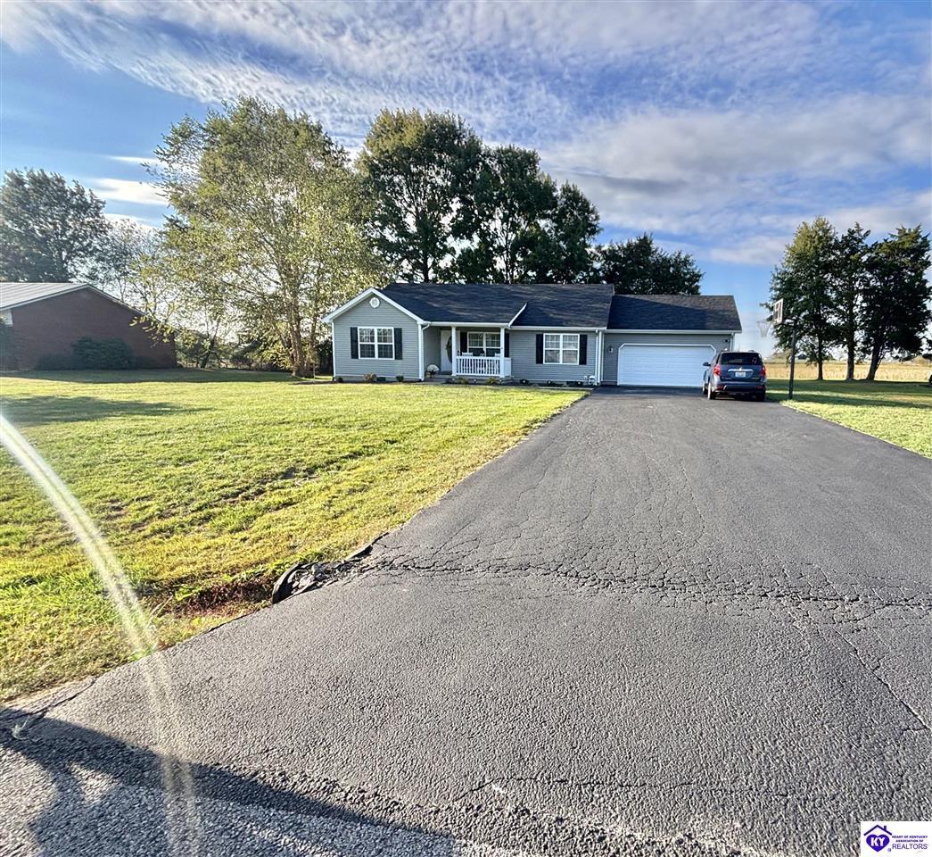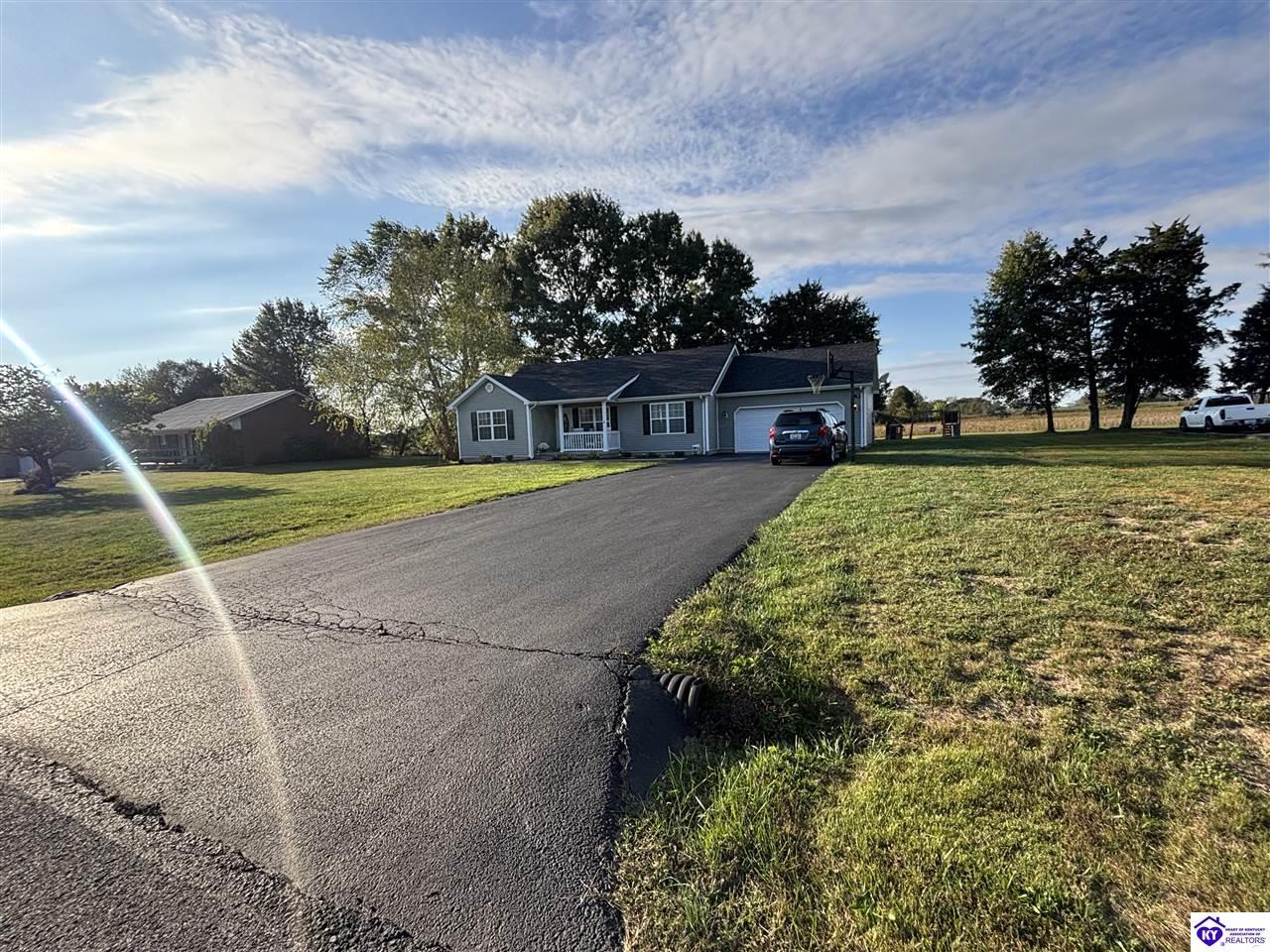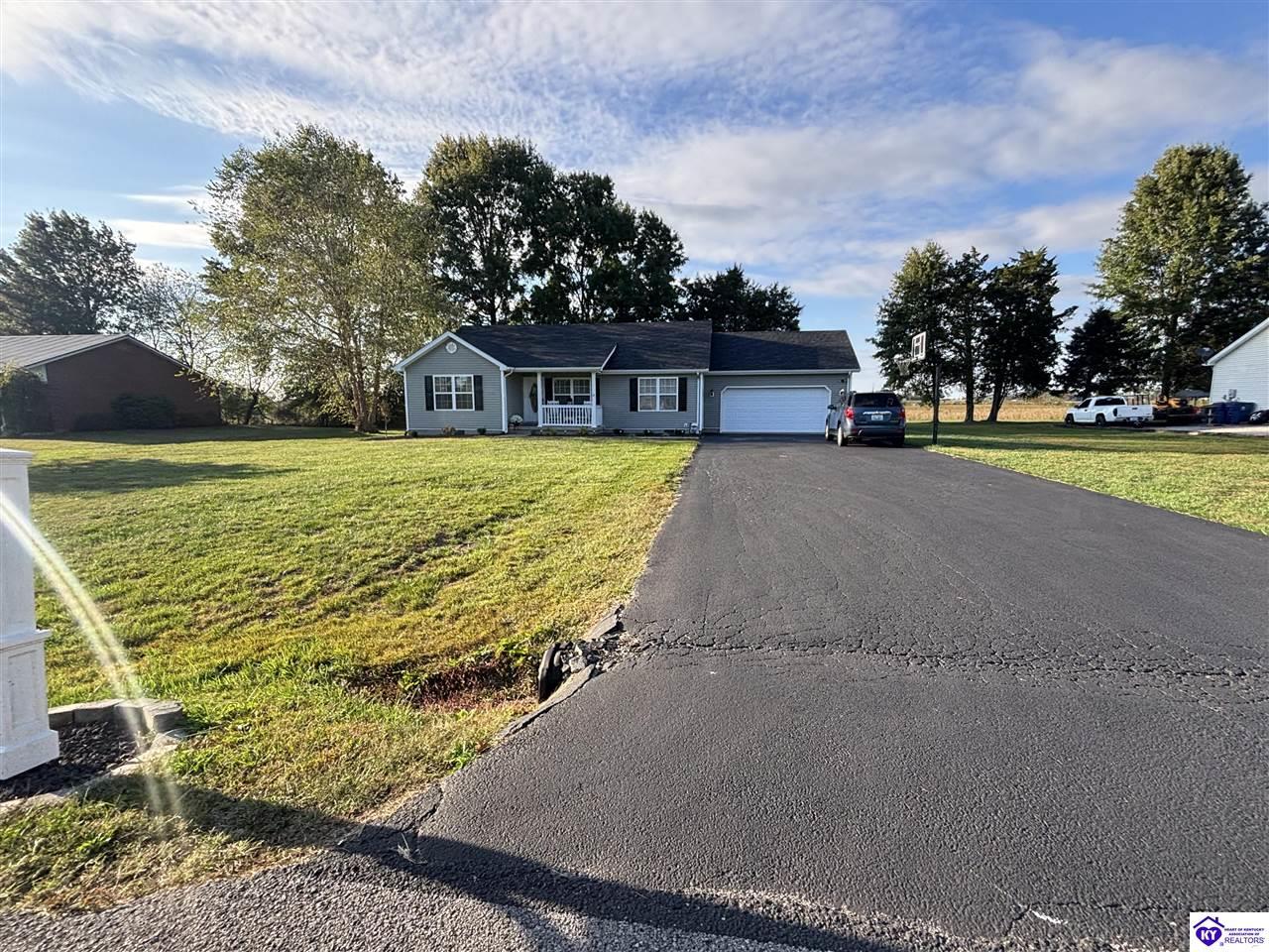 Realtor's notes: ADORABLE HOME! This stunning residence has just been listed on the market. The property boasts numerous desirable features, including a charming covered front porch. Upon entering the home, you'll appreciate the sought-after split floor plan. The main living area showcases beautiful hardwood floors and vaulted ceilings. The exquisite crown molding in the home adds a touch of luxury. The primary suite offers a walk-in closet, tray ceilings, and beautiful crown molding, while the primary bathroom is equally impressive. The expansive kitchen is a focal point, featuring stylish flooring, newer stainless steel appliances, and an osmosis system. The picturesque view from the kitchen window is an added bonus. Two additional bedrooms are conveniently located on the opposite side of the home, split with a full-size bathroom. The rear of the property boasts a newer deck, perfect for relaxation, entertainment, and enjoying the breathtaking sunsets. The yard is generously sized, and the shed remains with the property. Enjoy relaxing moments by the fire pit that STAYS! A two-car garage with an overhead door provides ample parking and storage space. Currently utilized as an exercise room and workshop, the garage offers endless possibilities. Additional features include a Blink security system and two security key locks. SO MUCH TO LOVE! Located in the Heart of Kentucky, this residence is mere miles from Green River Lake and offers convenient access to shopping, restaurants, boutiques, a hospital, and the Campbellsville Country Club. Data believed to be correct but not guaranteed. Buyer to verify data prior to offer.