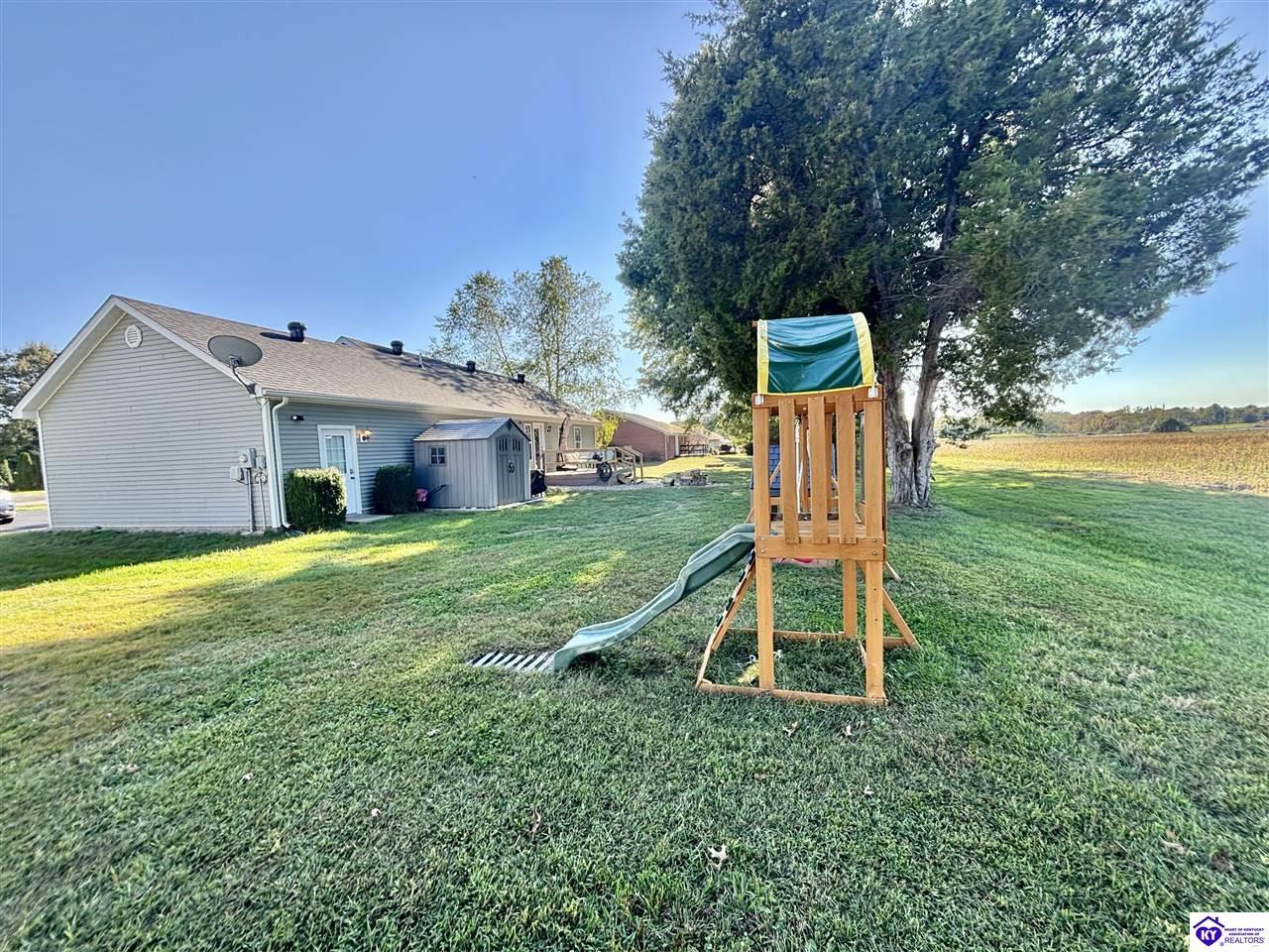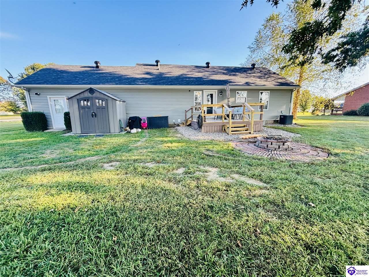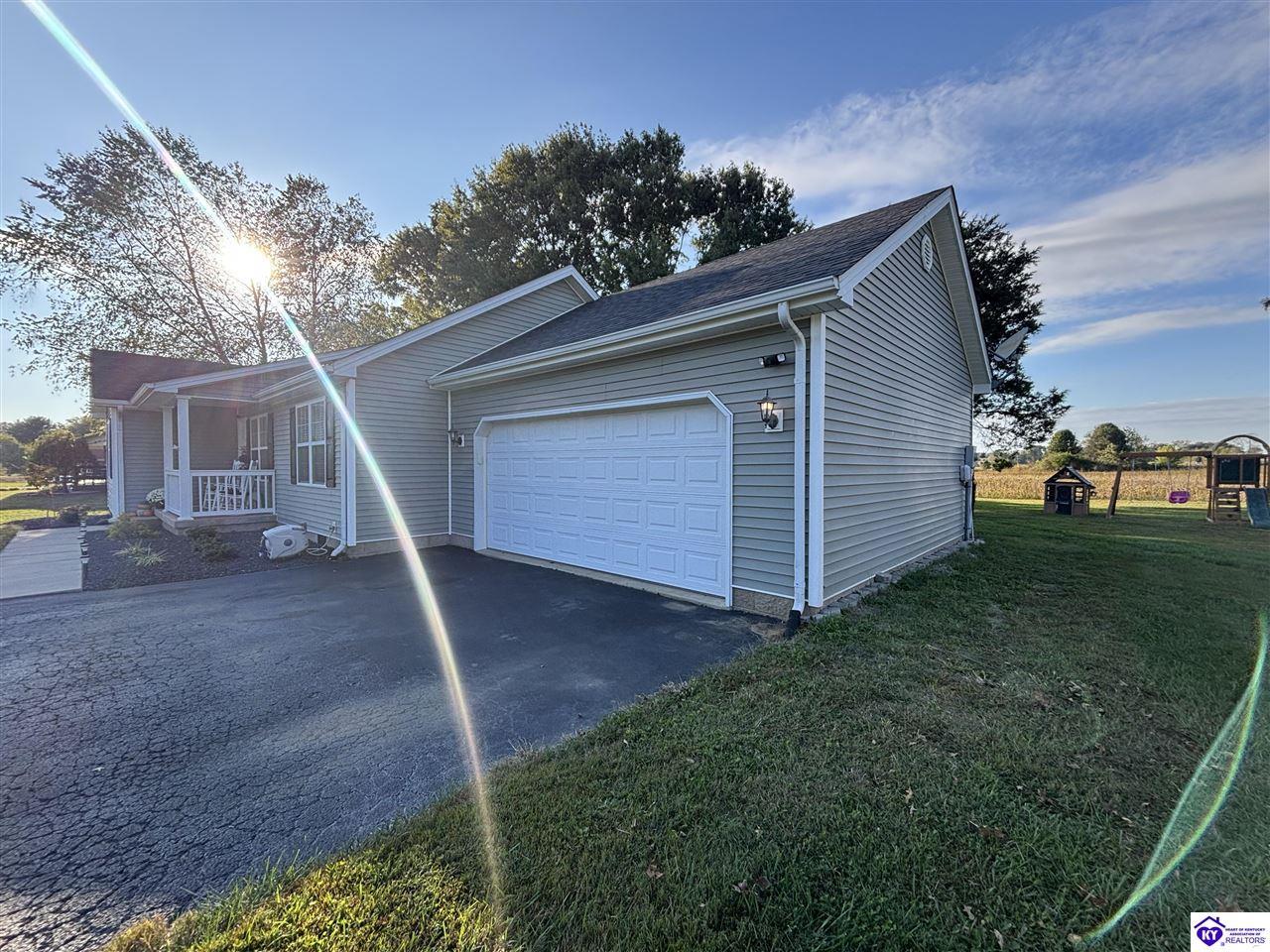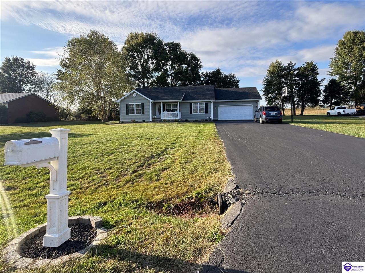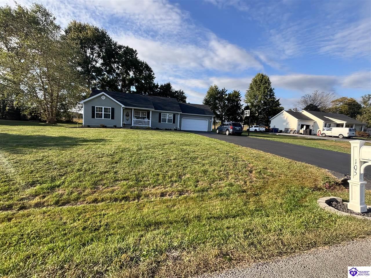 Realtor's notes: ADORABLE HOME! This stunning residence has just been listed on the market. The property boasts numerous desirable features, including a charming covered front porch. Upon entering the home, you'll appreciate the sought-after split floor plan. The main living area showcases beautiful hardwood floors and vaulted ceilings. The exquisite crown molding in the home adds a touch of luxury. The primary suite offers a walk-in closet, tray ceilings, and beautiful crown molding, while the primary bathroom is equally impressive. The expansive kitchen is a focal point, featuring stylish flooring, newer stainless steel appliances, and an osmosis system. The picturesque view from the kitchen window is an added bonus. Two additional bedrooms are conveniently located on the opposite side of the home, split with a full-size bathroom. The rear of the property boasts a newer deck, perfect for relaxation, entertainment, and enjoying the breathtaking sunsets. The yard is generously sized, and the shed remains with the property. Enjoy relaxing moments by the fire pit that STAYS! A two-car garage with an overhead door provides ample parking and storage space. Currently utilized as an exercise room and workshop, the garage offers endless possibilities. Additional features include a Blink security system and two security key locks. SO MUCH TO LOVE! Located in the Heart of Kentucky, this residence is mere miles from Green River Lake and offers convenient access to shopping, restaurants, boutiques, a hospital, and the Campbellsville Country Club. Data believed to be correct but not guaranteed. Buyer to verify data prior to offer.