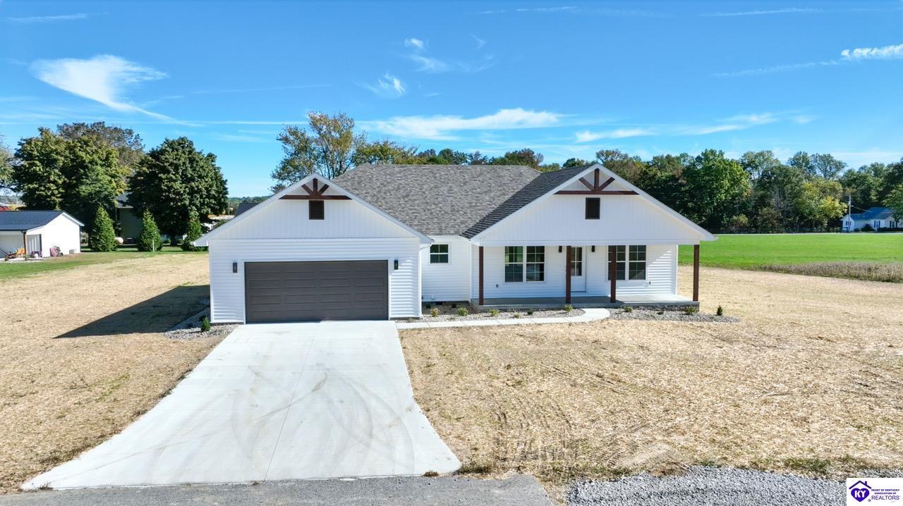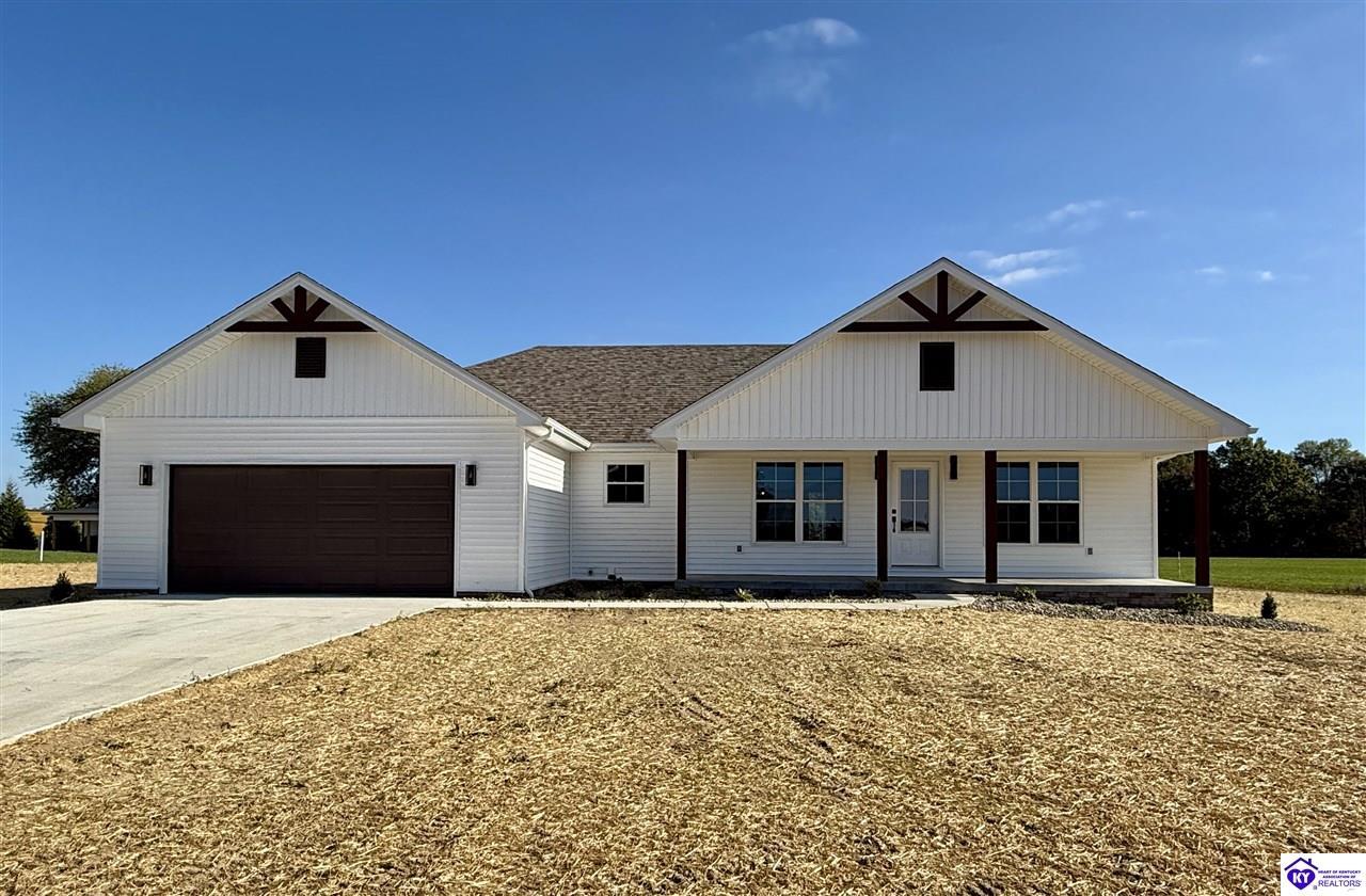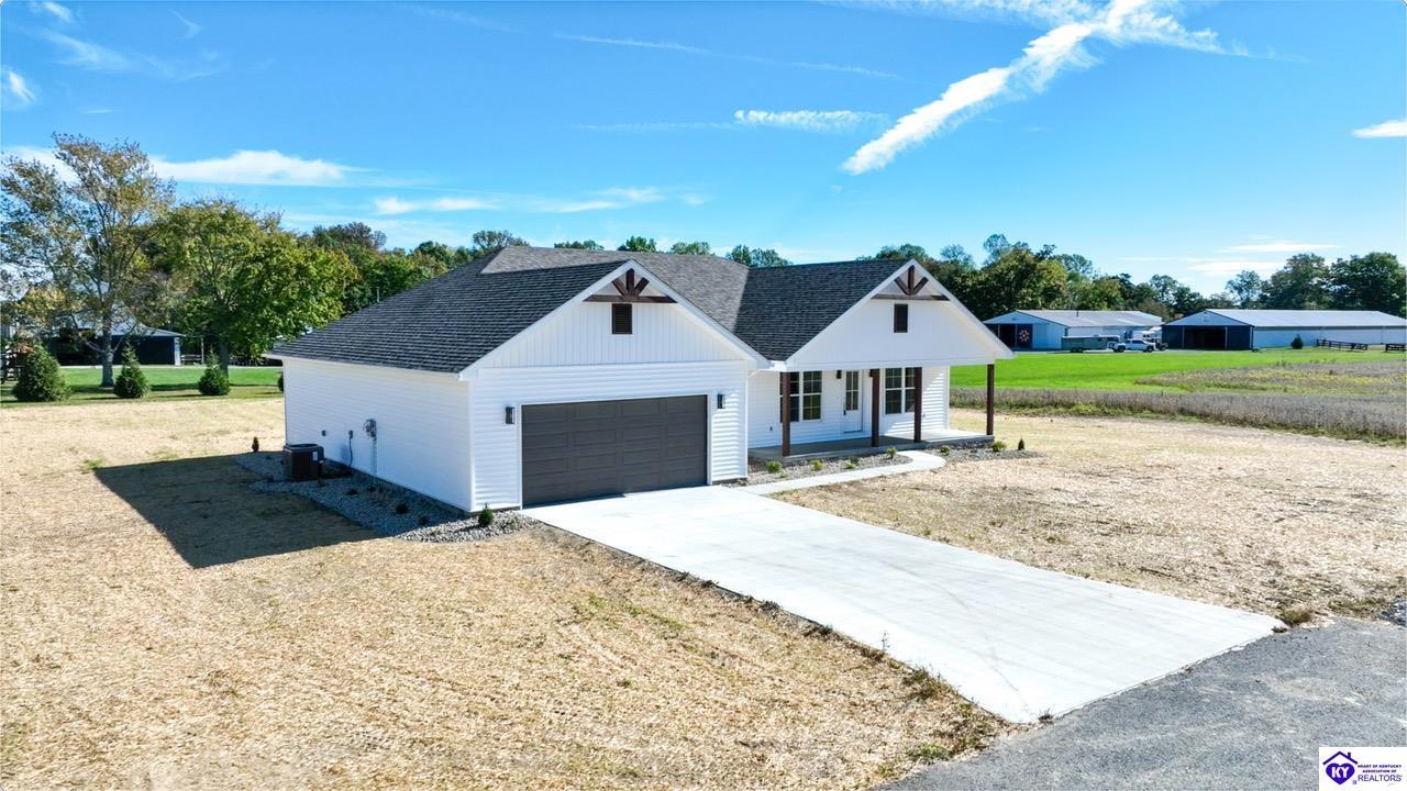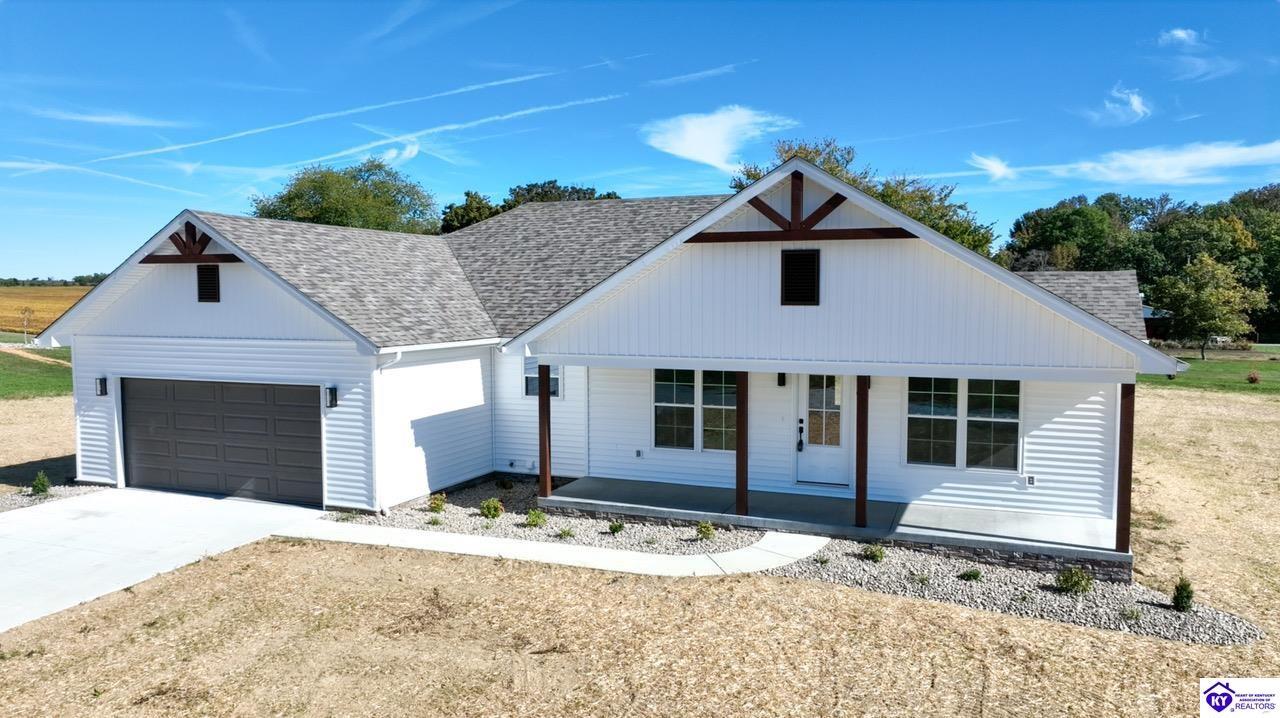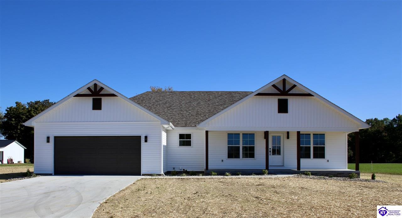 Realtor's notes: BRAND NEW CONSTRUCTION * MOVE-IN READY * Beautiful Country Setting! Welcome to your dream home - a stunning new build designed with modern living in mind. This thoughtfully crafted residence features unique timber framing on the exterior, while the interior displays an open concept living space perfect for entertaining, a split bedroom floor plan, large laundry room, and an additional utility/storage/bonus room off the garage. The cozy covered porch will beckon you at sunset, while the back patio offers a peaceful retreat for morning coffee. When you step inside this 3 bed / 2 bath home, you'll love the fresh & clean color scheme with the alabaster walls, white wood trim, neutral luxury vinyl plank flooring, and black & gold finishes throughout. The gorgeous kitchen will quickly become your favorite room in the house with it's creamy custom cabinetry steeped in marbled quartz, highlighted by a black farmhouse sink & pull-down faucet, stainless appliances, contrasting black island, and recessed lighting. The primary suite boasts an en-suite bath featuring dual vanities with quartz countertops, custom tiled walk-in shower, and a generously sized walk-in closet. This rural property rests along the backdrop of farms, yet conveniently just minutes away from shopping, schools, restaurants, parks, coffee shops and more. This home was built for you! Contact me to schedule a showing. Data believed correct, but not yet verified. Buyer to verify prior to offer.