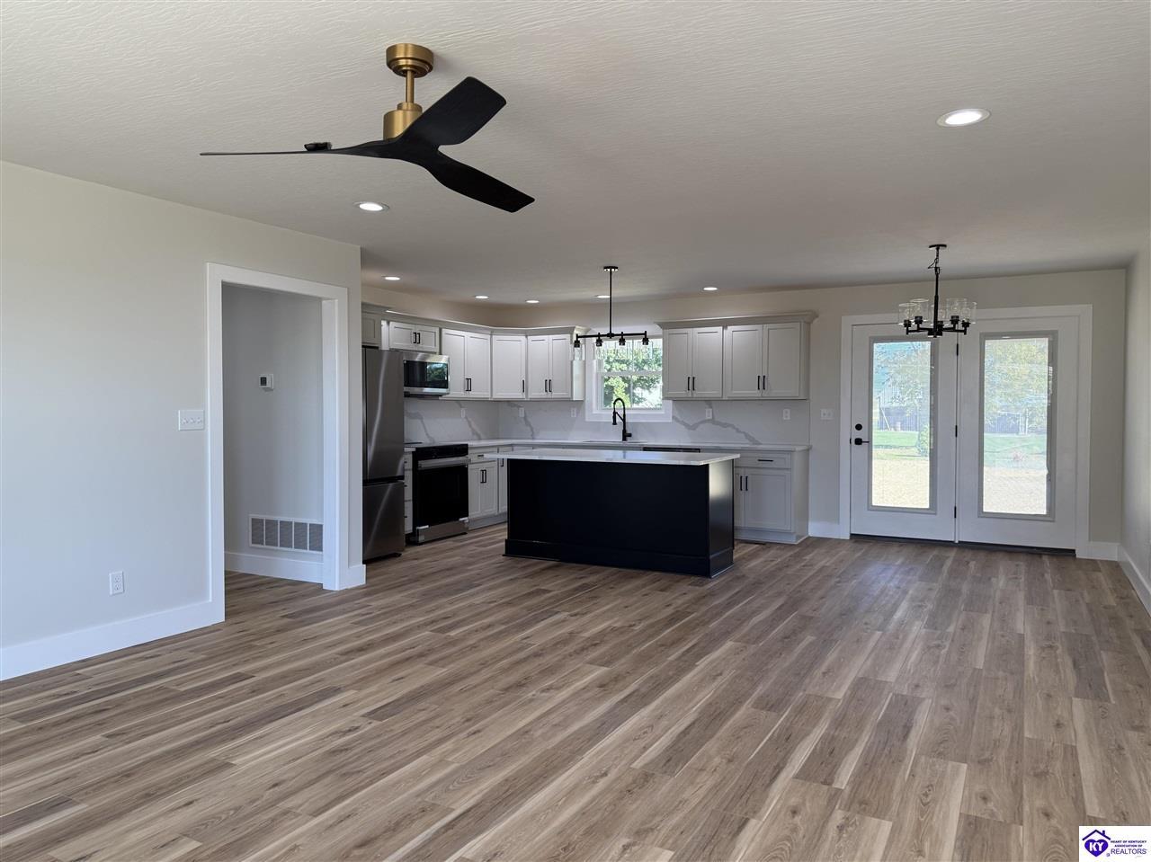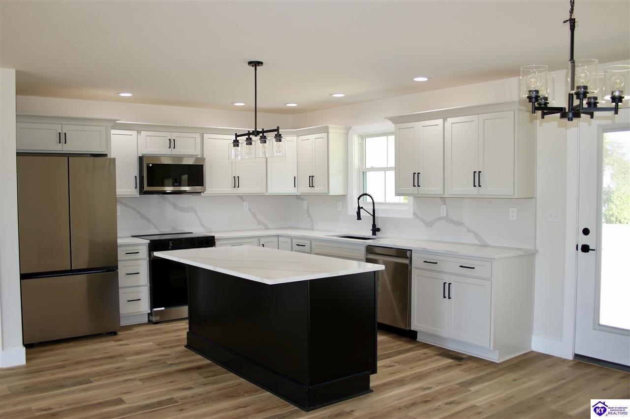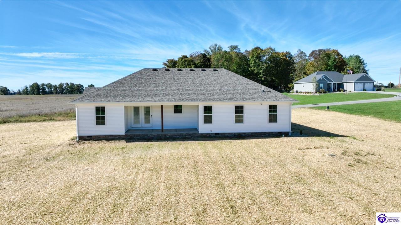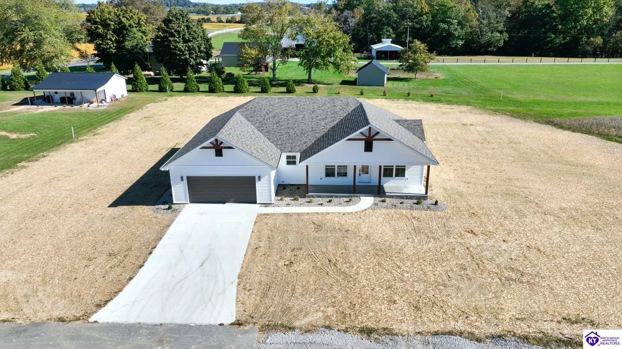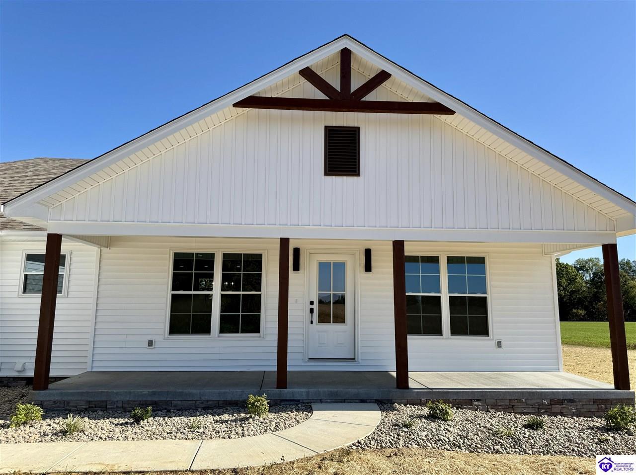 Realtor's notes: BRAND NEW CONSTRUCTION * MOVE-IN READY * Beautiful Country Setting! Welcome to your dream home - a stunning new build designed with modern living in mind. This thoughtfully crafted residence features unique timber framing on the exterior, while the interior displays an open concept living space perfect for entertaining, a split bedroom floor plan, large laundry room, and an additional utility/storage/bonus room off the garage. The cozy covered porch will beckon you at sunset, while the back patio offers a peaceful retreat for morning coffee. When you step inside this 3 bed / 2 bath home, you'll love the fresh & clean color scheme with the alabaster walls, white wood trim, neutral luxury vinyl plank flooring, and black & gold finishes throughout. The gorgeous kitchen will quickly become your favorite room in the house with it's creamy custom cabinetry steeped in marbled quartz, highlighted by a black farmhouse sink & pull-down faucet, stainless appliances, contrasting black island, and recessed lighting. The primary suite boasts an en-suite bath featuring dual vanities with quartz countertops, custom tiled walk-in shower, and a generously sized walk-in closet. This rural property rests along the backdrop of farms, yet conveniently just minutes away from shopping, schools, restaurants, parks, coffee shops and more. This home was built for you! Contact me to schedule a showing. Data believed correct, but not yet verified. Buyer to verify prior to offer.