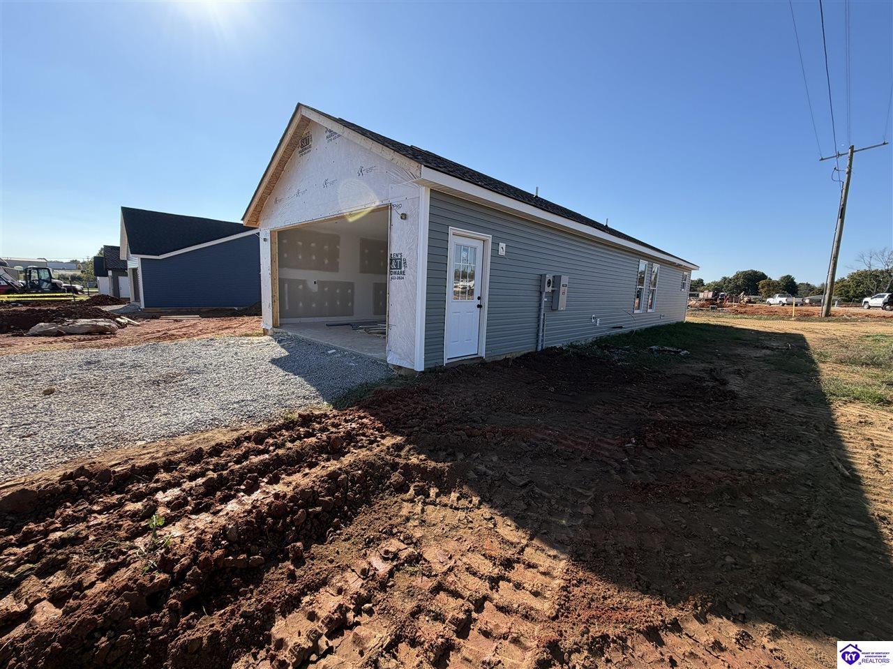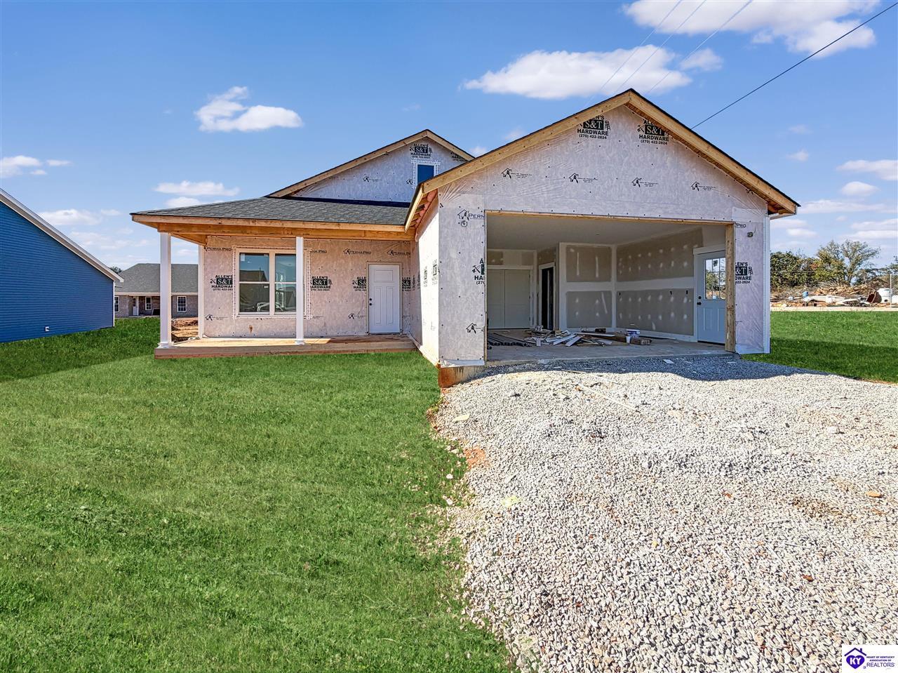 Realtor's notes: Welcome to 10 Betty Boyd Lane, a beautifully designed brand-new home in the heart of Brandenburg’s Miller Woods community. This 3-bedroom, 2-bathroom home sits proudly on a spacious corner lot and offers the perfect combination of modern comfort and practical living. Step inside to a large, open living and dining area that creates an inviting atmosphere for entertaining or everyday life. The open floor plan is thoughtfully laid out to maximize natural light and livability. Both bathrooms feature beautifully tiled showers, adding a touch of luxury to your daily routine. Peace of mind comes standard with a built-in concrete storm shelter—an essential feature for safety during severe weather. Outside, you’ll love the curb appeal of the poured concrete driveway and lush sod yard, along with the comfort of covered front and back porches that are ideal for sipping coffee at sunrise or gathering around a backyard bonfire. Located near the Meade County Public Library with walking trails, the local extension office, farmers market, schools, shopping, and restaurants, this home offers unbeatable access to community amenities while still giving you room to breathe. Don’t miss your chance to own a quality new build in one of Brandenburg’s newest neighborhoods. This home truly has it all—style, function, and location.