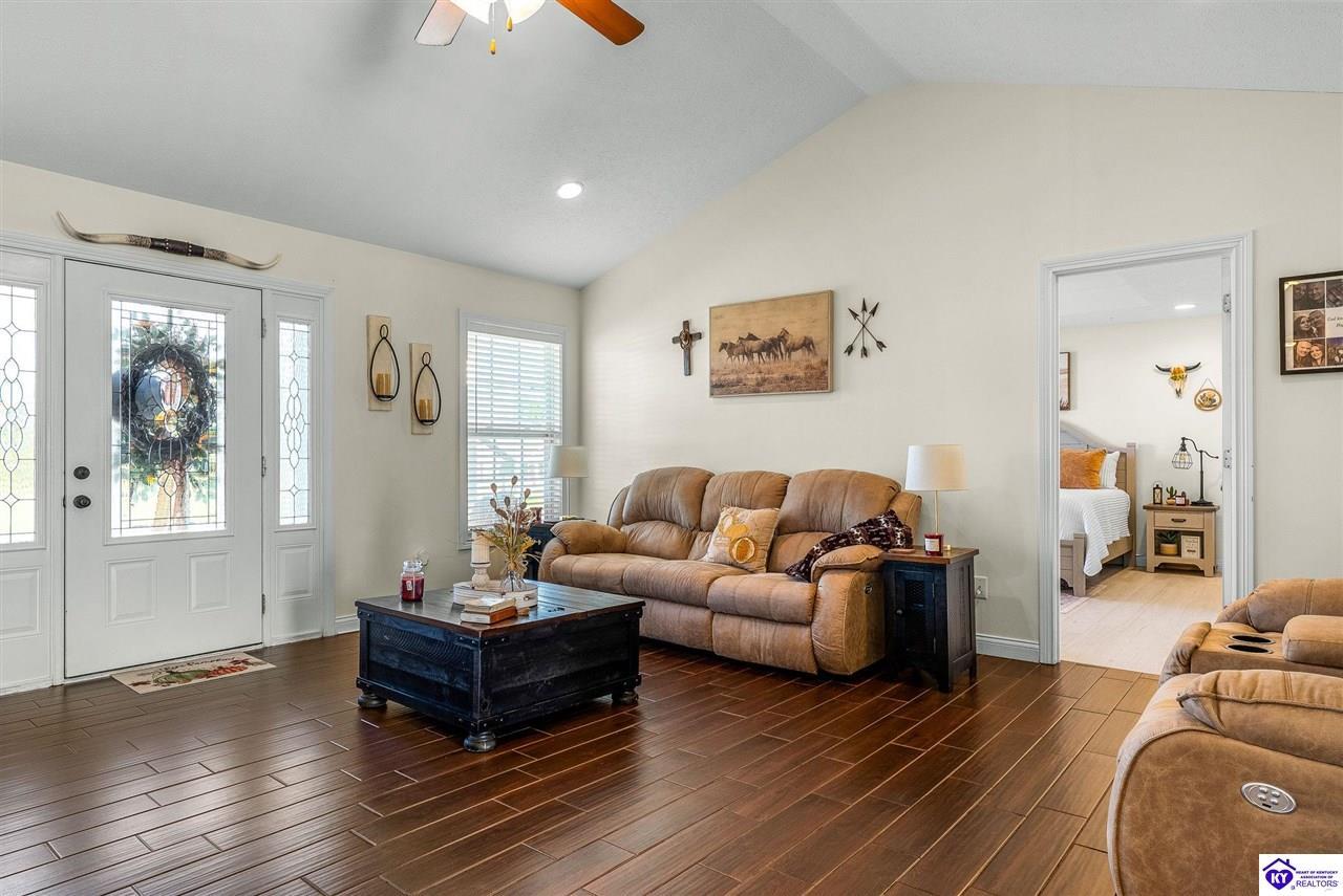 Directions: From Elizabethtown: Take US 62 towards Cecilia for approximately 6 miles, turn right on Zeus, make a right. Home is on the left.