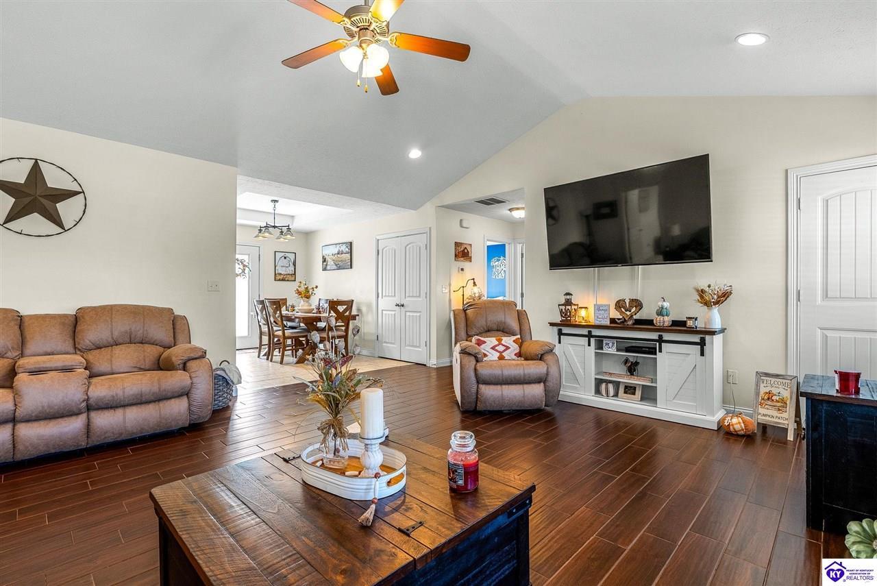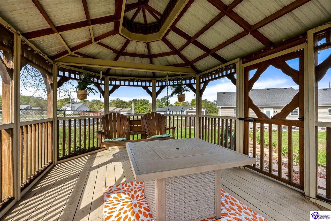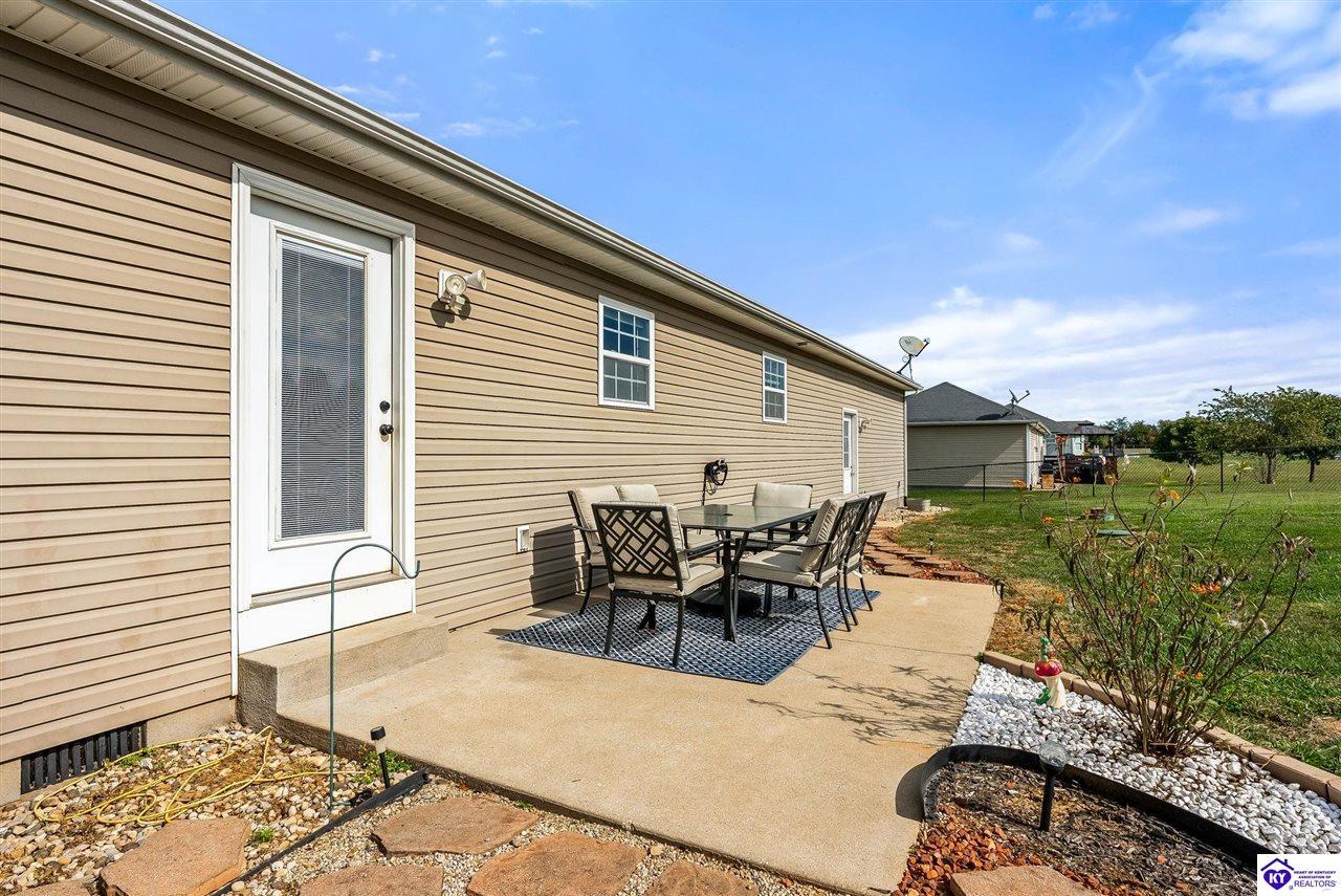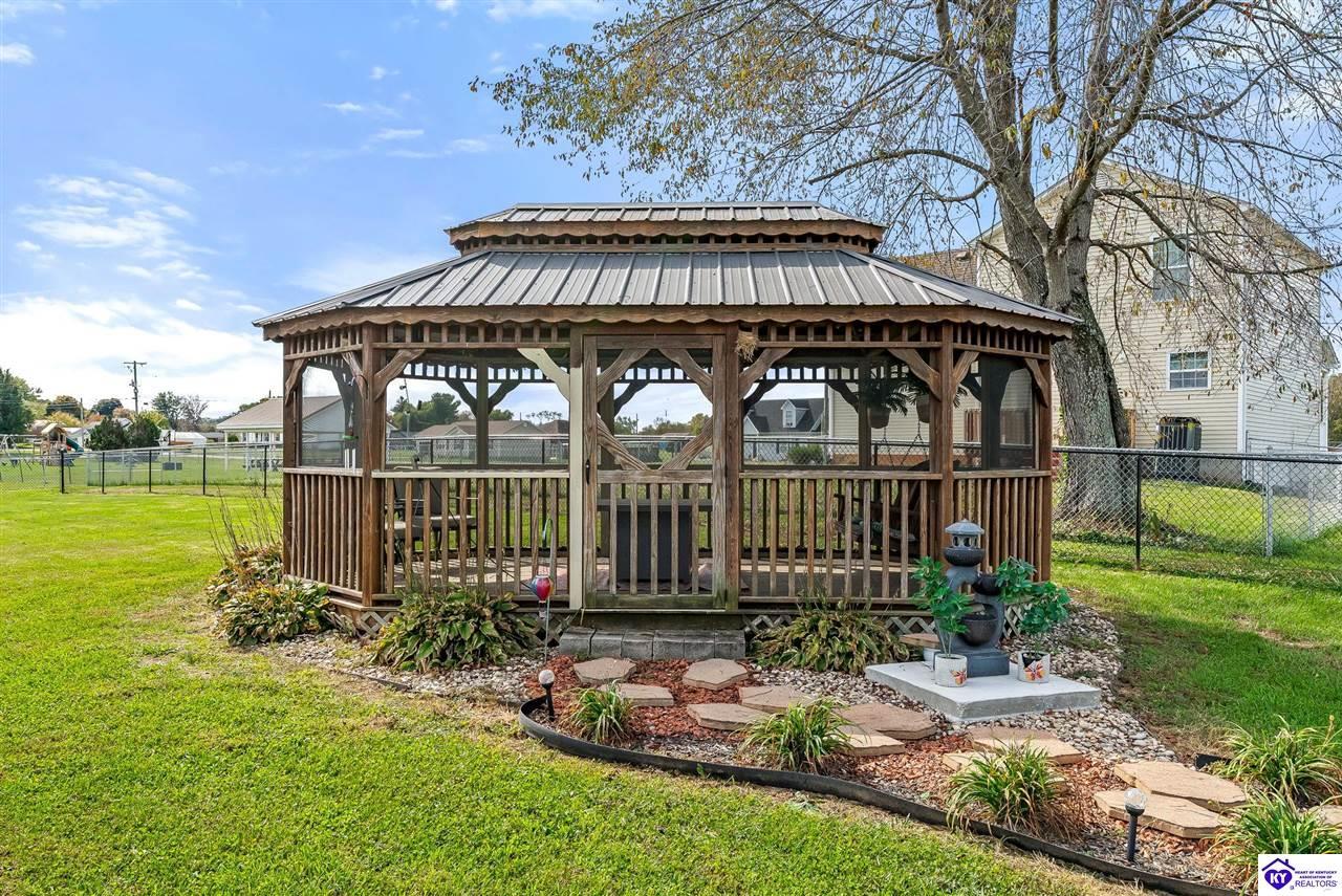 Realtor's notes: Beautifully cared for 3 bedroom, 2 bath ranch in Cecilia, Ky! This move-in ready home features an open floor plan with bright living spaces and stainless steel appliances. The spacious primary suite offers comfort and privacy, while the large lot provides plenty of room to relax or garden. Enjoy evenings in the screened gazebo, complete with a swing overlooking the backyard. Conveniently located near Elizabethtown, schools and shopping. This home perfectly blends country charm with modern comfort. Community amenities include a playground and pavilion for outdoor fun.