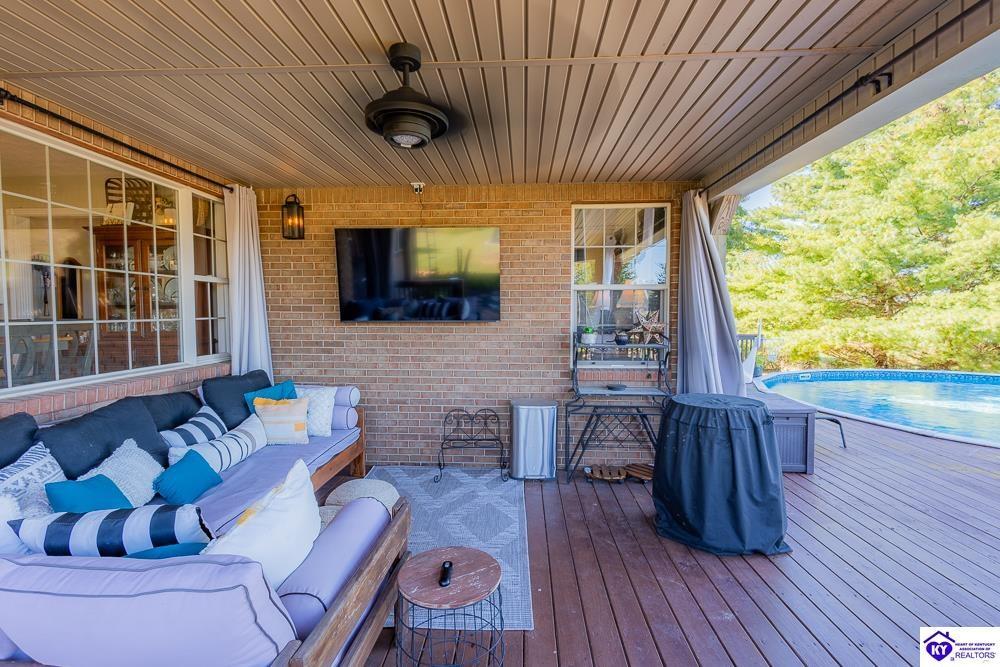 Exterior Covered Front Porch, Swimming Pool-Abv Ground, Covered Deck, Deck, Garden Area, Landscaping, Mature Trees, Storage Shed, Trees