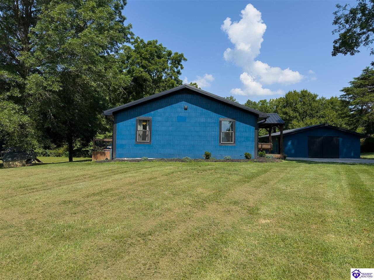 Realtor's notes: Discover this beautifully maintained and remodeled 2-bedroom, 1-bath open concept home nestled on nearly 3 acres in peaceful Leitchfield, KY. This charming property offers a perfect blend of modern comforts and serene country living. Enjoy the spacious 2 car garage along with the 2-bay pole barn, perfect for all your storage and hobby needs. The serene covered front porch and back deck provide great spaces for entertaining and maximum relaxation, while a picturesque creek meanders along the back of this stunning 3 acres, adding yet another splash of natural beauty. Conveniently located on a quiet road, you'll relish the tranquility without sacrificing proximity to local amenities and activities. This gem of a property is the perfect retreat with room to grow and explore.