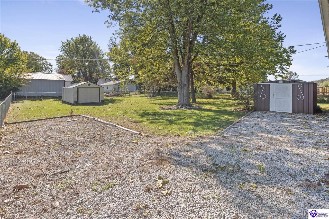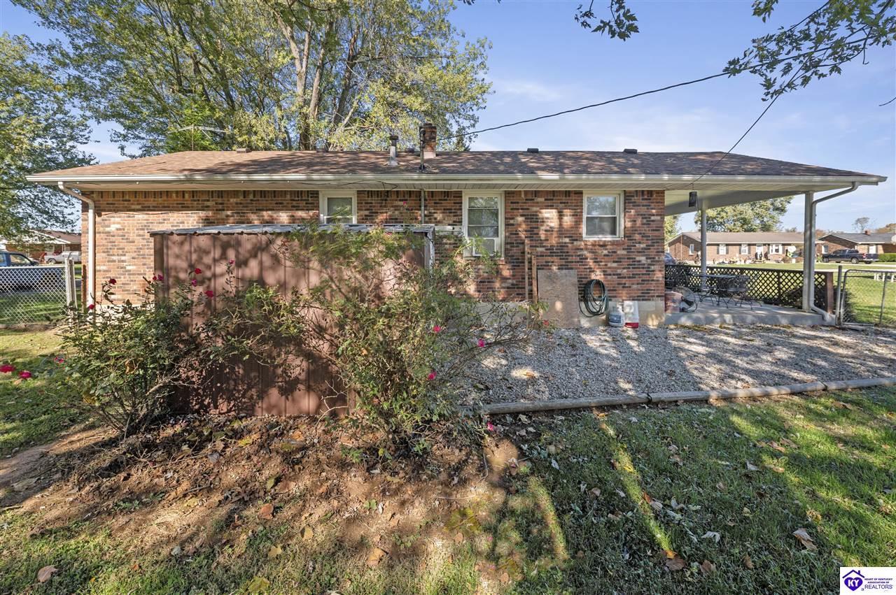 Realtor's notes: Welcome home to this charming 3-bedroom ranch ideally located near Louisville, Fort Knox, and Elizabethtown. Surrounded by mature trees, this well-maintained property features an updated roof, heating system, windows and water heater for peace of mind. Enjoy inviting outdoor spaces including a covered front porch and a versatile carport that can double as a covered patio. The deep, fenced backyard offers plenty of room to relax or play and includes two storage buildings for all your extras. Additional parking spaces add convenience to this move-in-ready home.