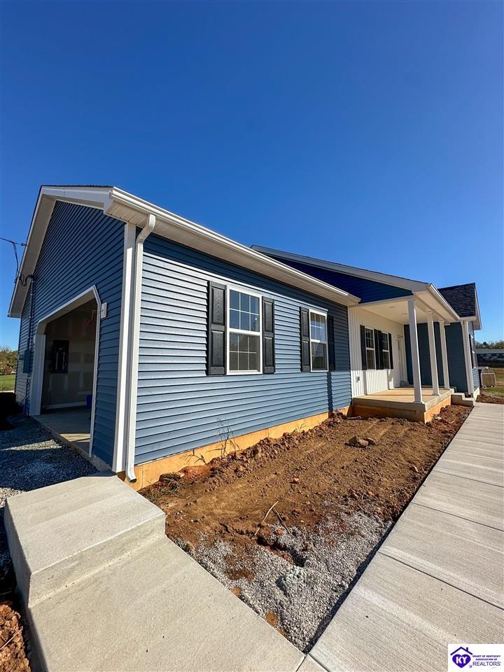 Realtor's notes: Welcome to 171 Gordon Drive, Ekron, KY 40117 — a stunning new 3-bedroom, 2.5-bath ranch situated on a 1.83-acre lot. This thoughtfully designed home offers modern comfort, elegant finishes, and the perfect blend of functionality and style. Step inside to an open-concept layout featuring a spacious kitchen with Colonial White custom cabinetry, the pantry of your dreams, granite countertops, and stainless steel appliances. The primary suite is a relaxing retreat complete with a custom tile shower, separate soaking tub, and double vanity. All bedrooms feature generous closet space for convenient storage. Enjoy outdoor living with a covered front porch and a back deck overlooking the peaceful countryside. The home also includes concrete sidewalks, a two-car attached garage, and a full unfinished walkout basement with rough-in plumbing for a fourth bathroom, offering endless potential for future expansion. Listed at $359,900, this beautiful home will be move-in ready by mid-November 2025. Don’t miss your opportunity to own a brand-new home in a serene setting with convenient access to local amenities.